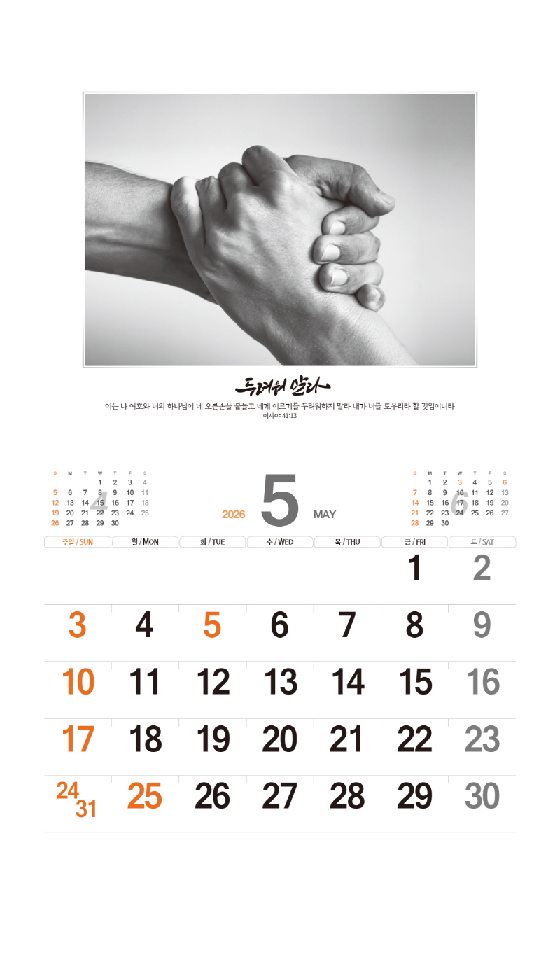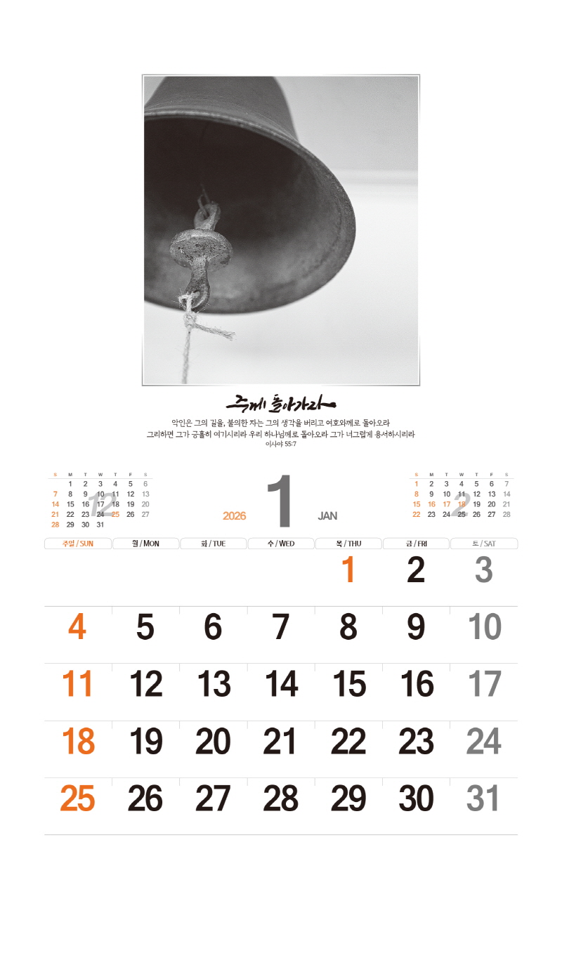 전년도 카렌다 하단부를 스마트폰 촬영하여 이미지를 첨부하여 주시고 기타요청사항에 수정사항을 기입하여 보내주시면
