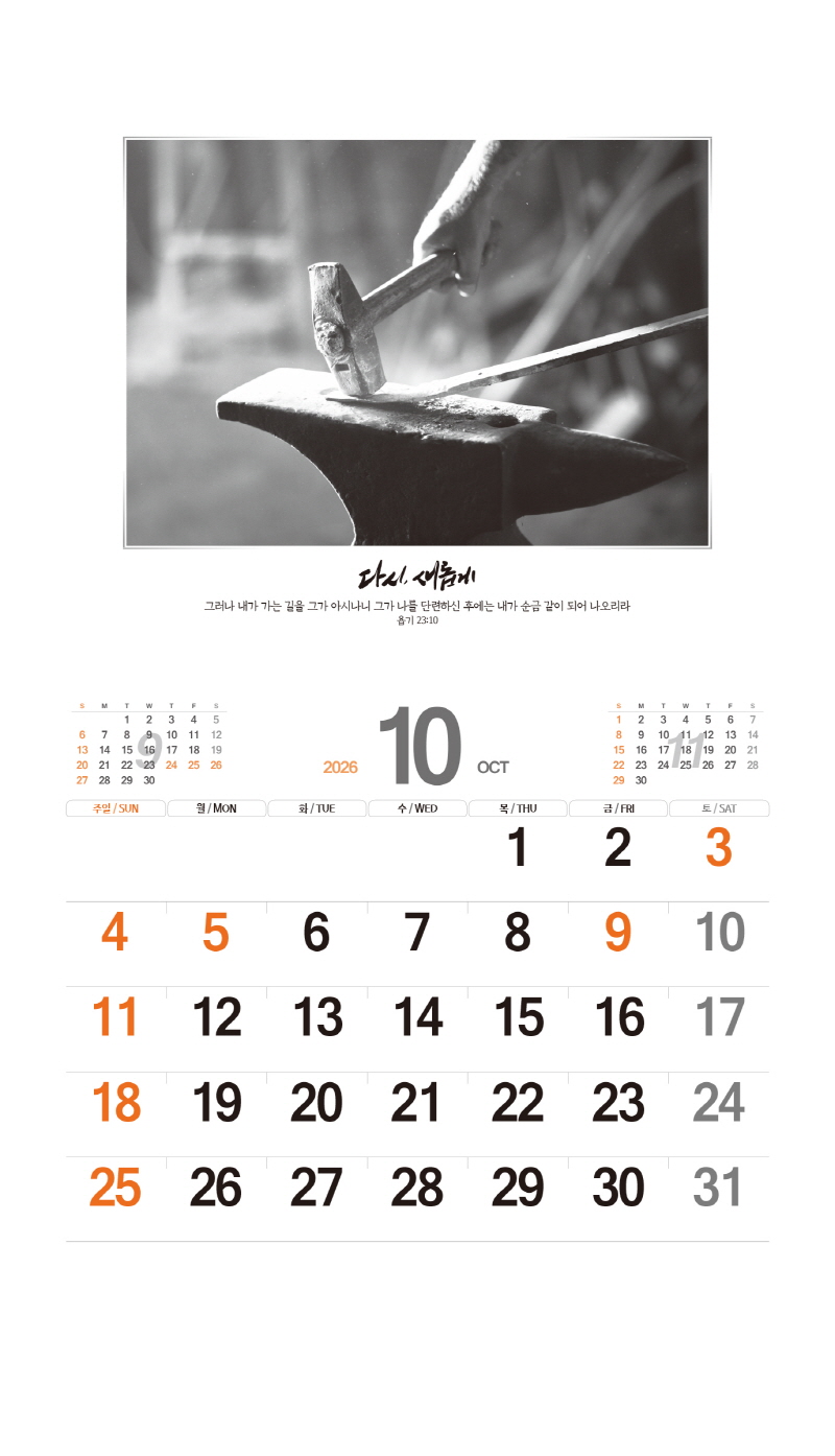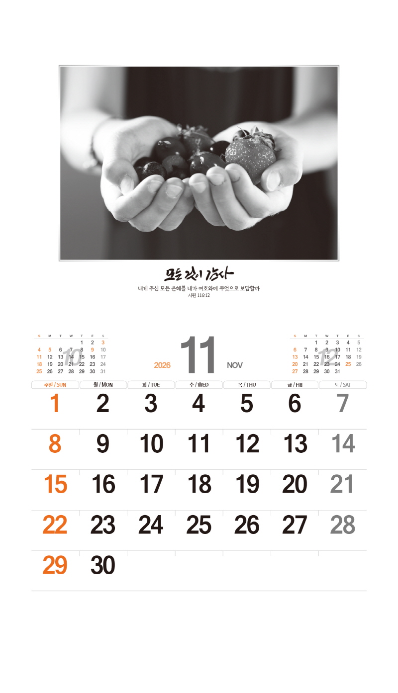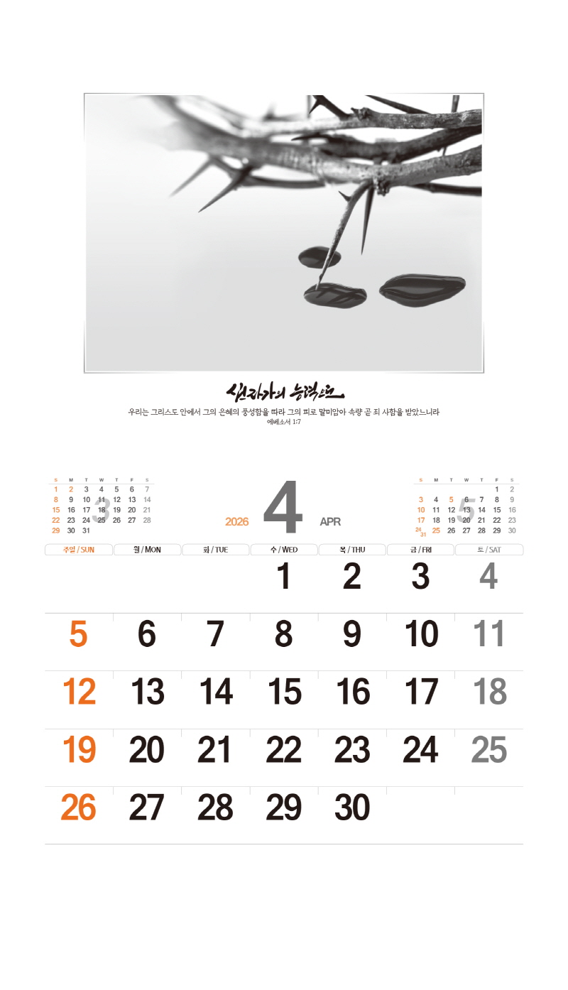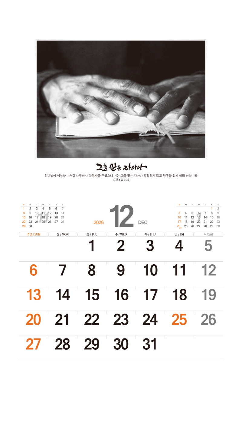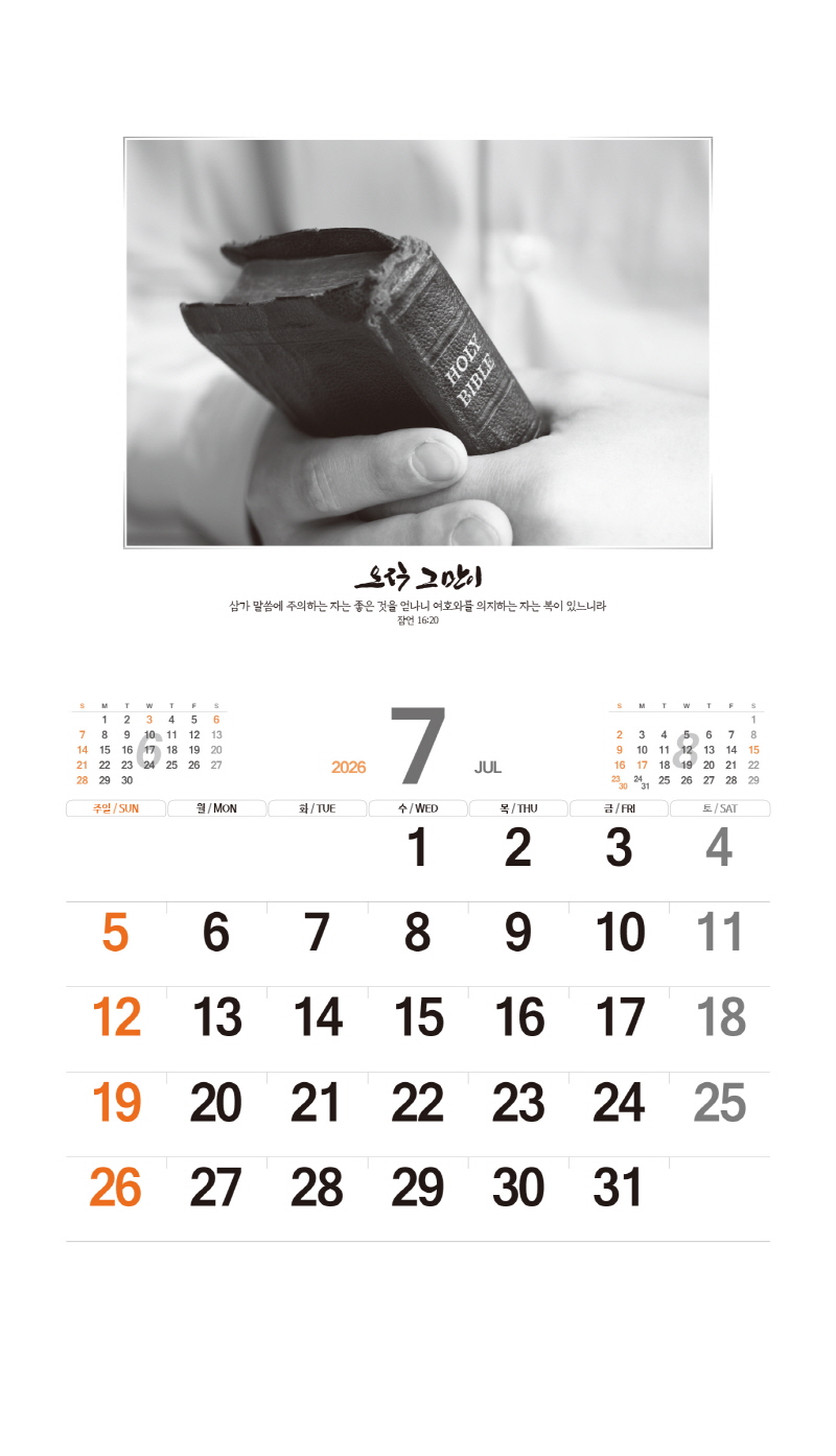 본 캘린더에는 음력, 절후, 교회력이 표기되어 있습니다.