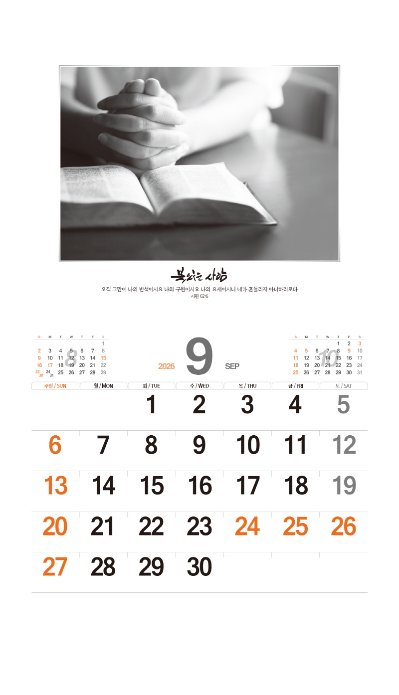 ◈본 캘린더에는 음력, 절후, 교회력이 표기되어 있습니다.