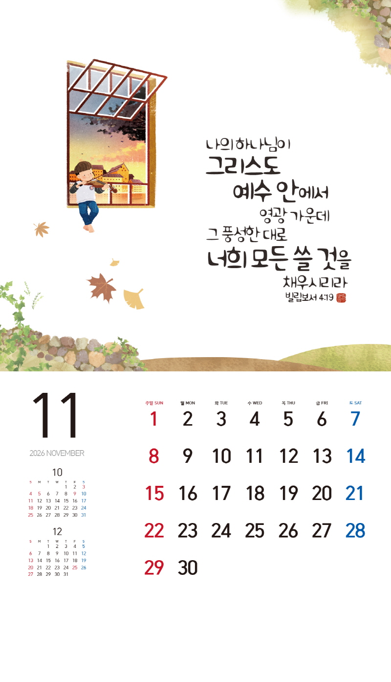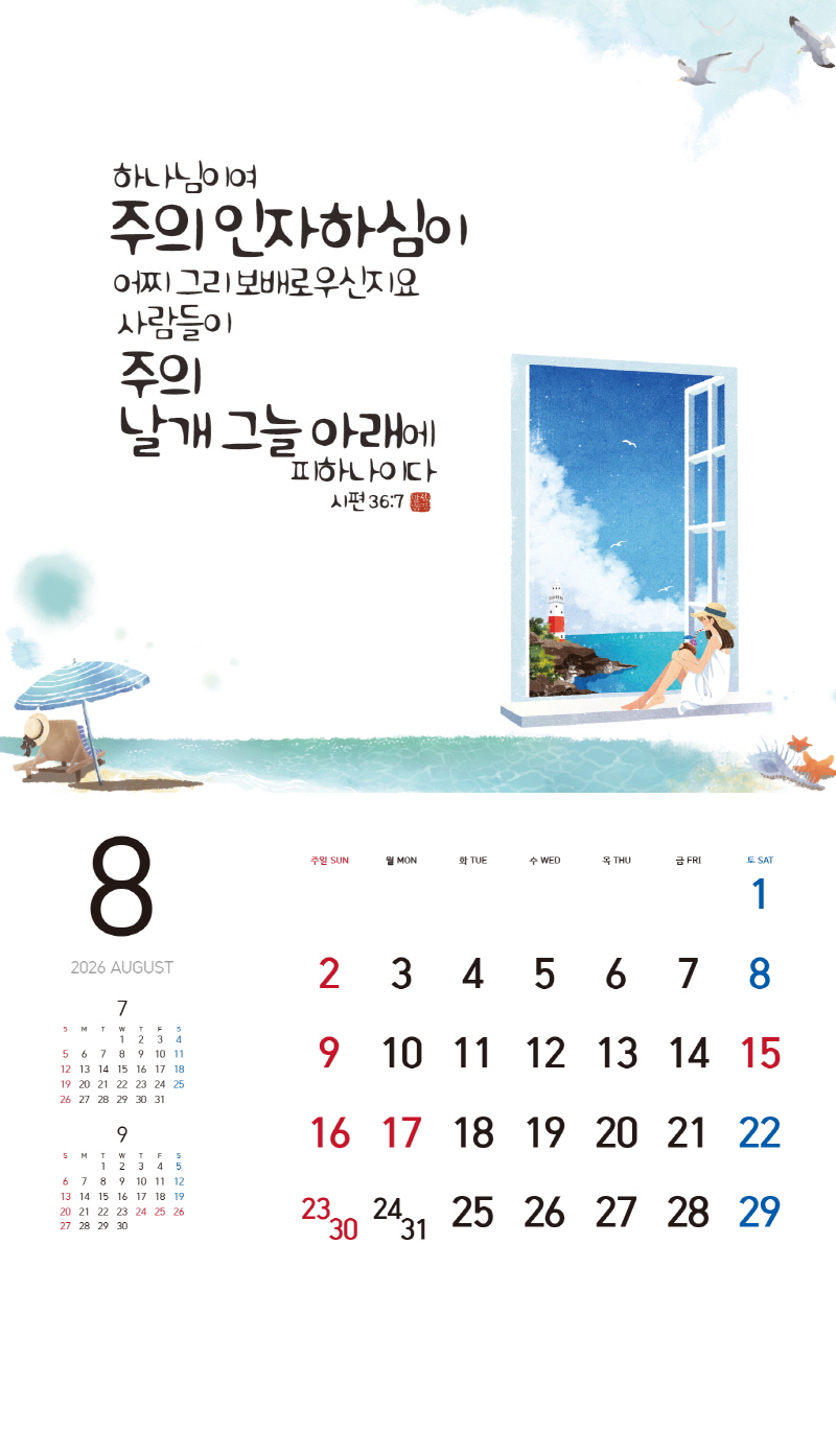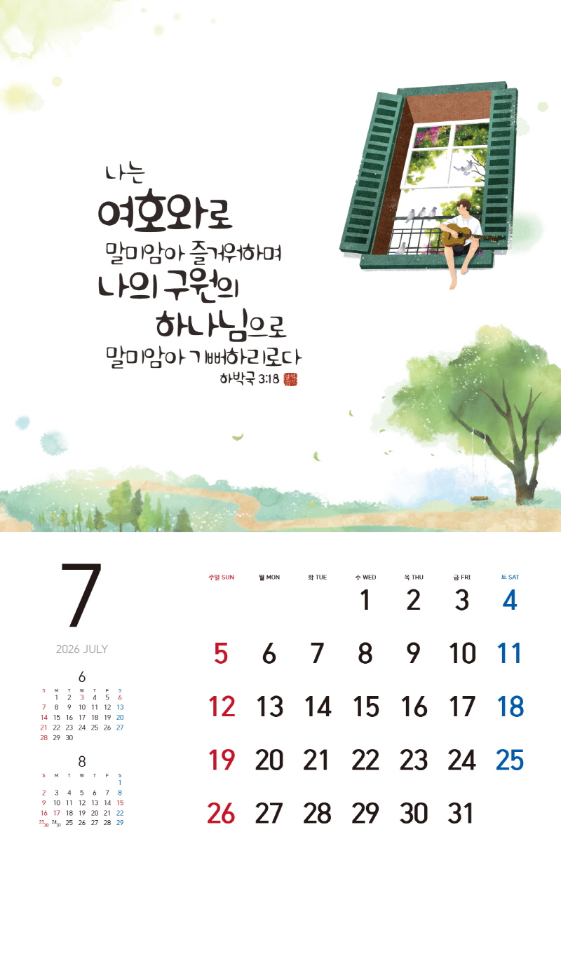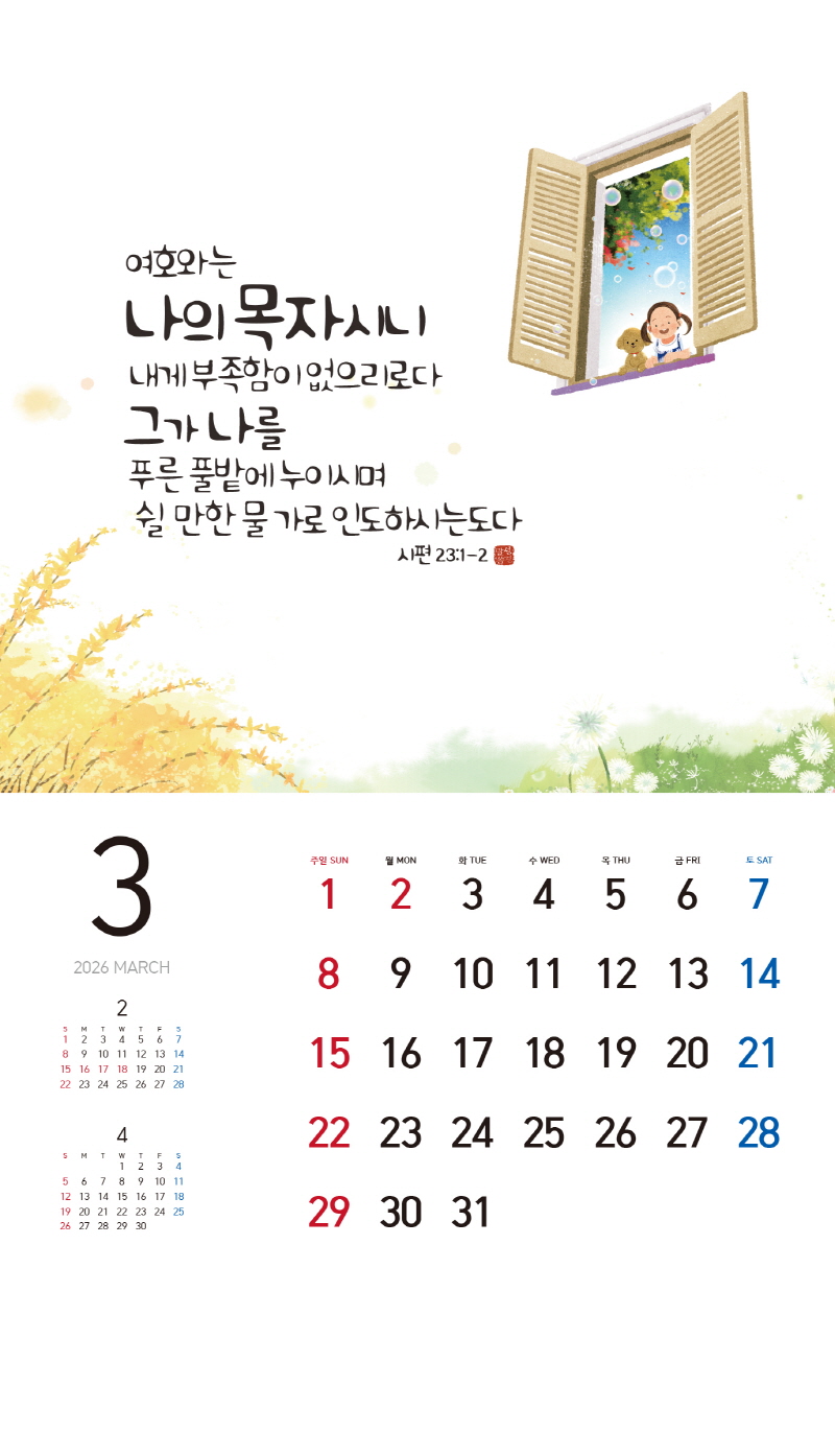 본 캘린더에는 음력, 절후, 교회력이 표기되어 있습니다.