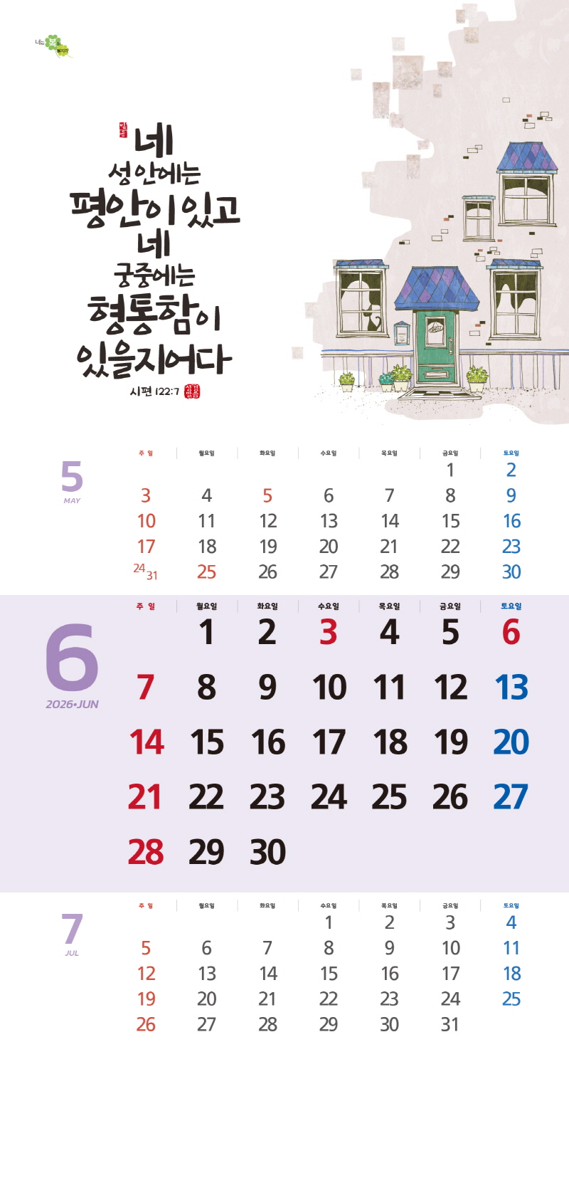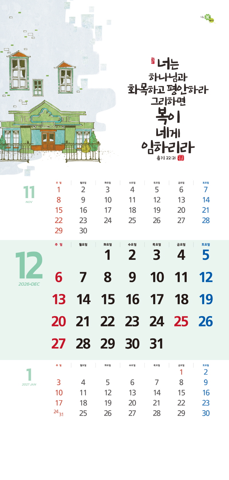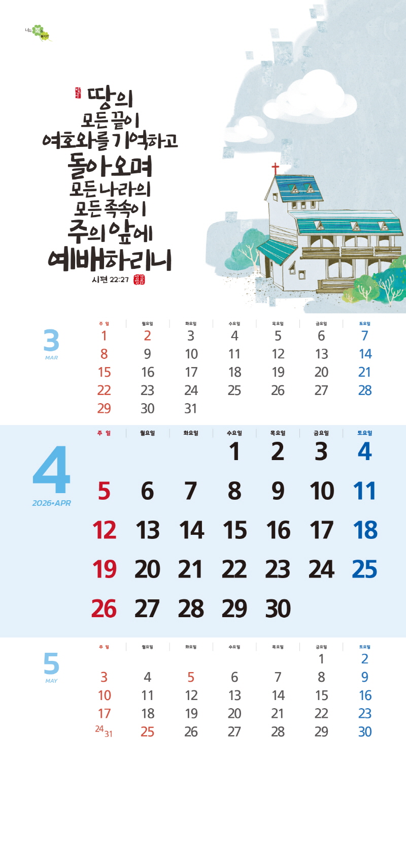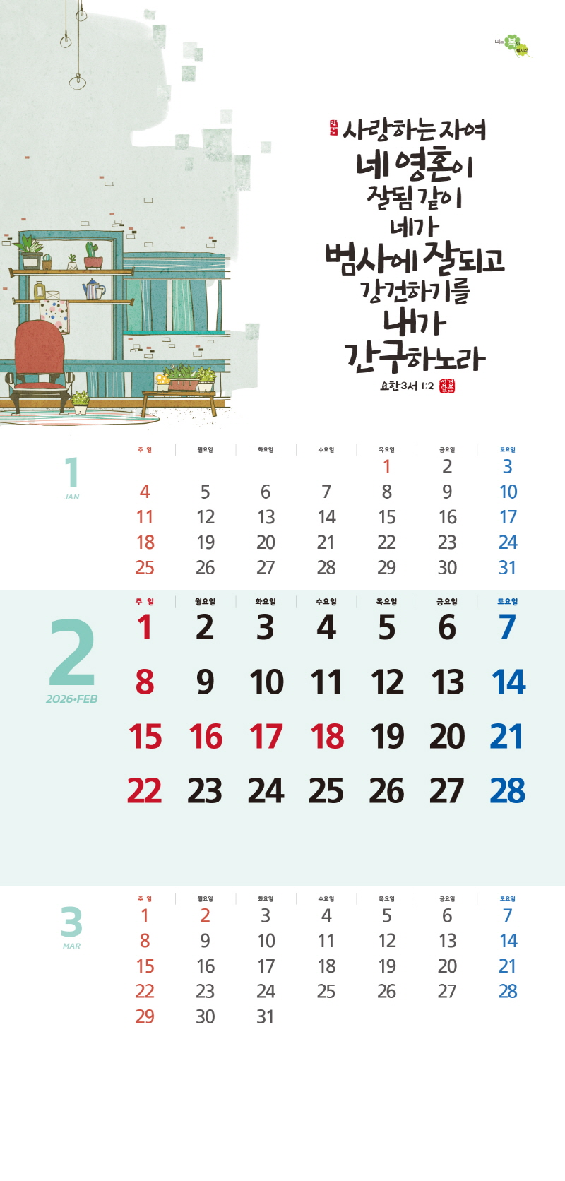 ◈본 캘린더에는 음력, 절후, 교회력이 표기되어 있습니다.