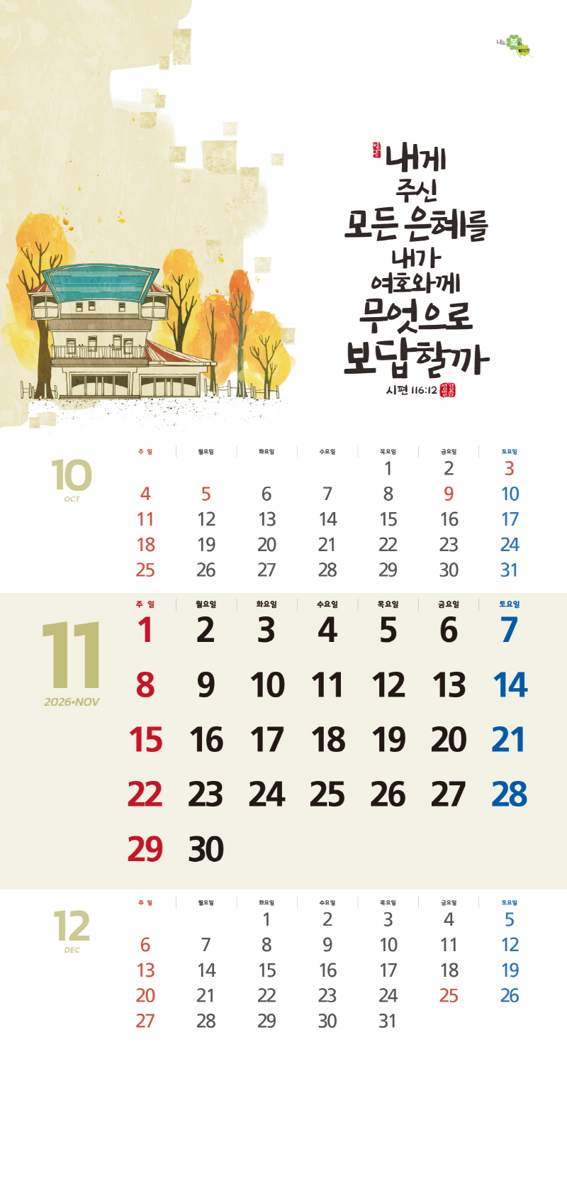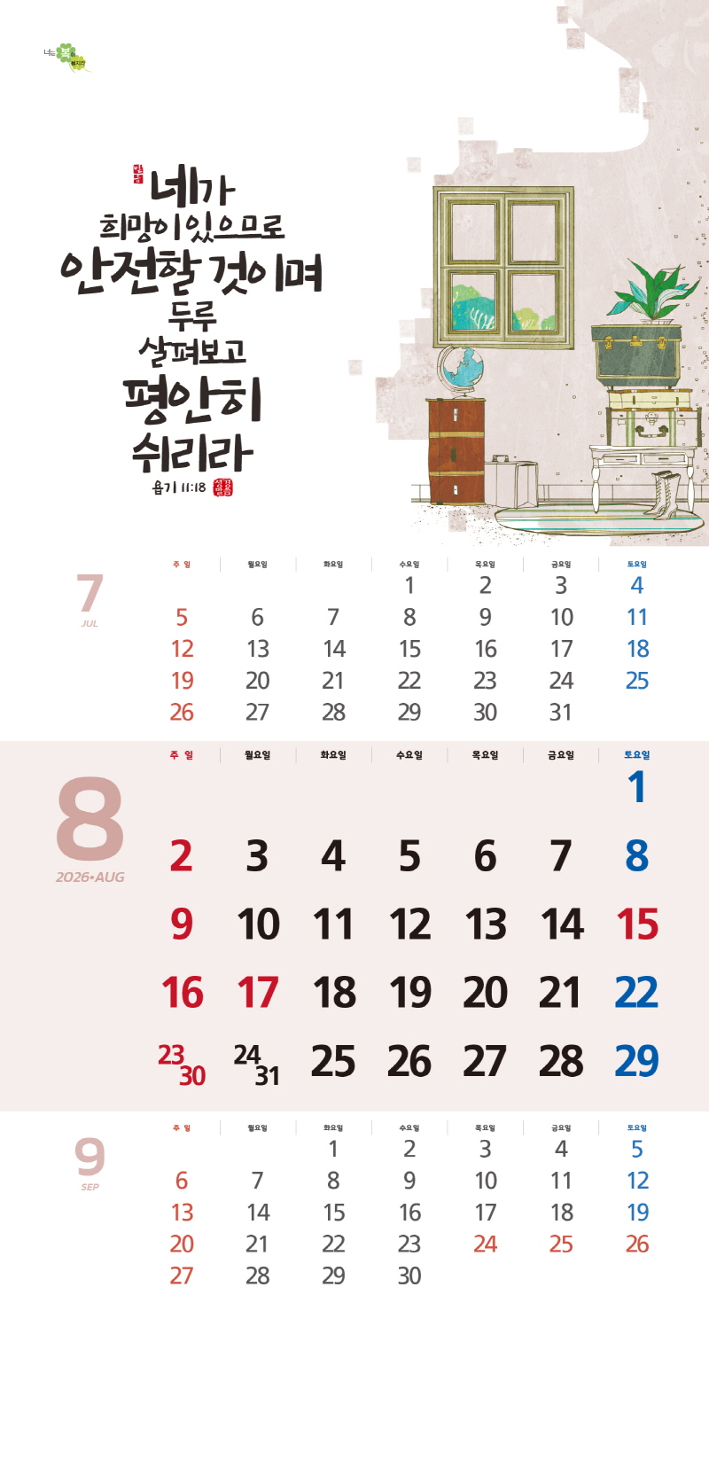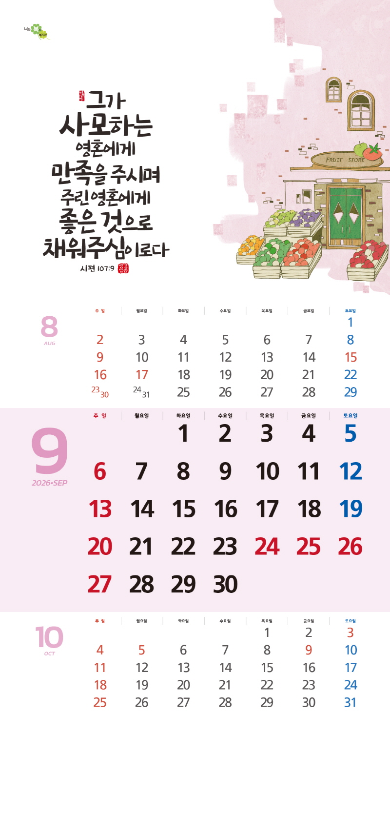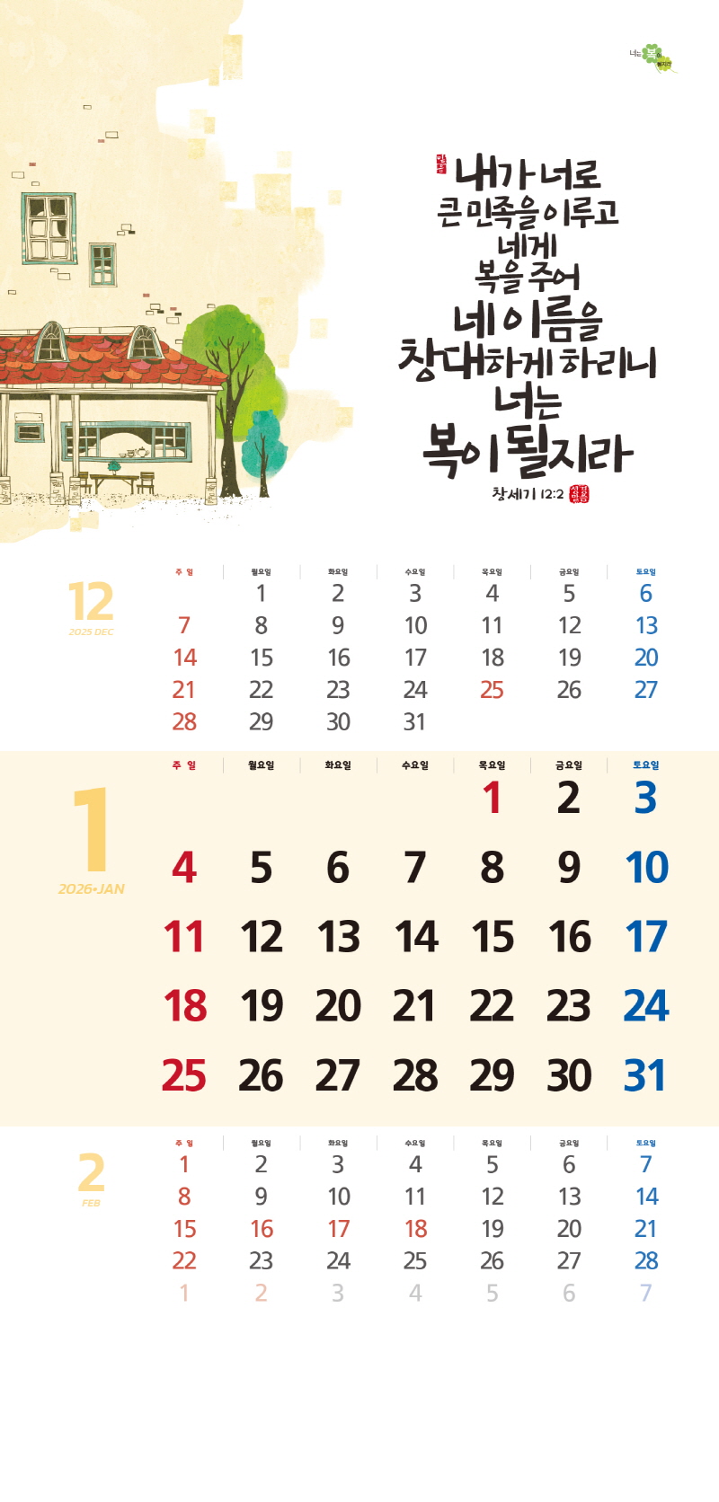 ◈본 캘린더에는 음력, 절후, 교회력이 표기되어 있습니다.