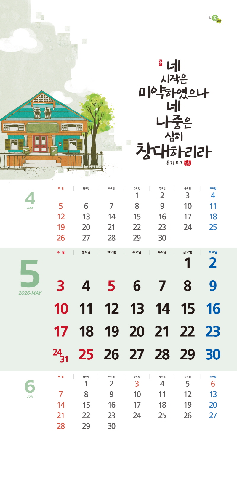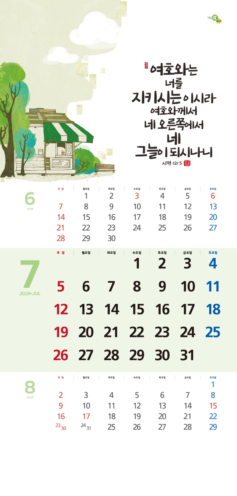 본 캘린더에는 음력, 절후, 교회력이 표기되어 있습니다.