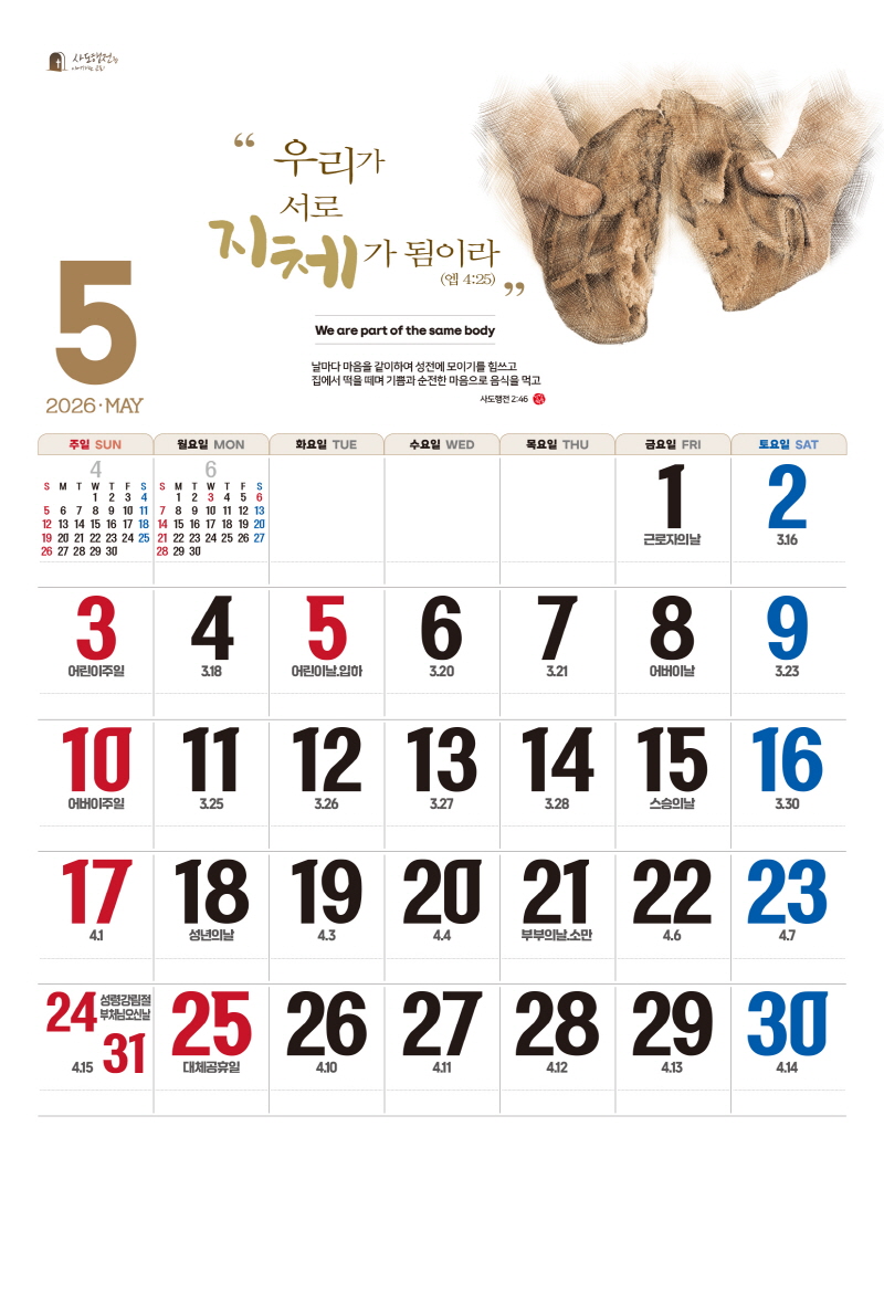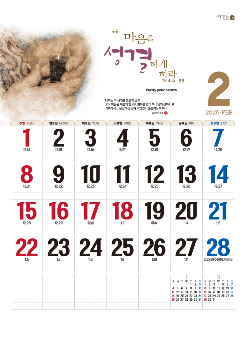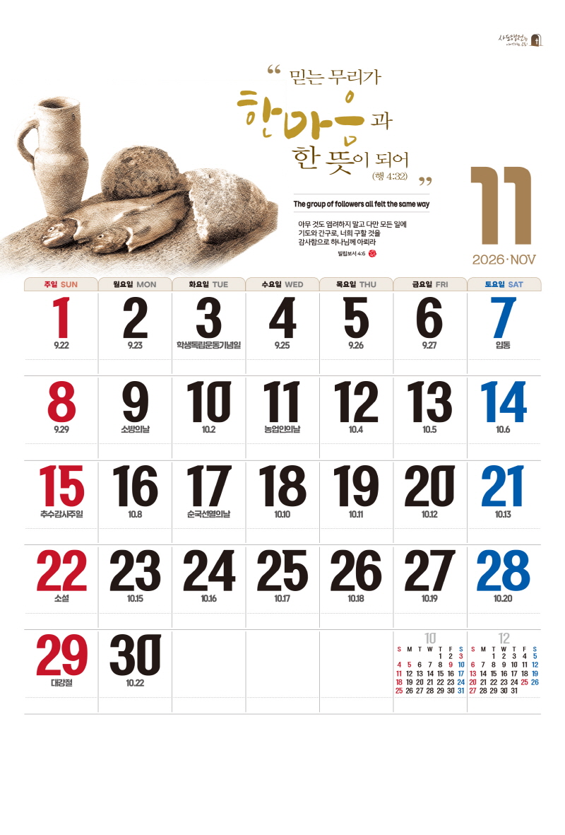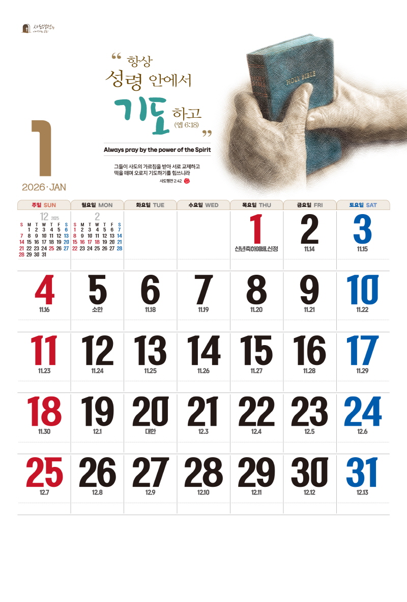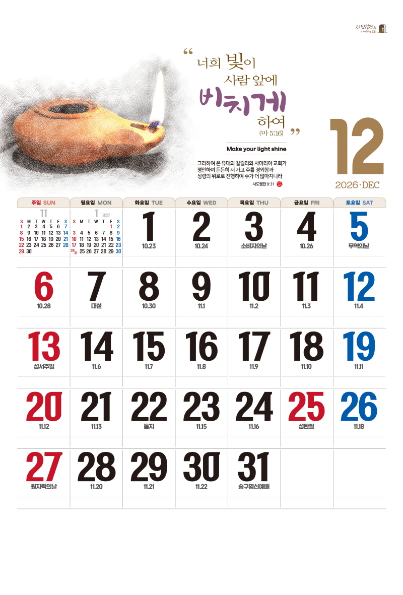 ◈본 캘린더에는 음력, 절후, 교회력이 표기되어 있습니다.