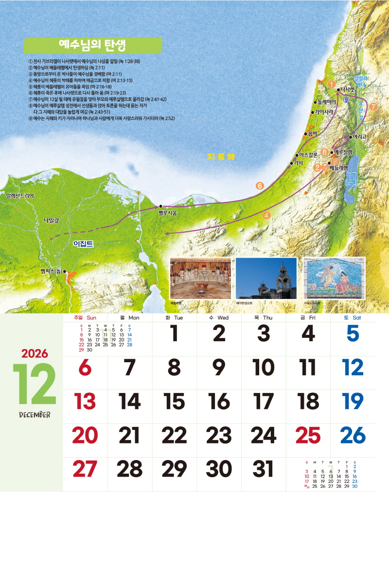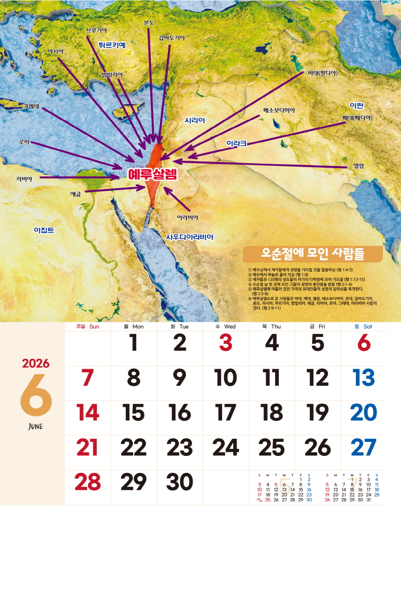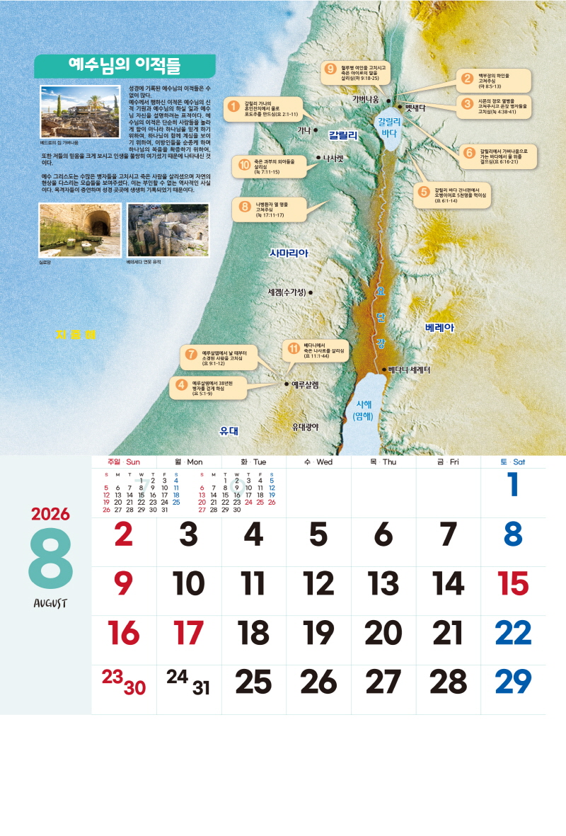 본 캘린더에는 음력, 절후, 교회력이 표기되어 있습니다.