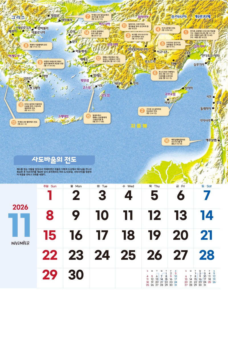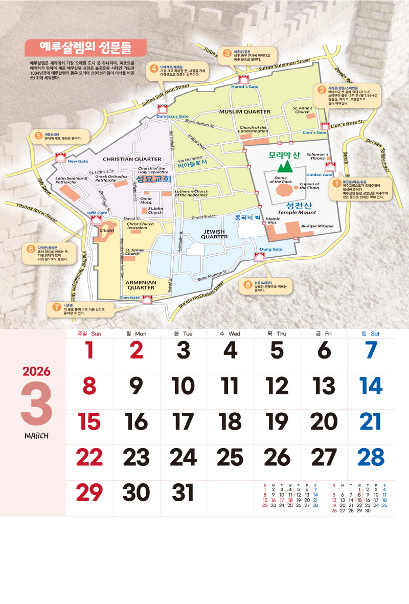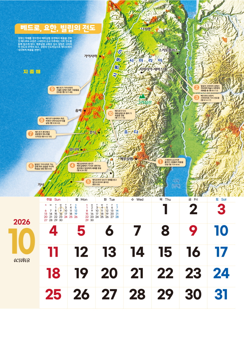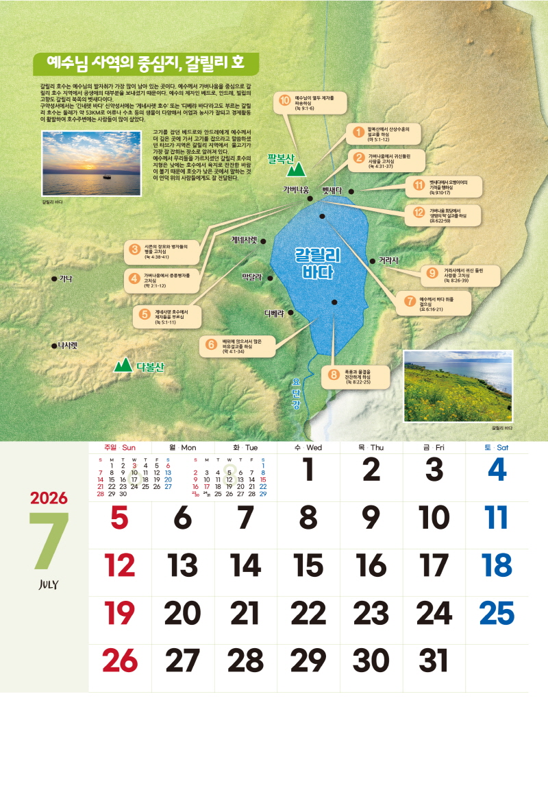 본 캘린더에는 음력, 절후, 교회력이 표기되어 있습니다.