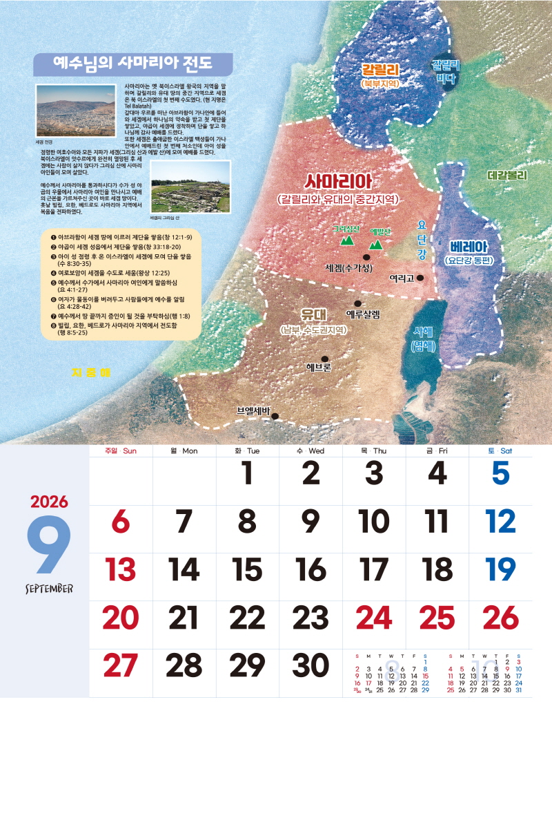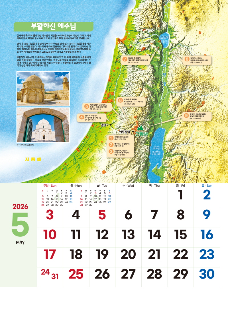 ◈본 캘린더에는 음력, 절후, 교회력이 표기되어 있습니다.