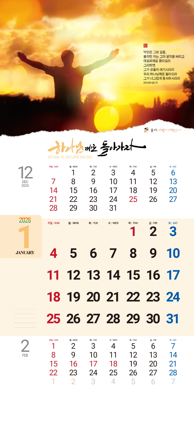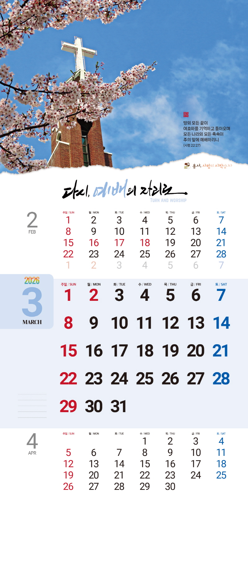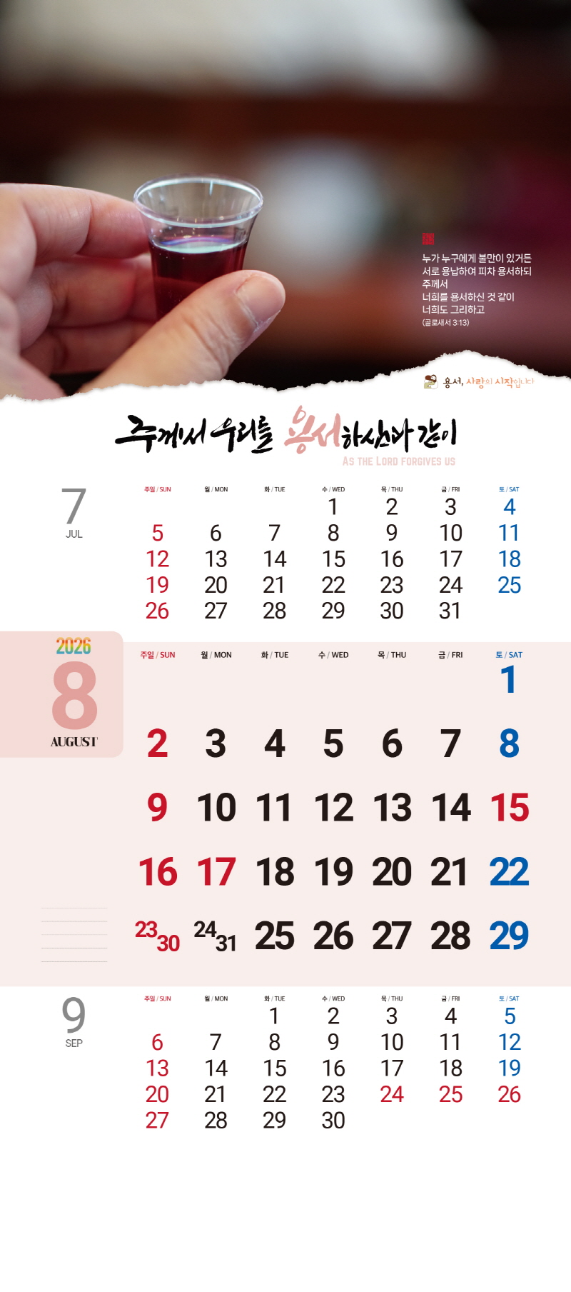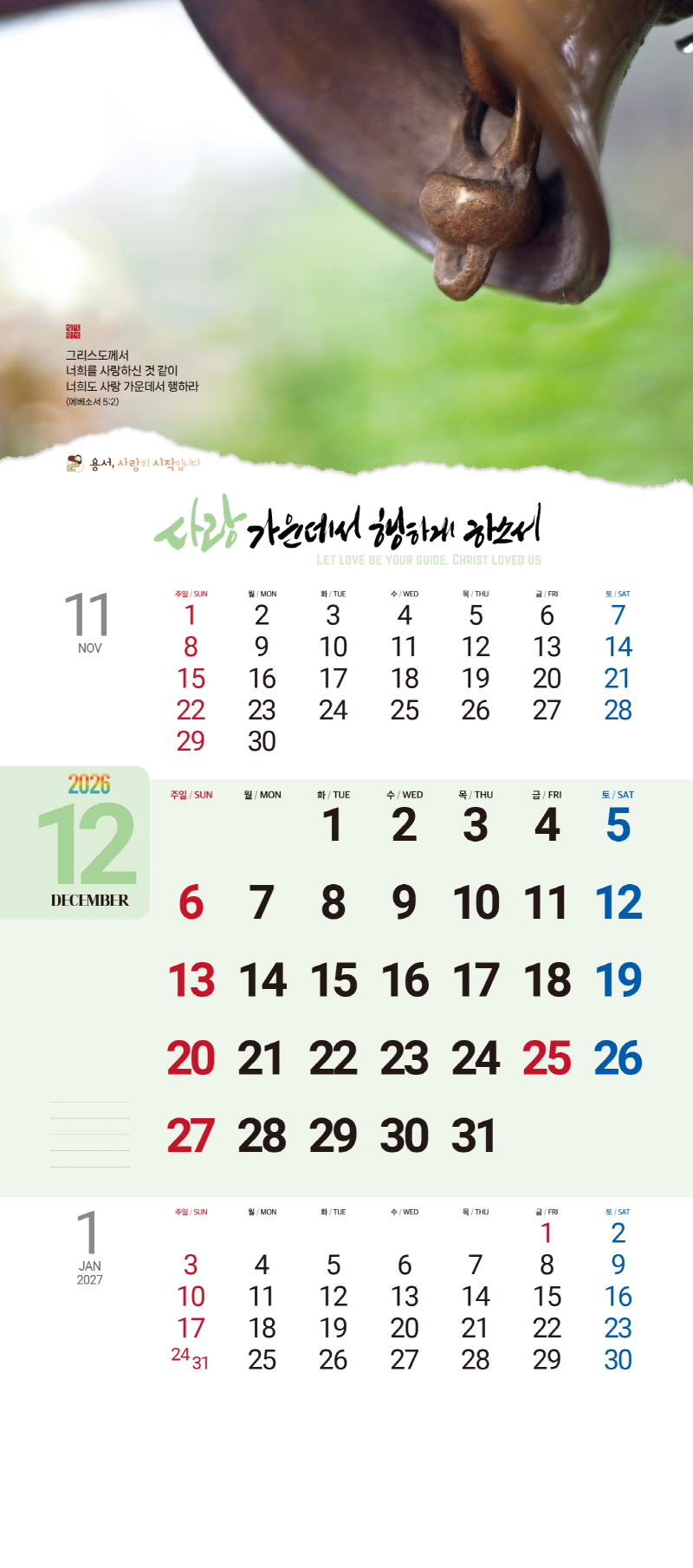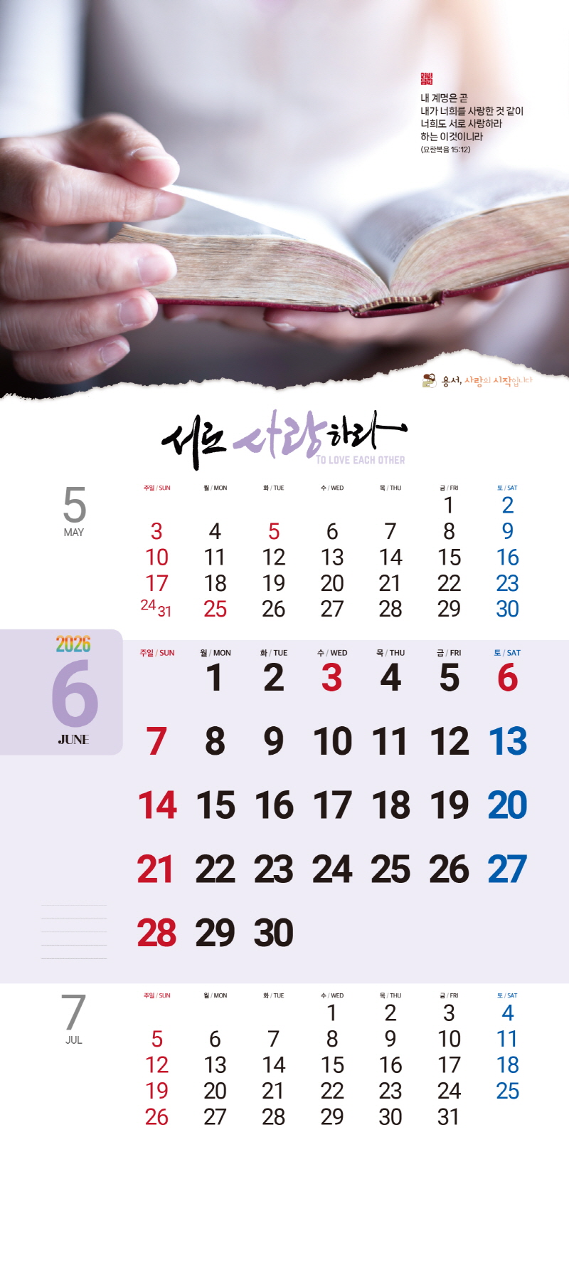 ◈본 캘린더에는 음력, 절후, 교회력이 표기되어 있습니다.