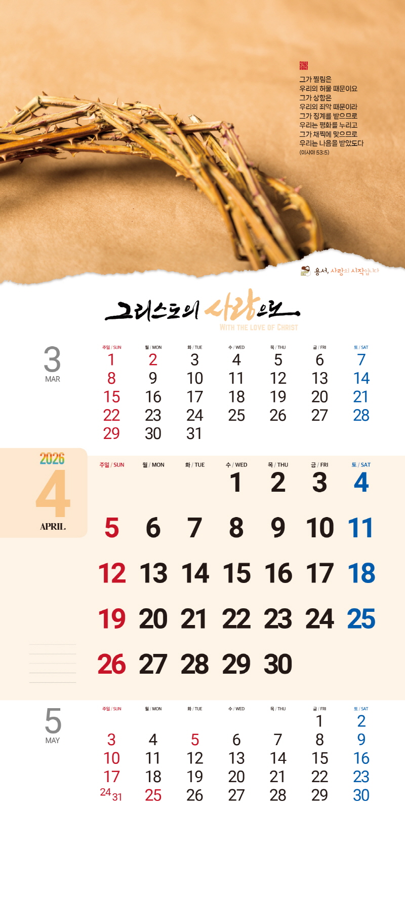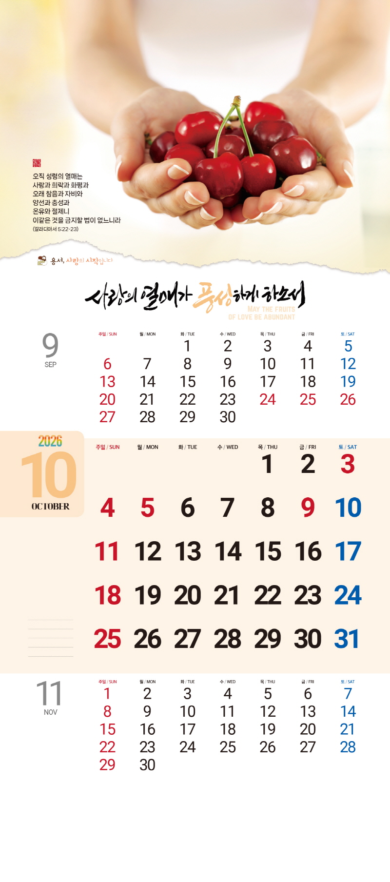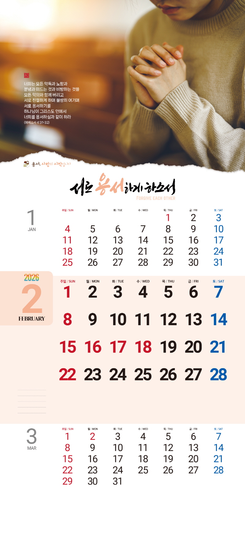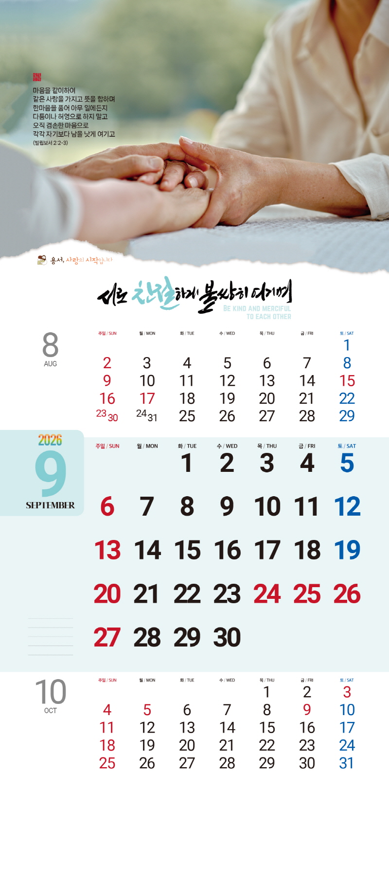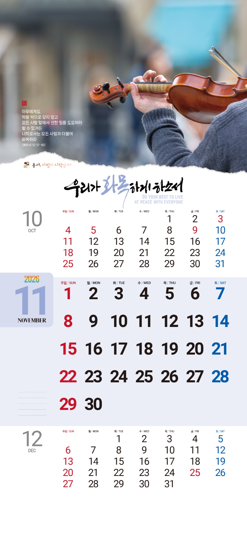◈본 캘린더에는 음력, 절후, 교회력이 표기되어 있습니다.
