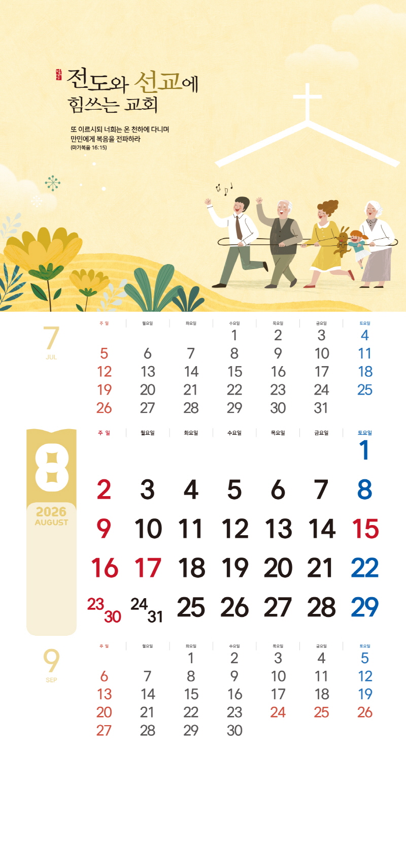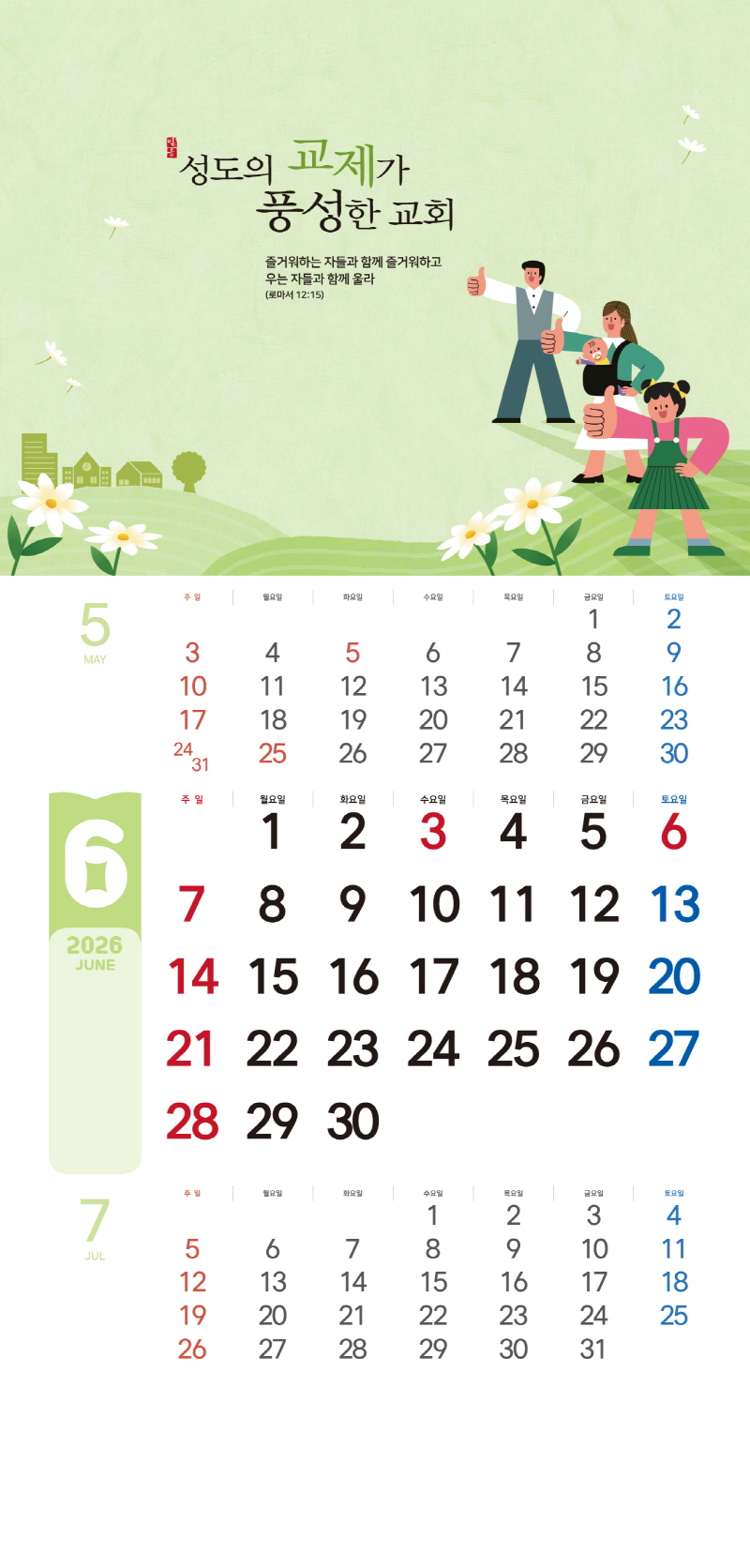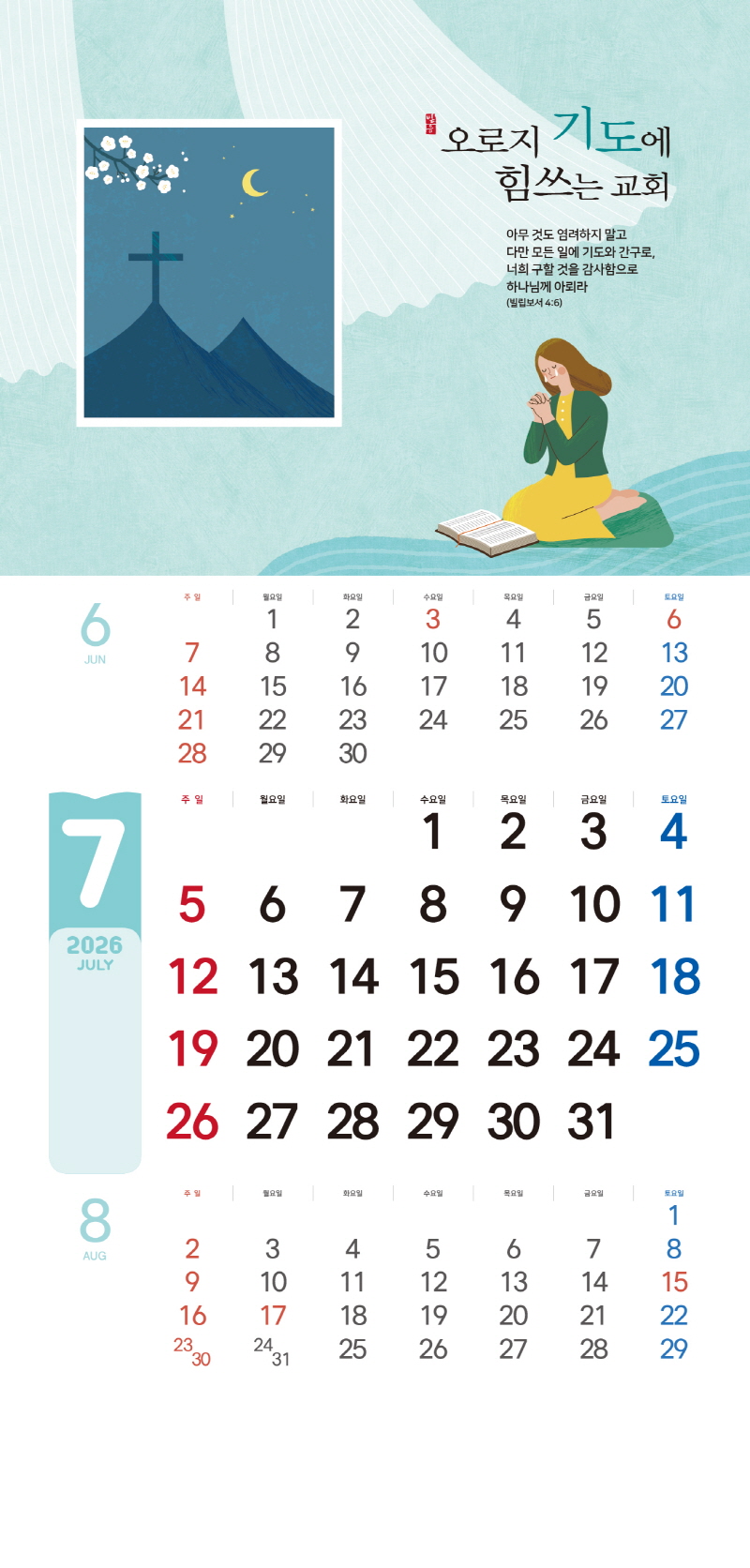 본 캘린더에는 음력, 절후, 교회력이 표기되어 있습니다.