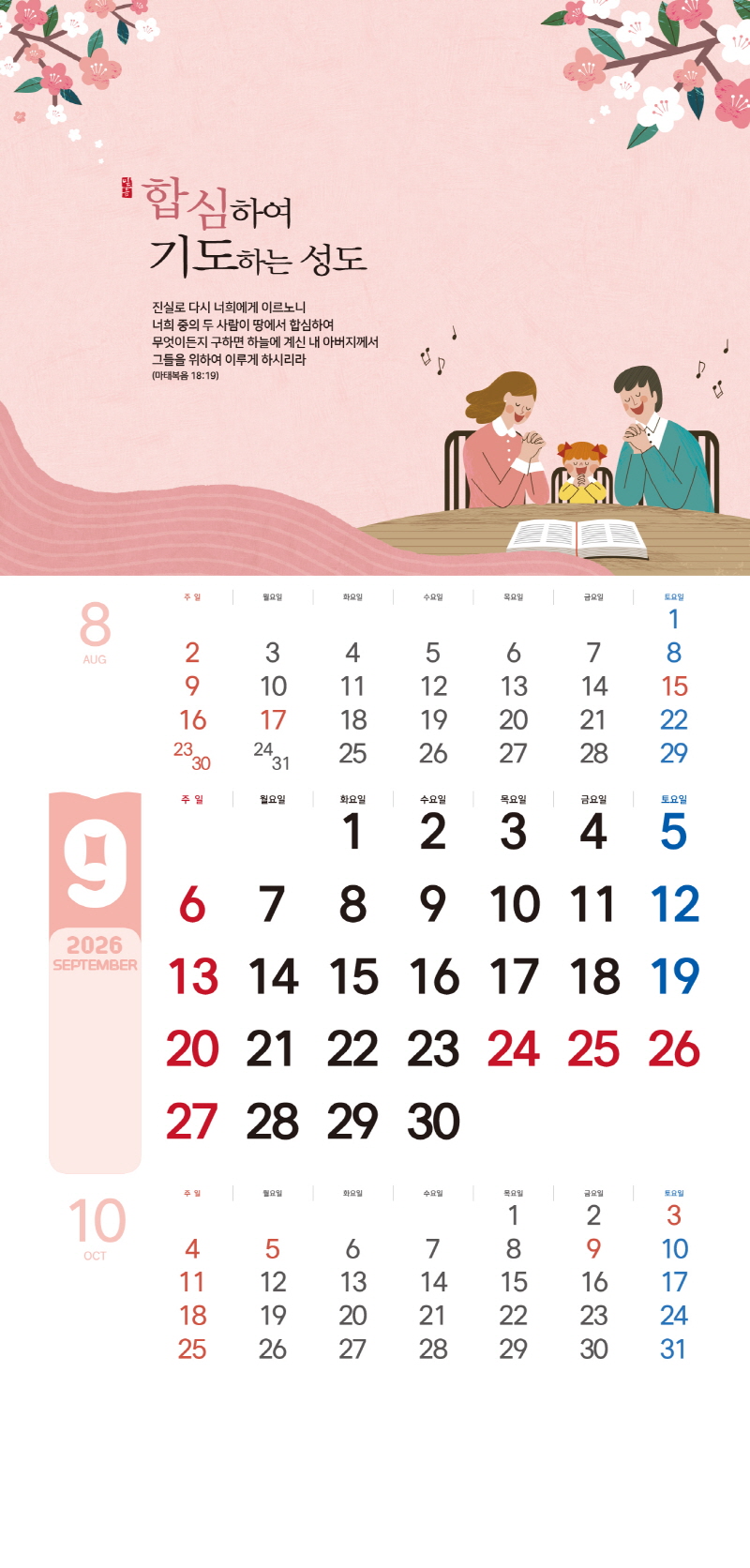 ◈본 캘린더에는 음력, 절후, 교회력이 표기되어 있습니다.