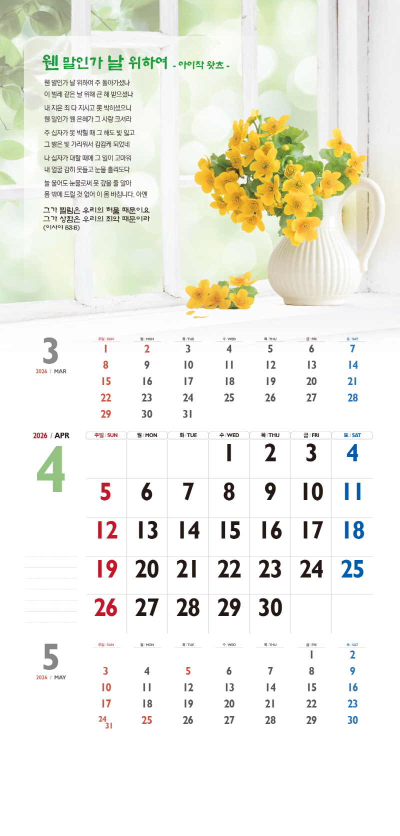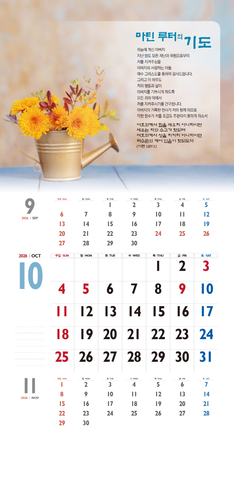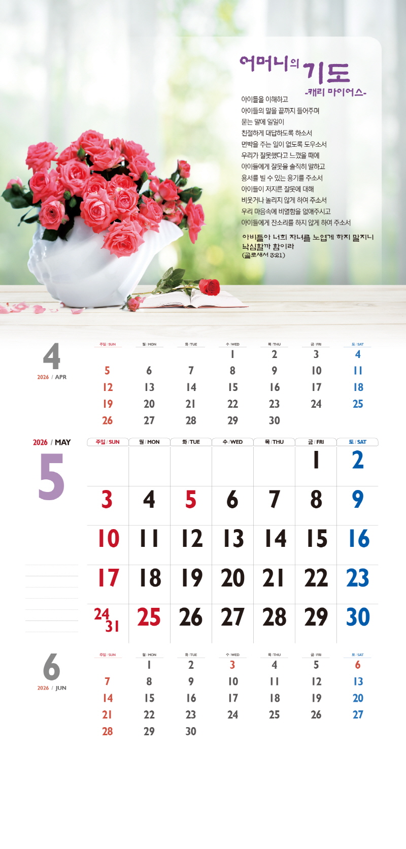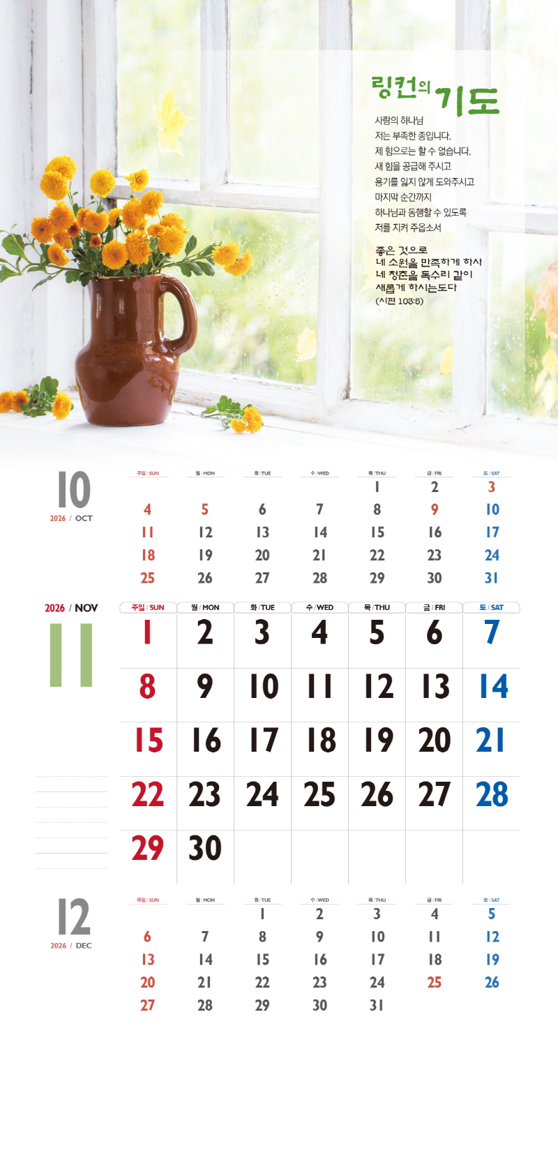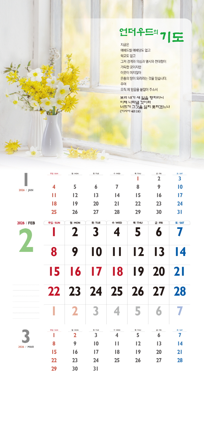 ◈본 캘린더에는 음력, 절후, 교회력이 표기되어 있습니다.