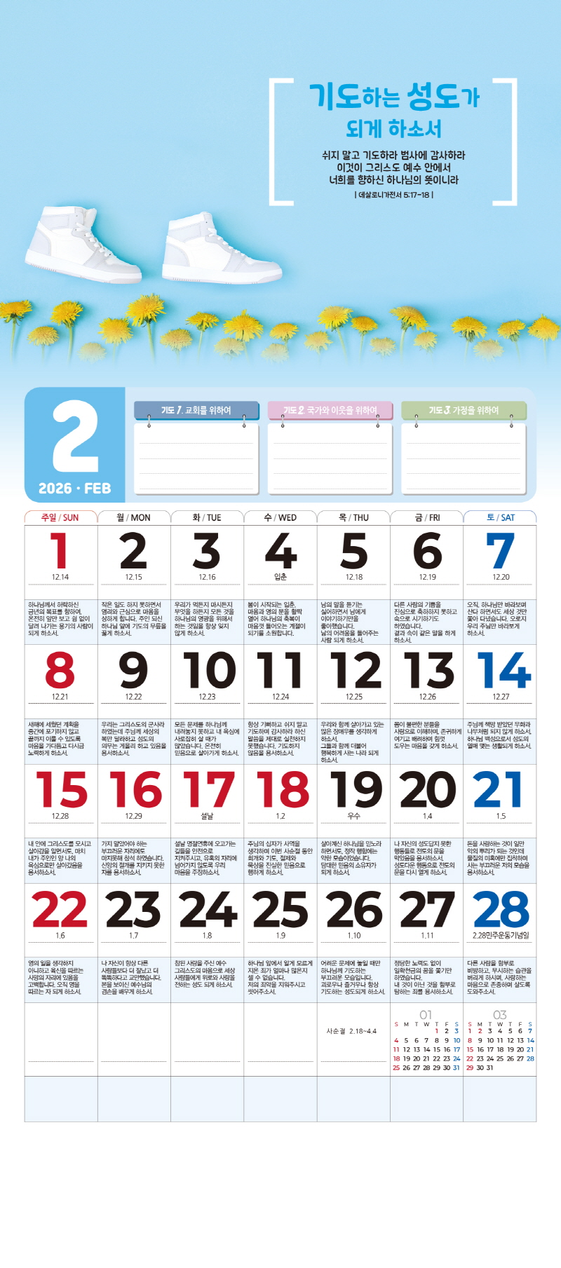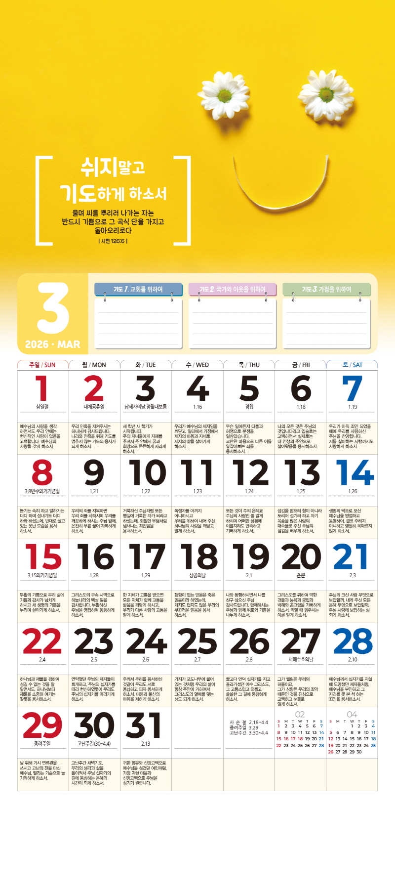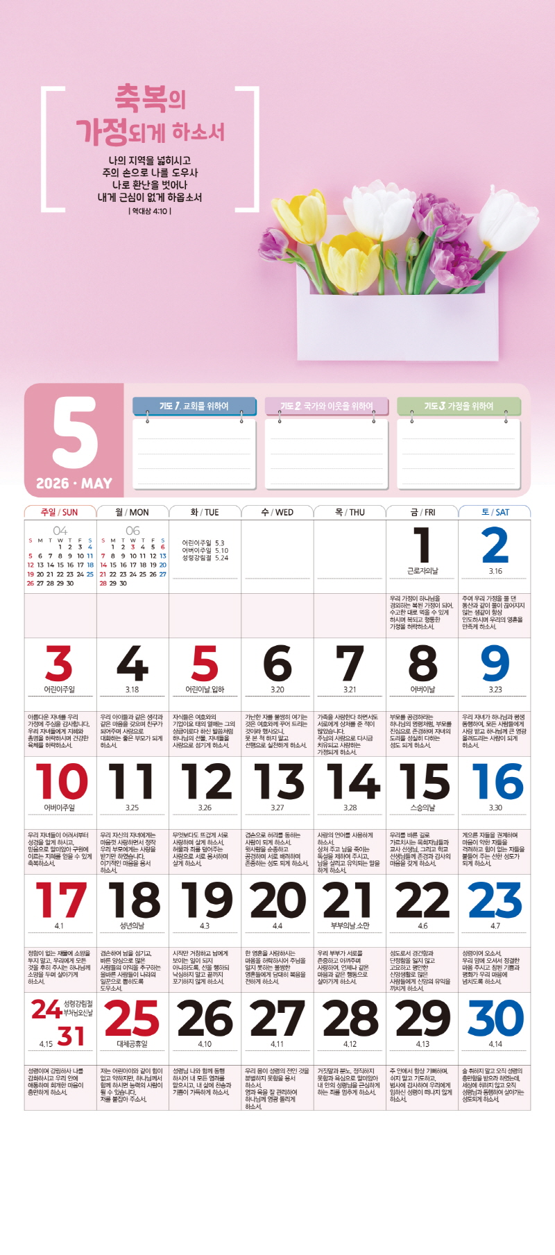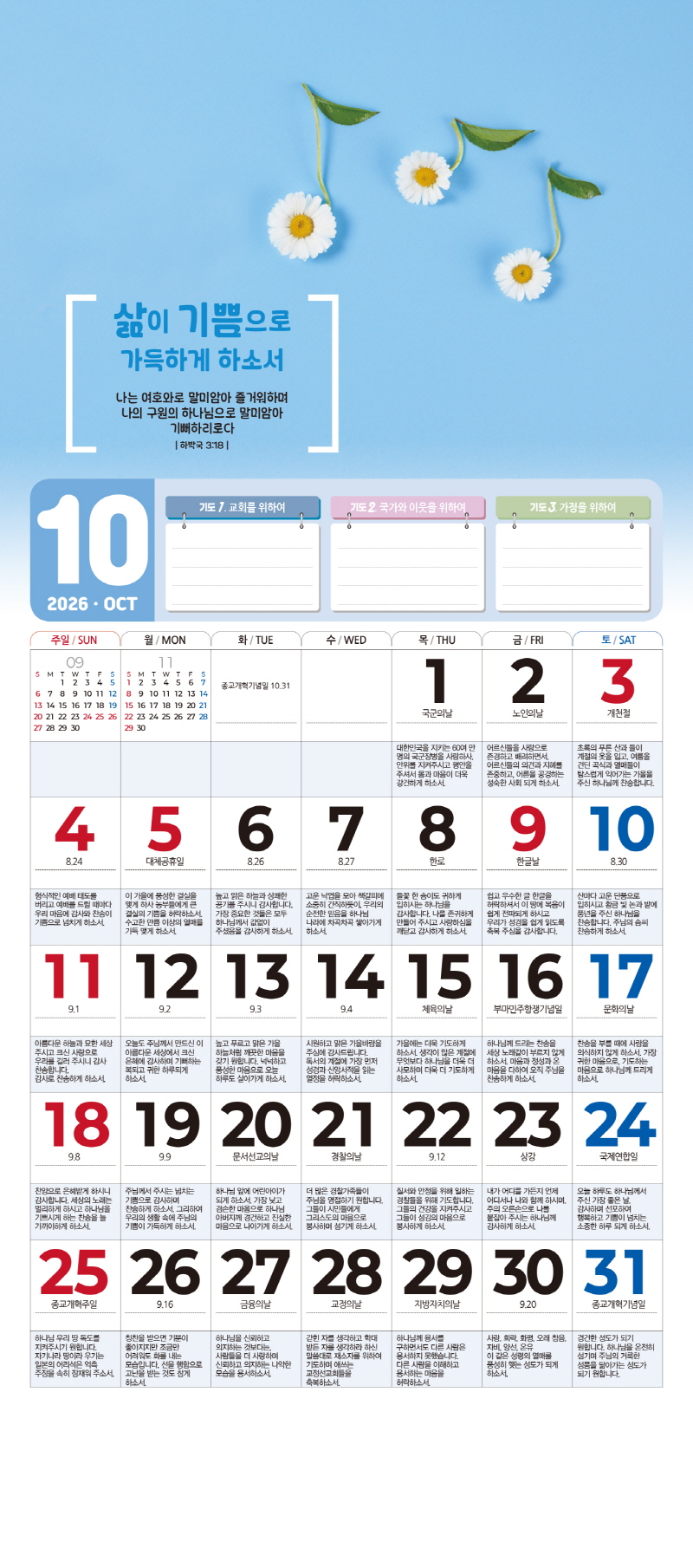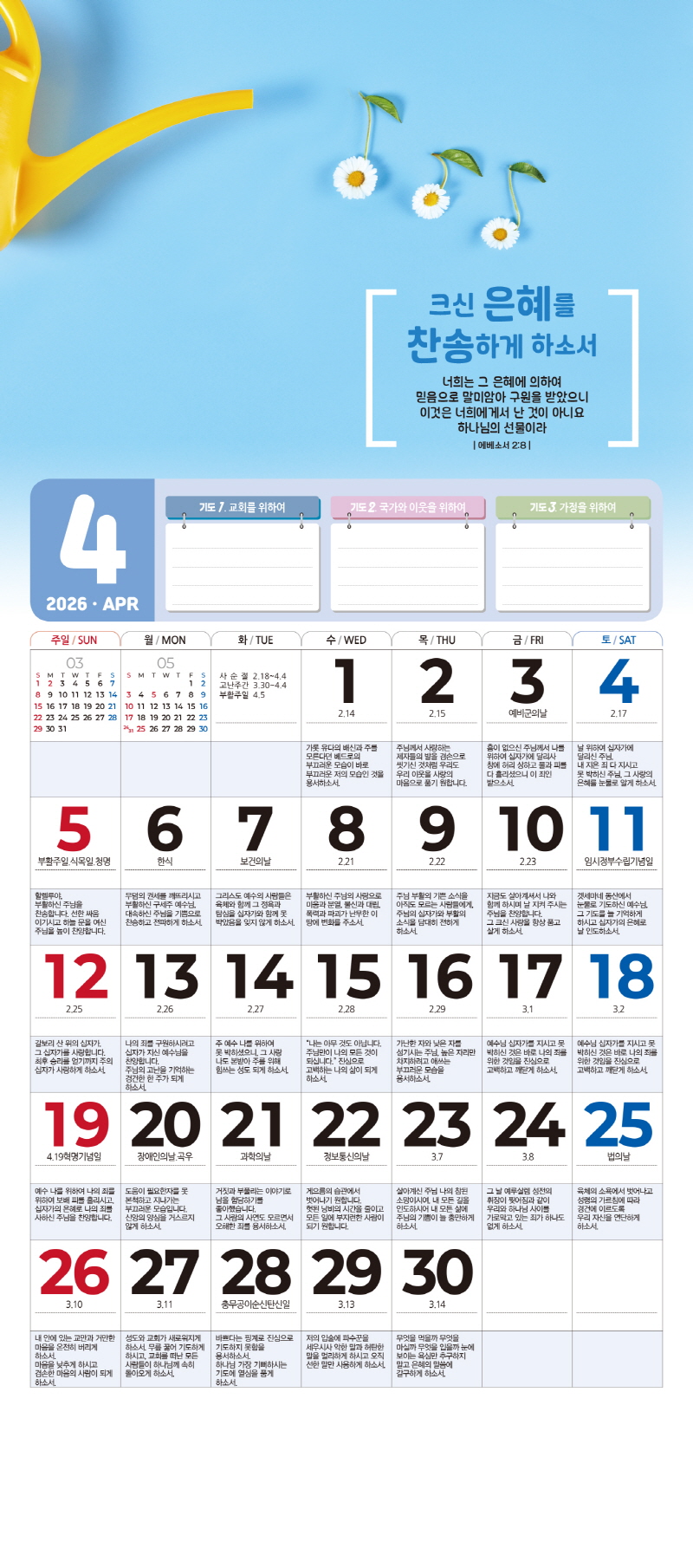 ◈본 캘린더에는 음력, 절후, 교회력이 표기되어 있습니다.