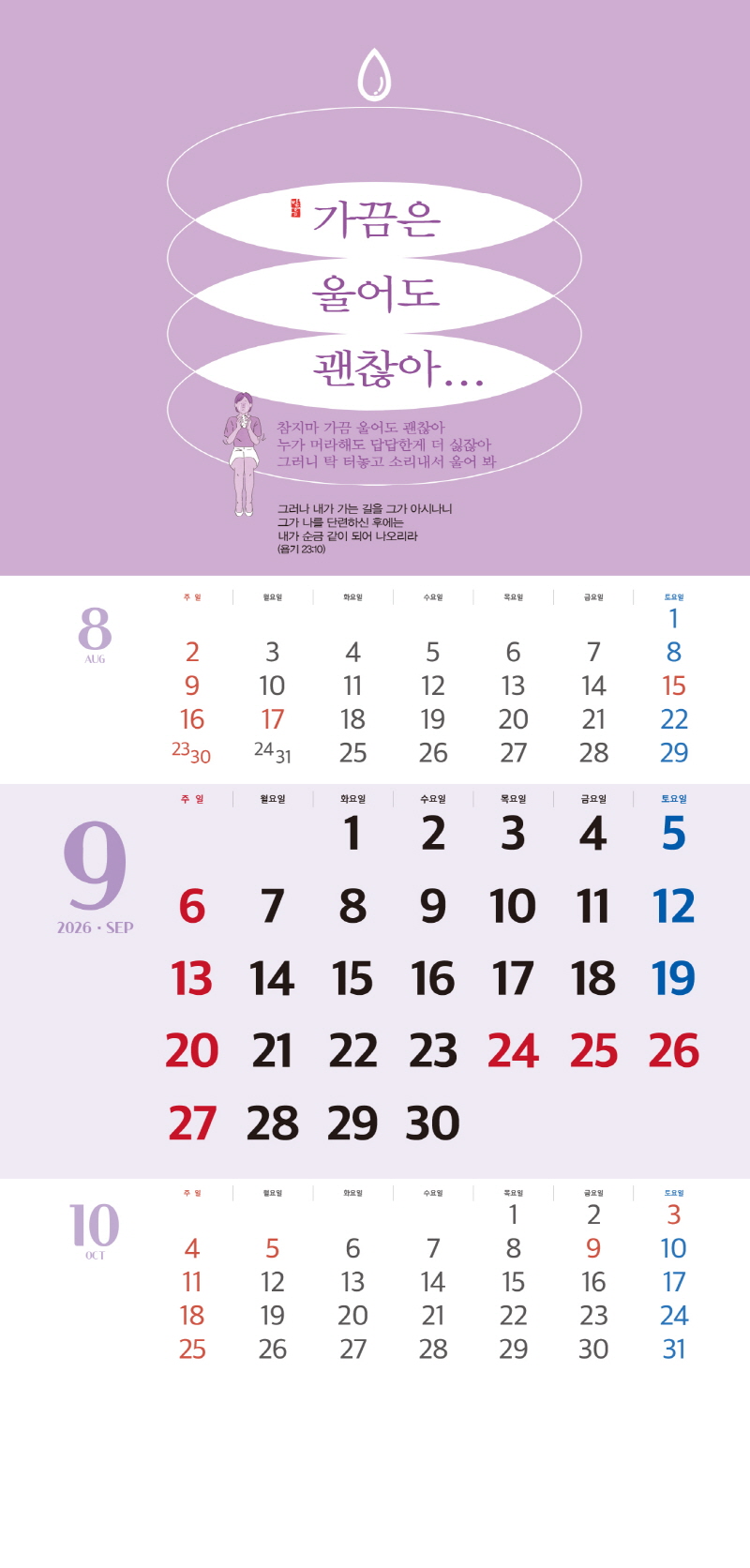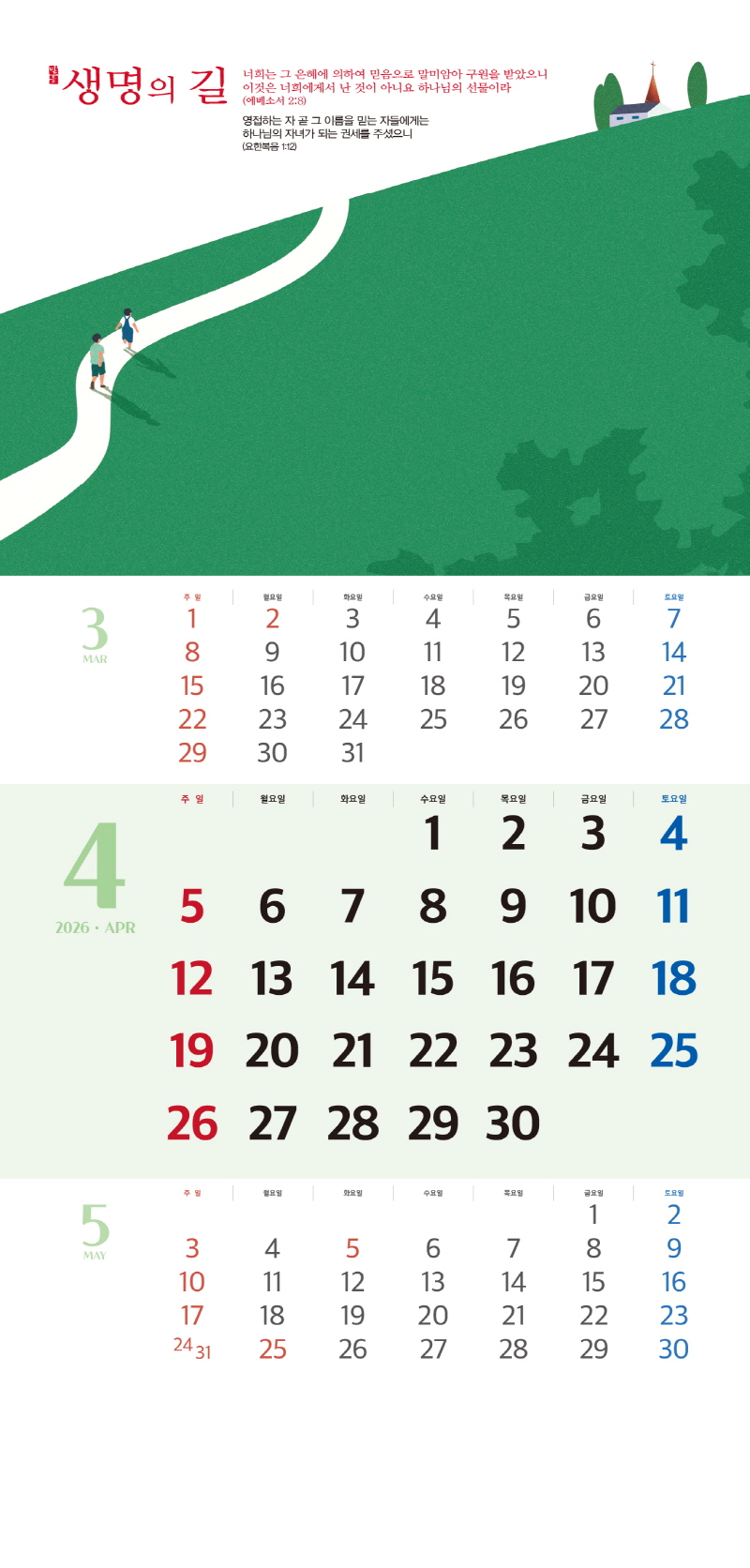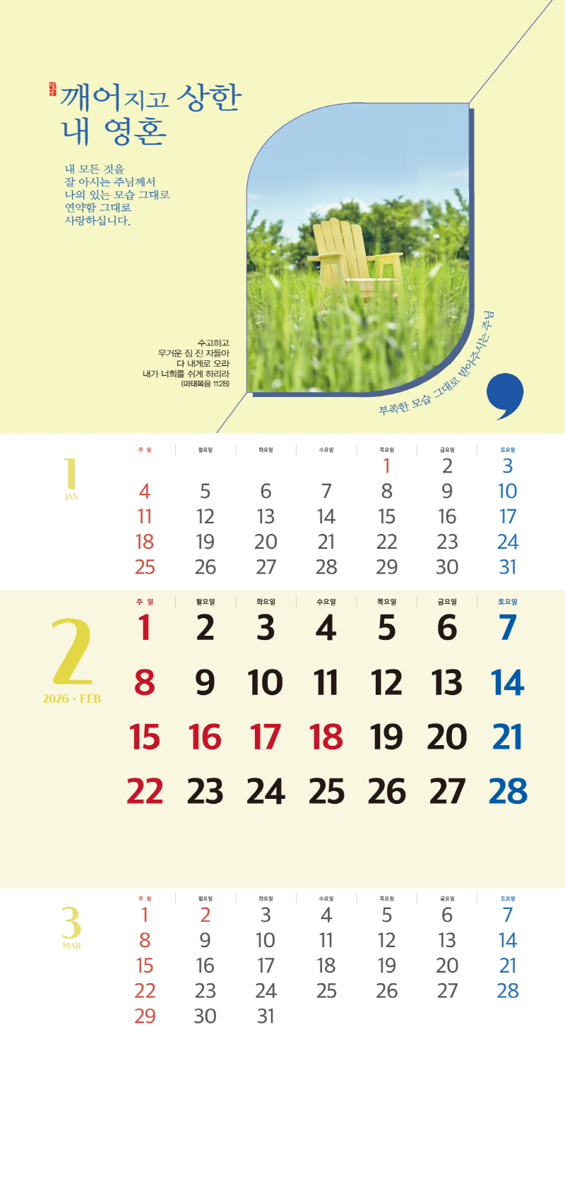 ◈본 캘린더에는 음력, 절후, 교회력이 표기되어 있습니다.