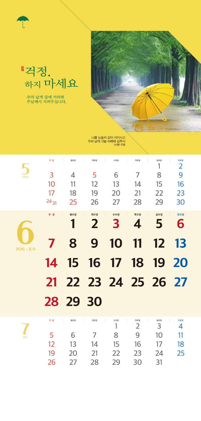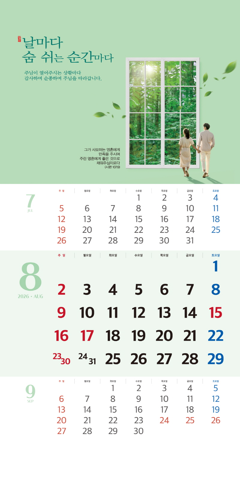 본 캘린더에는 음력, 절후, 교회력이 표기되어 있습니다.