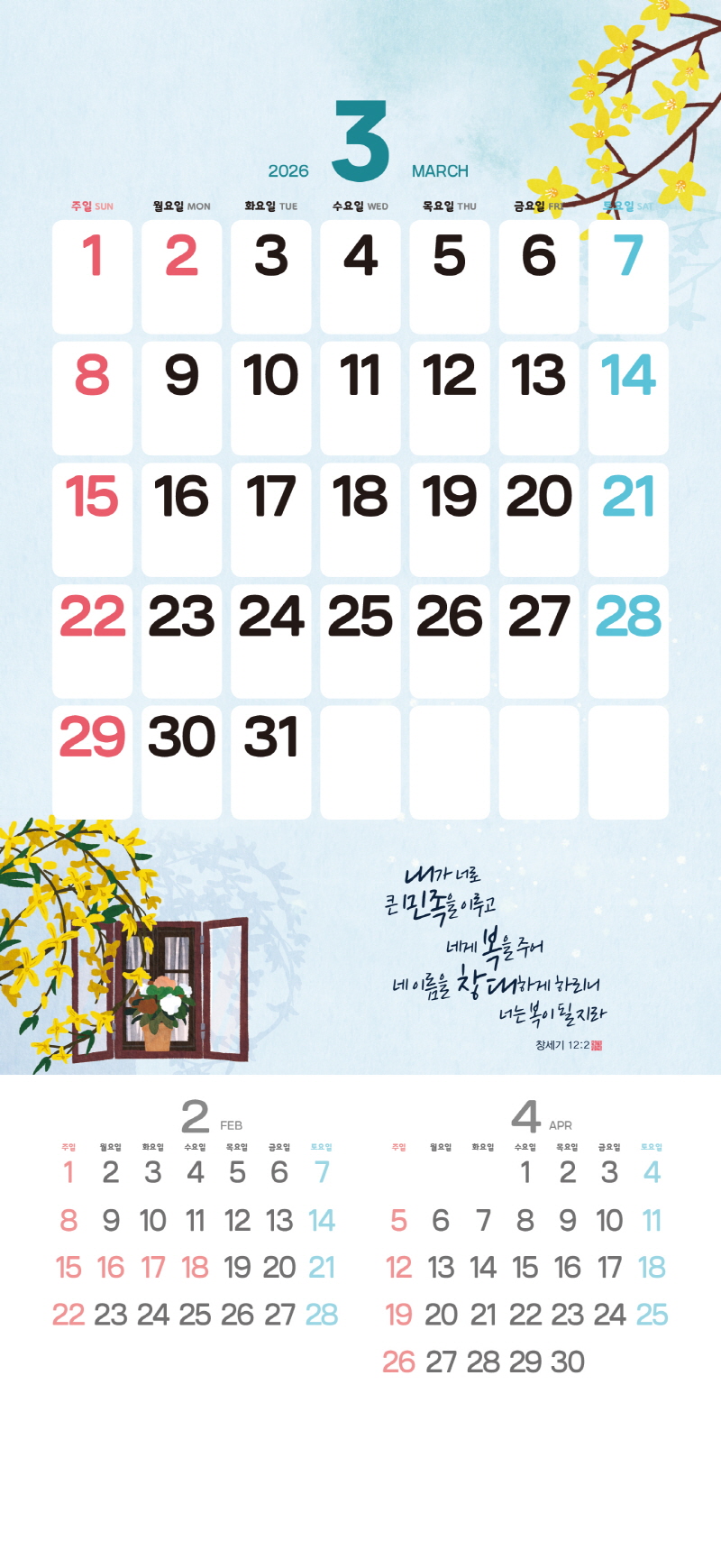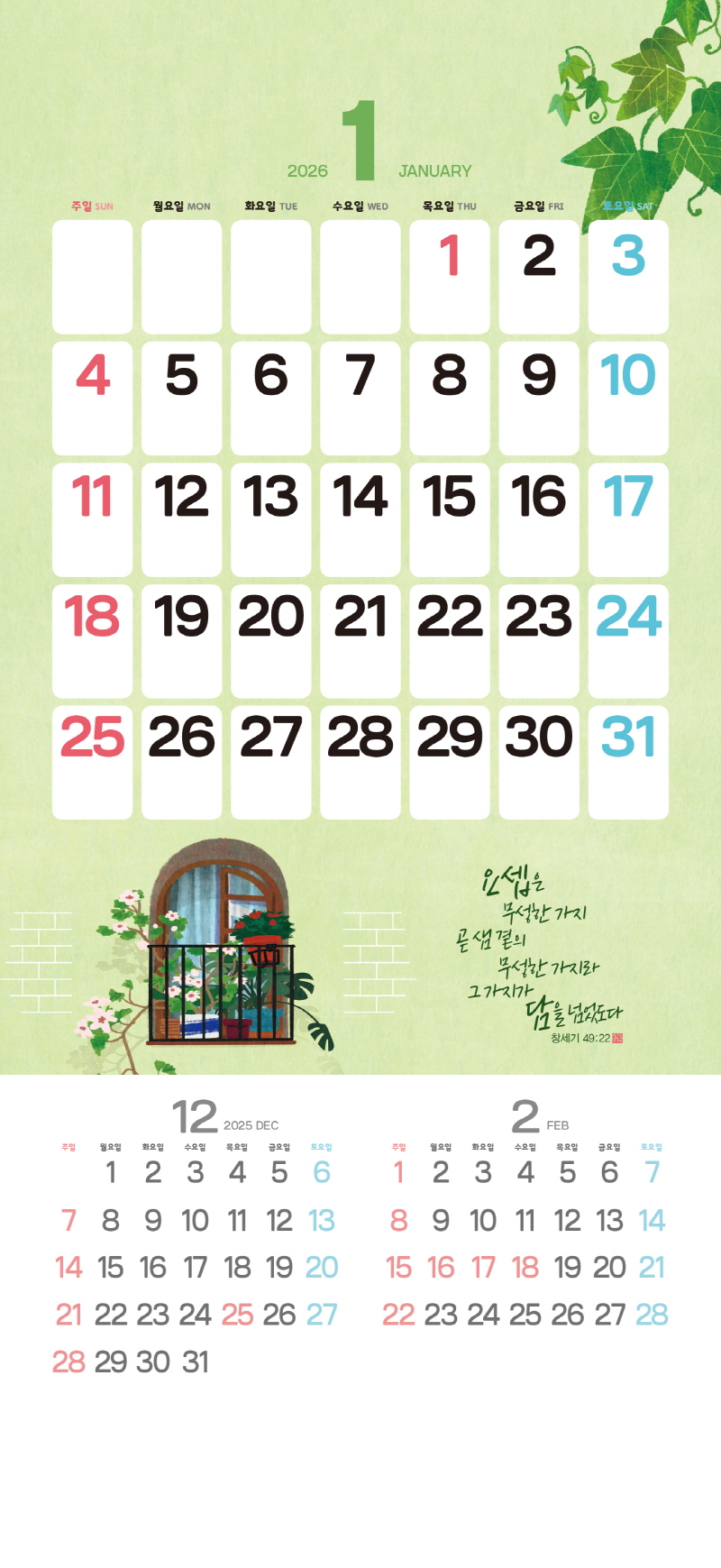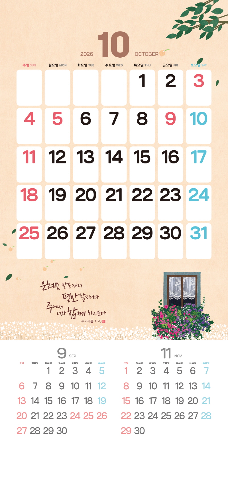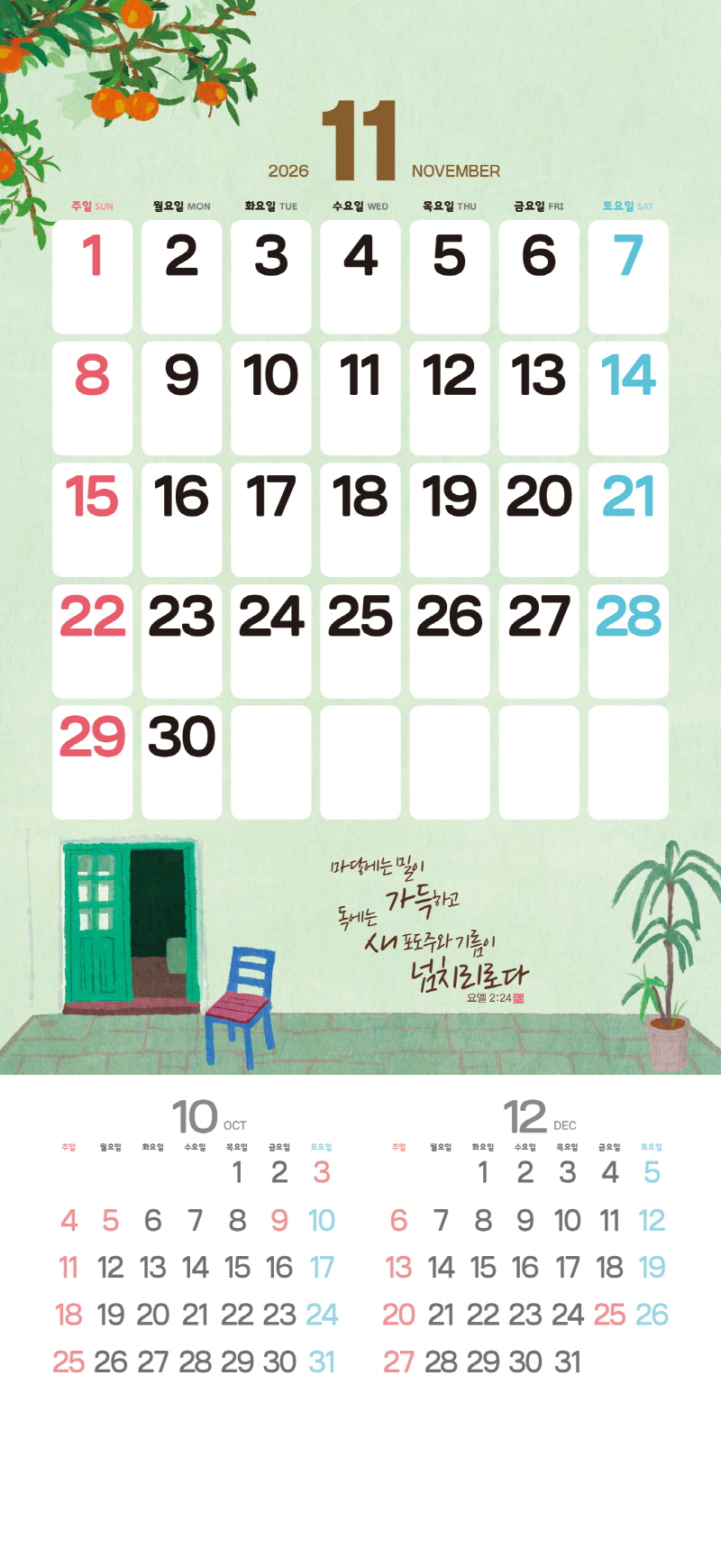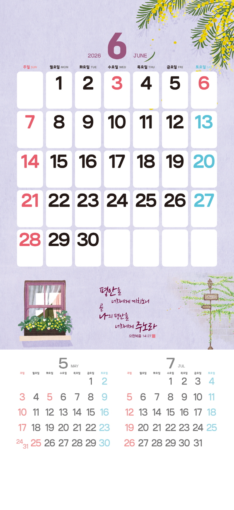 ◈본 캘린더에는 음력, 절후, 교회력이 표기되어 있습니다.