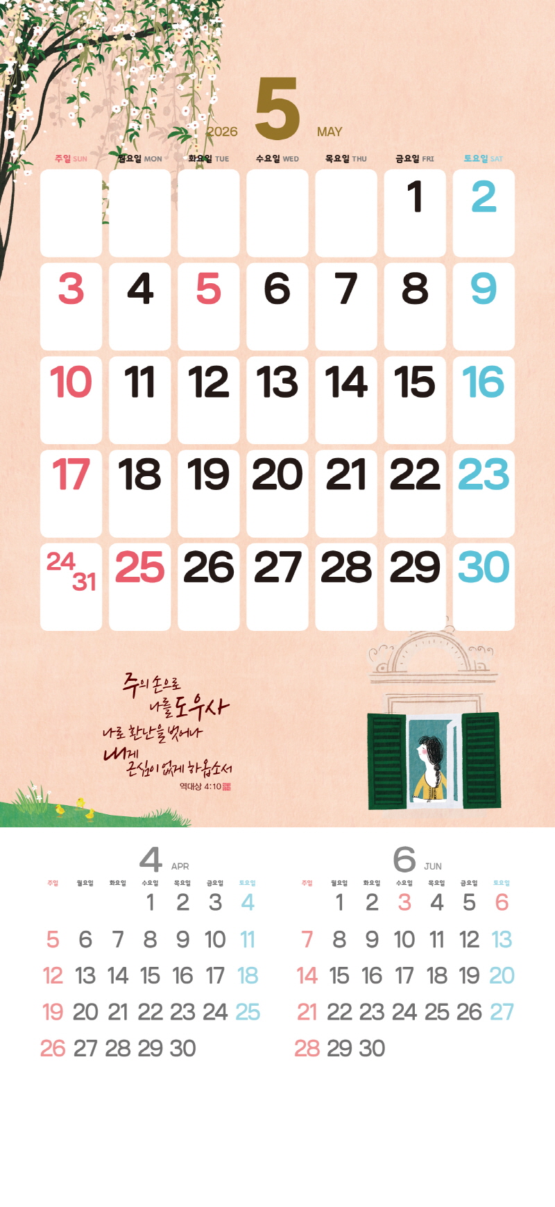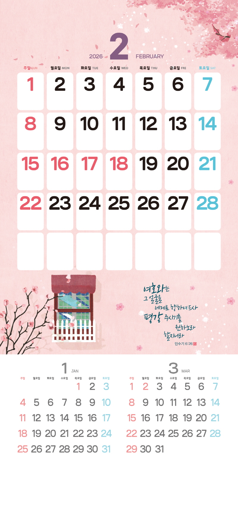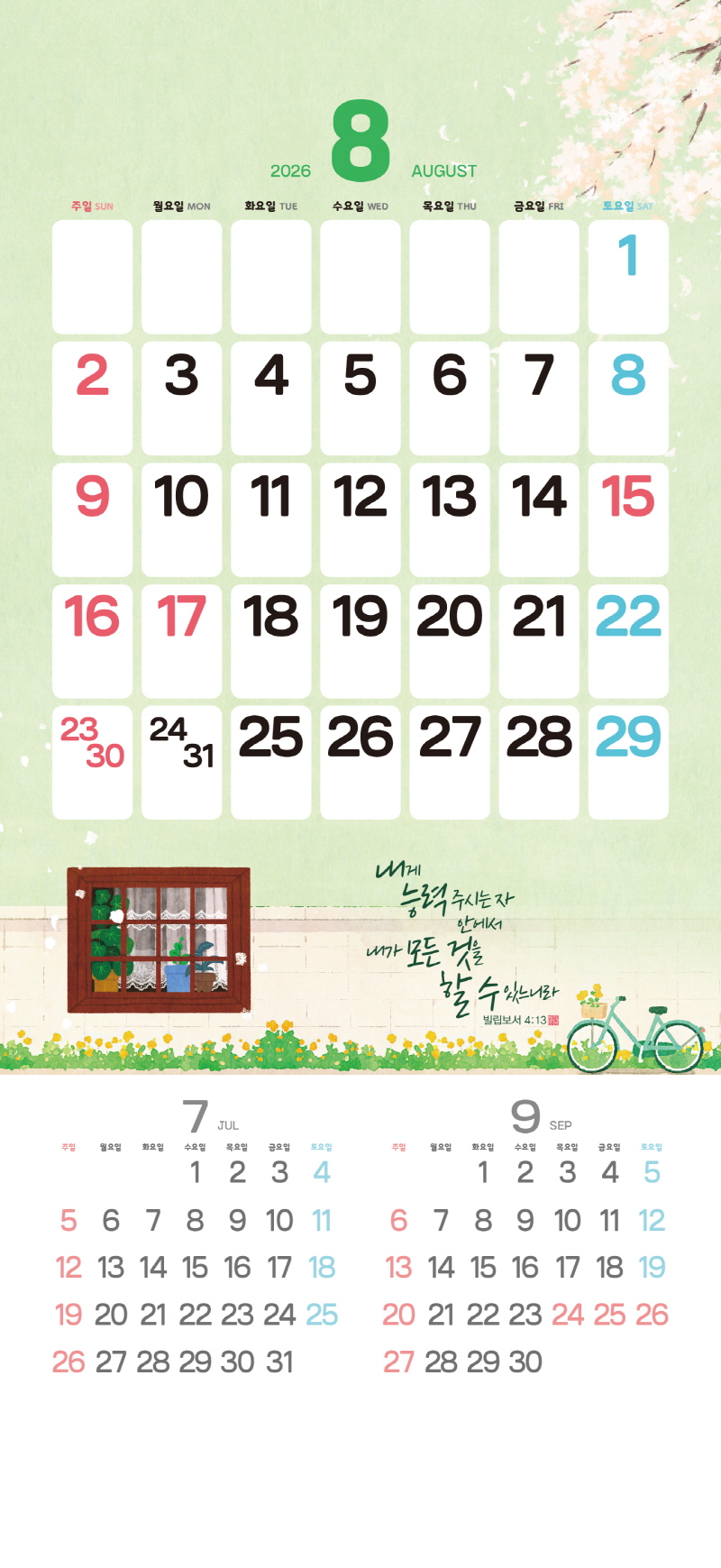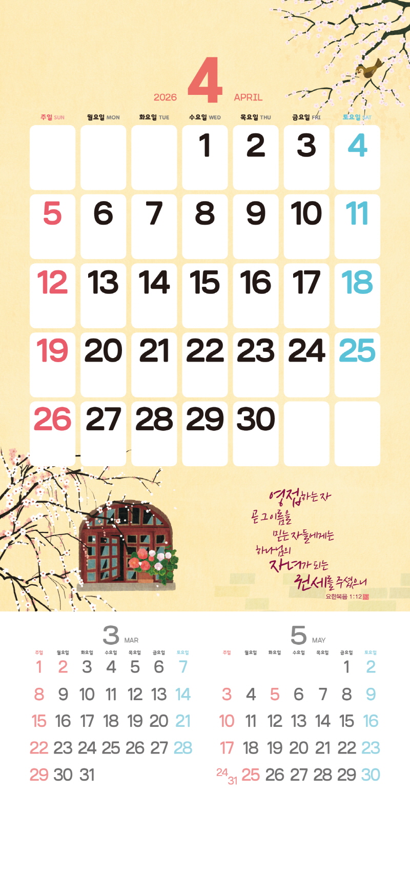본 캘린더에는 음력, 절후, 교회력이 표기되어 있습니다.