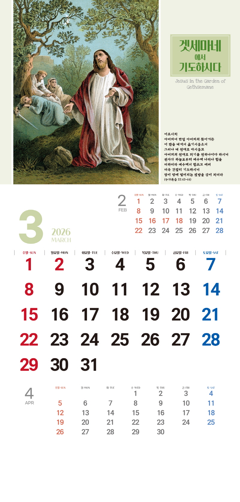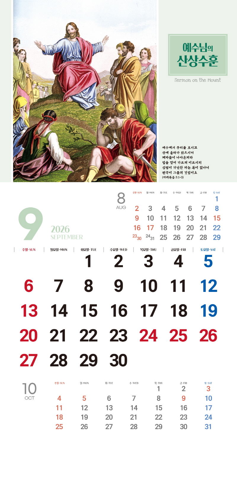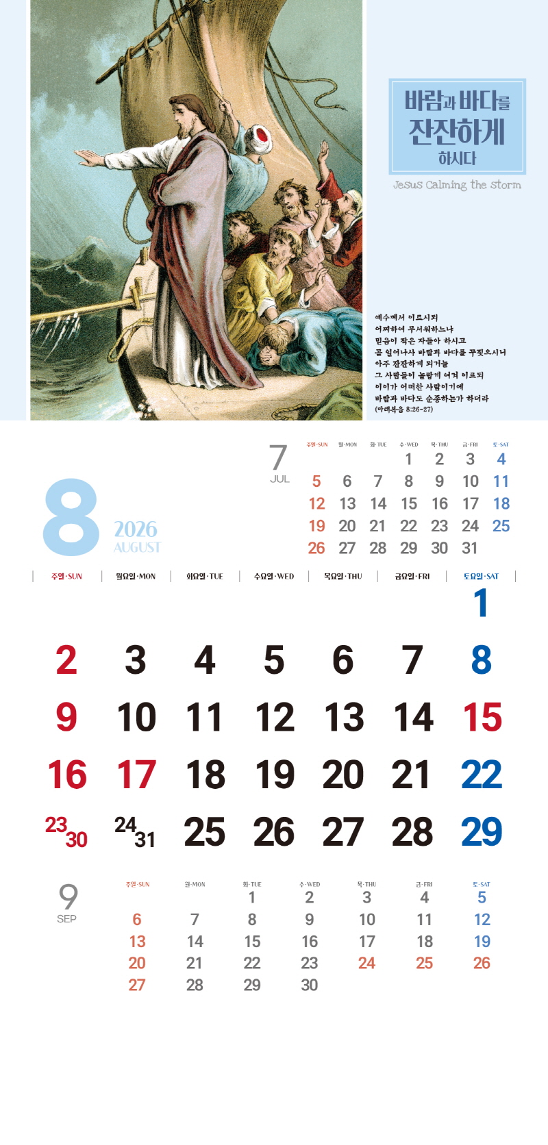 ◈본 캘린더에는 음력, 절후, 교회력이 표기되어 있습니다.