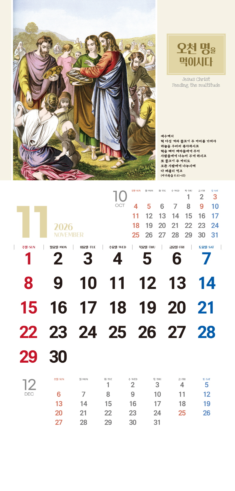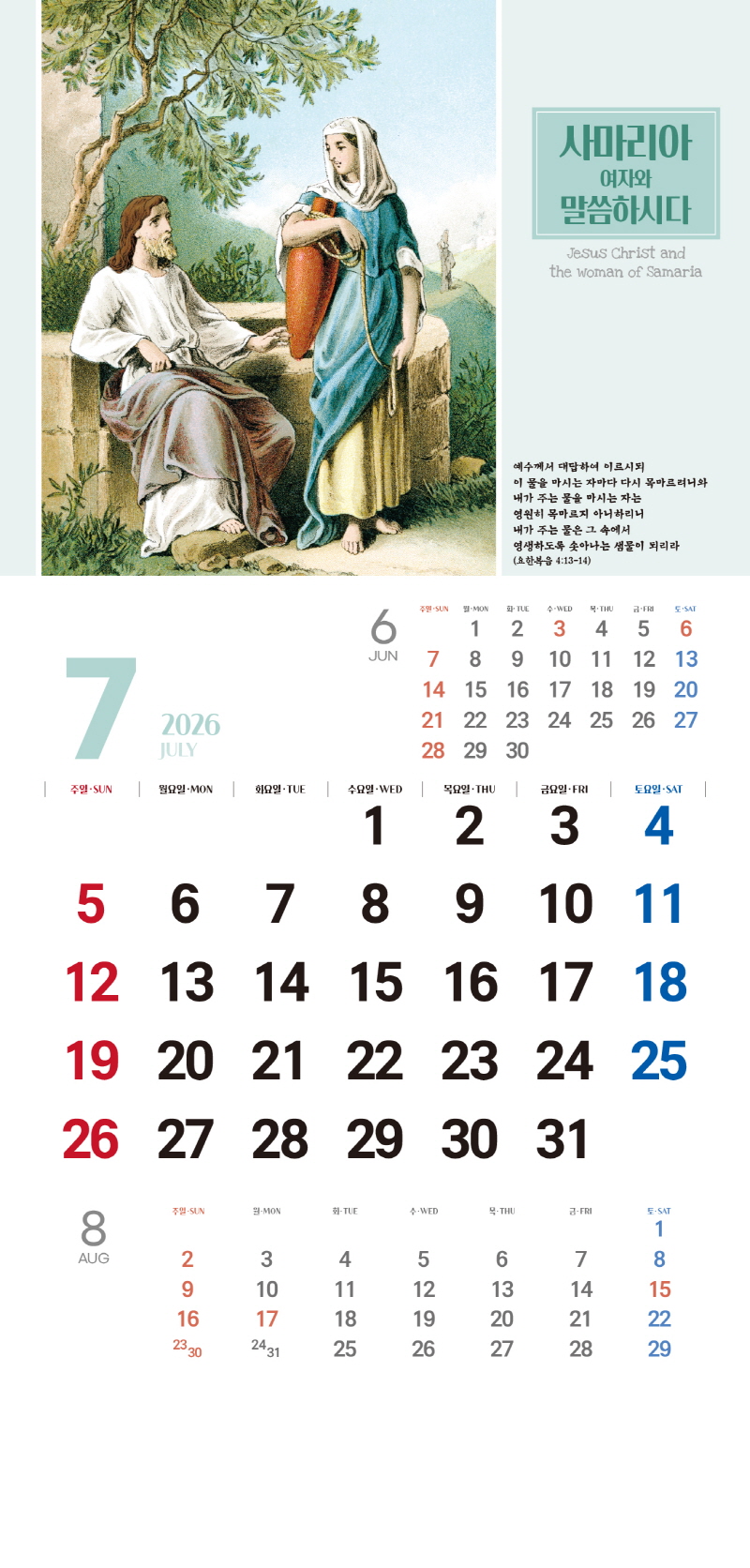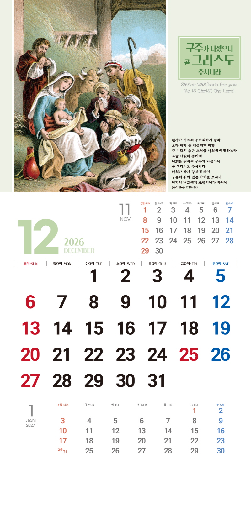 본 캘린더에는 음력, 절후, 교회력이 표기되어 있습니다.