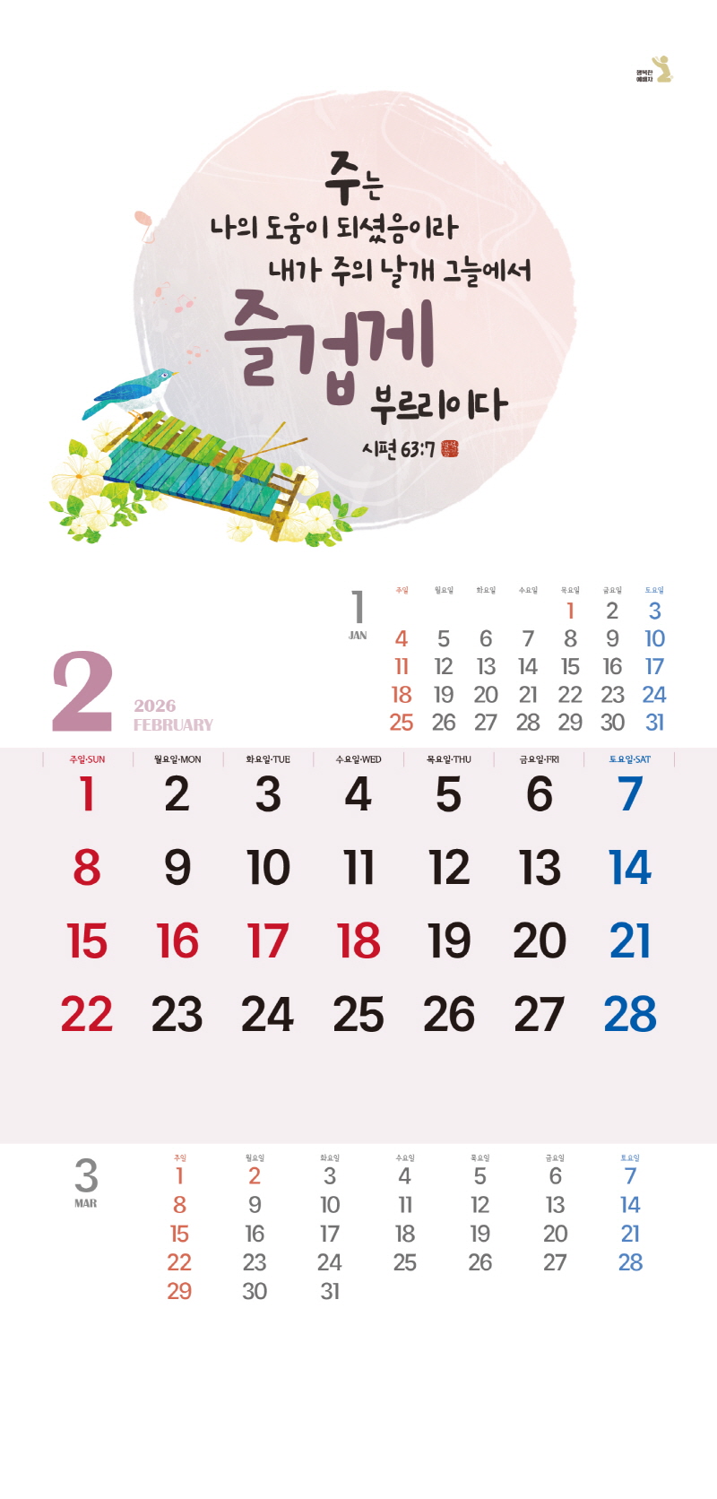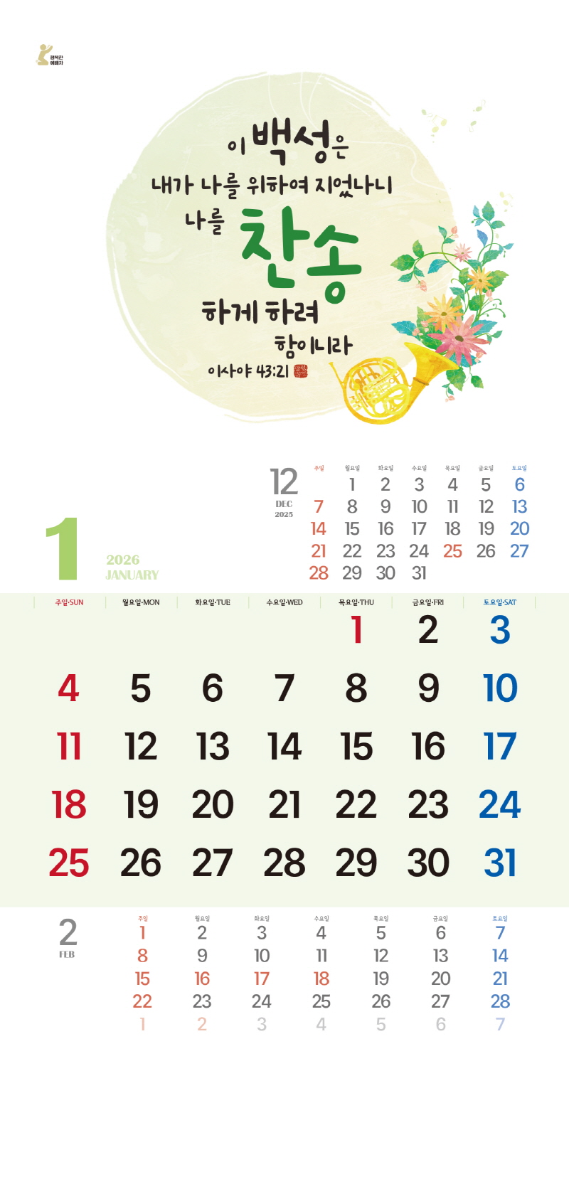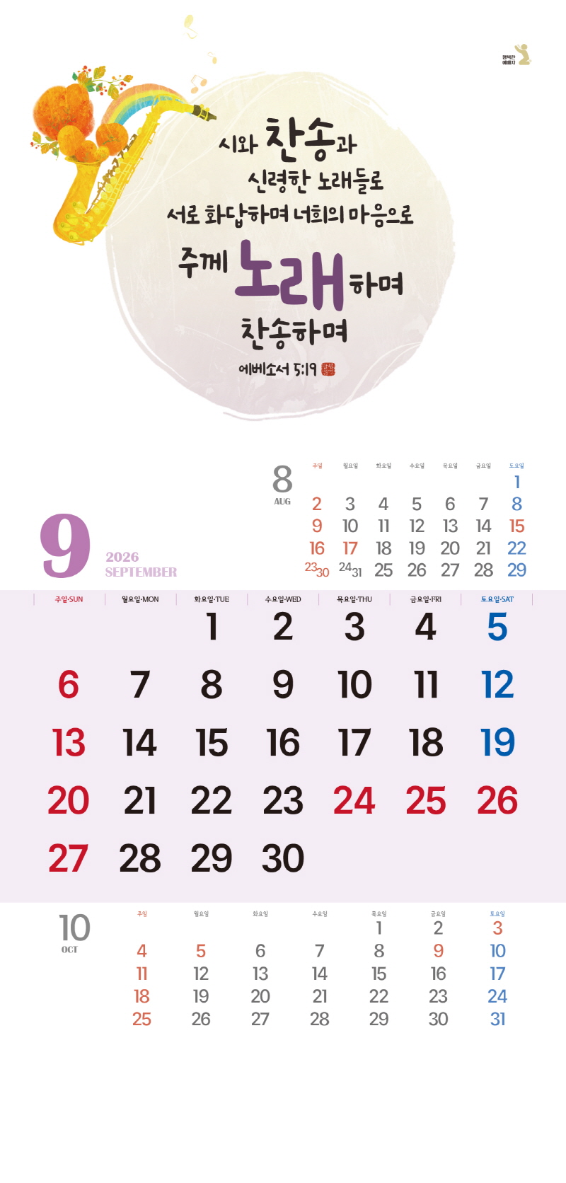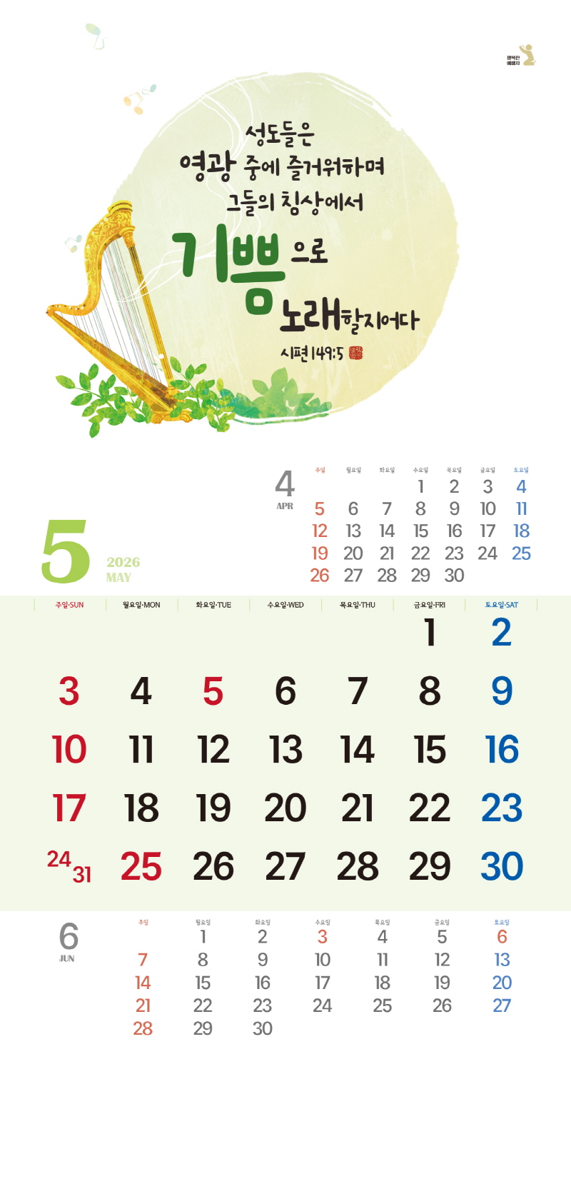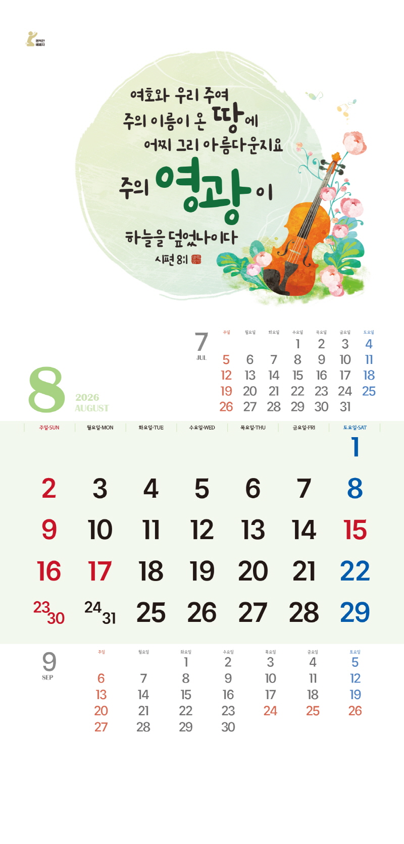 ◈본 캘린더에는 음력, 절후, 교회력이 표기되어 있습니다.