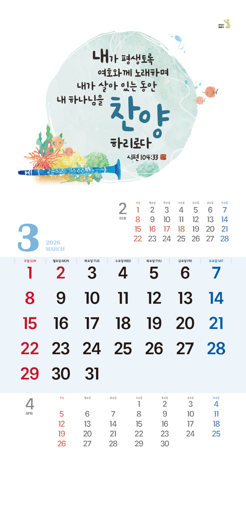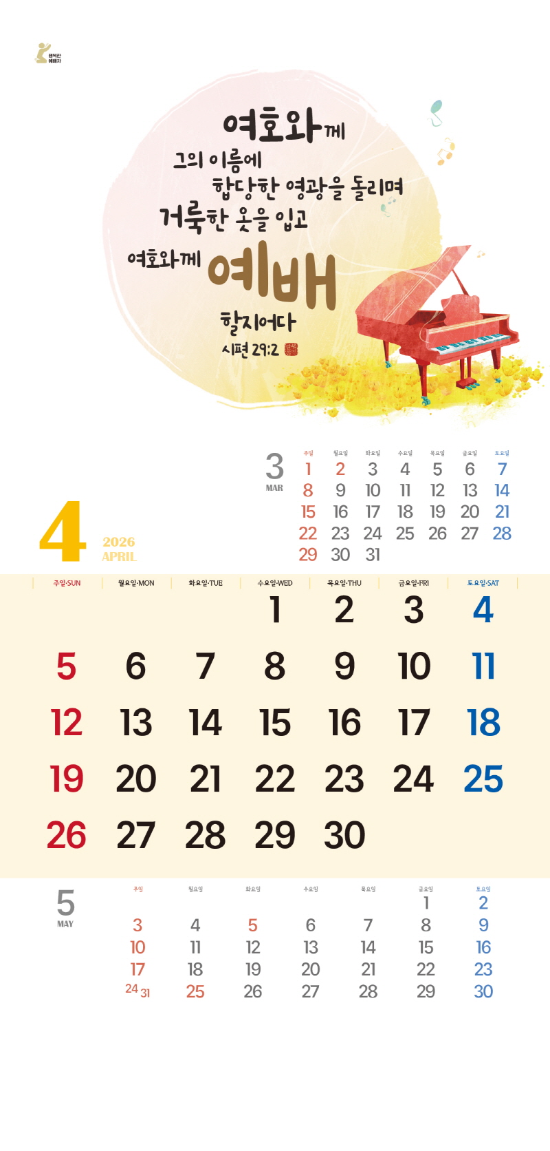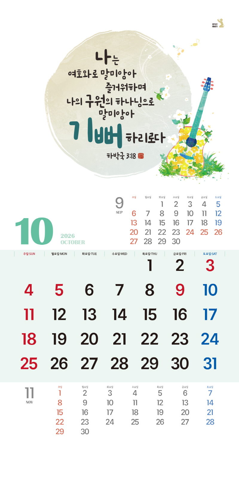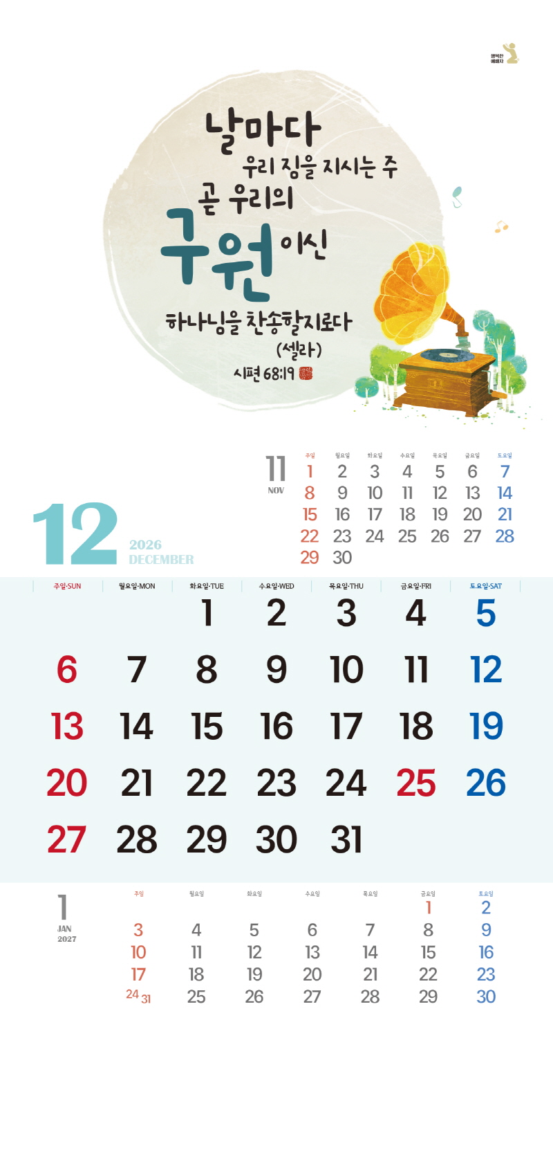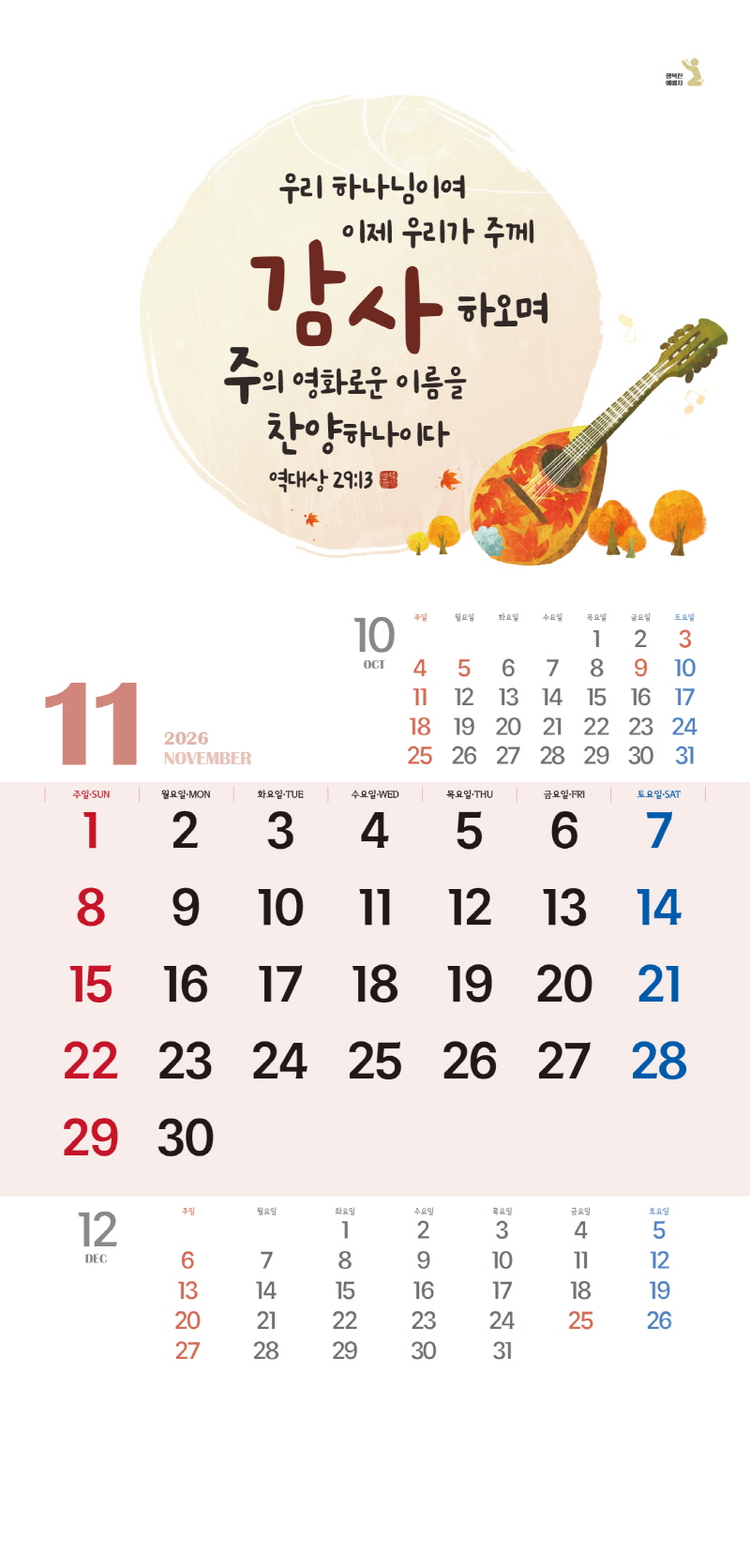 ◈본 캘린더에는 음력, 절후, 교회력이 표기되어 있습니다.
