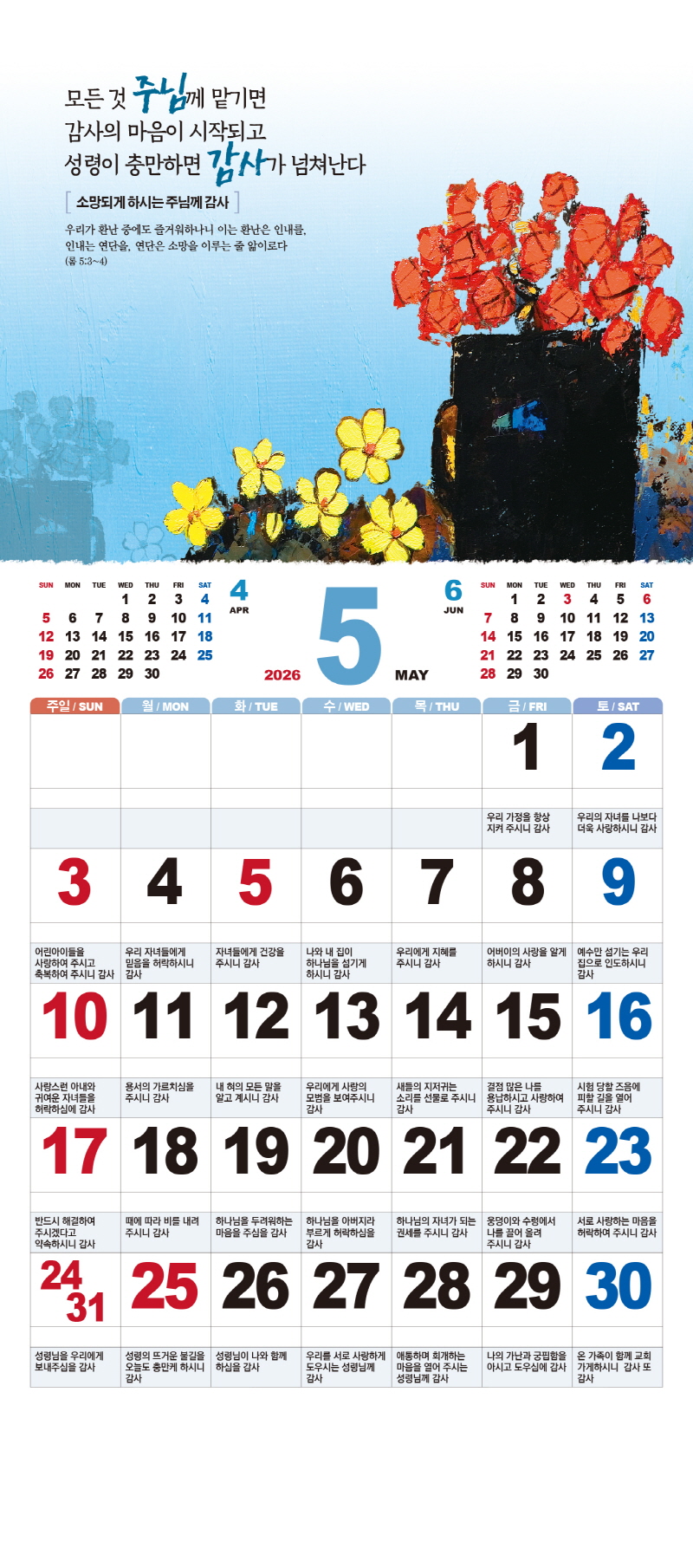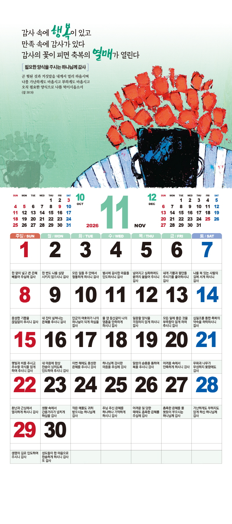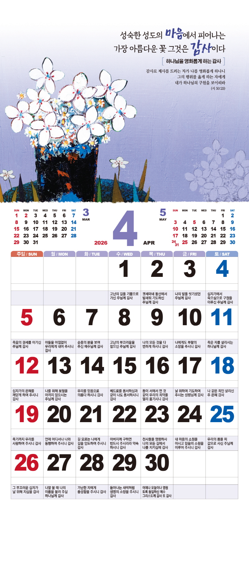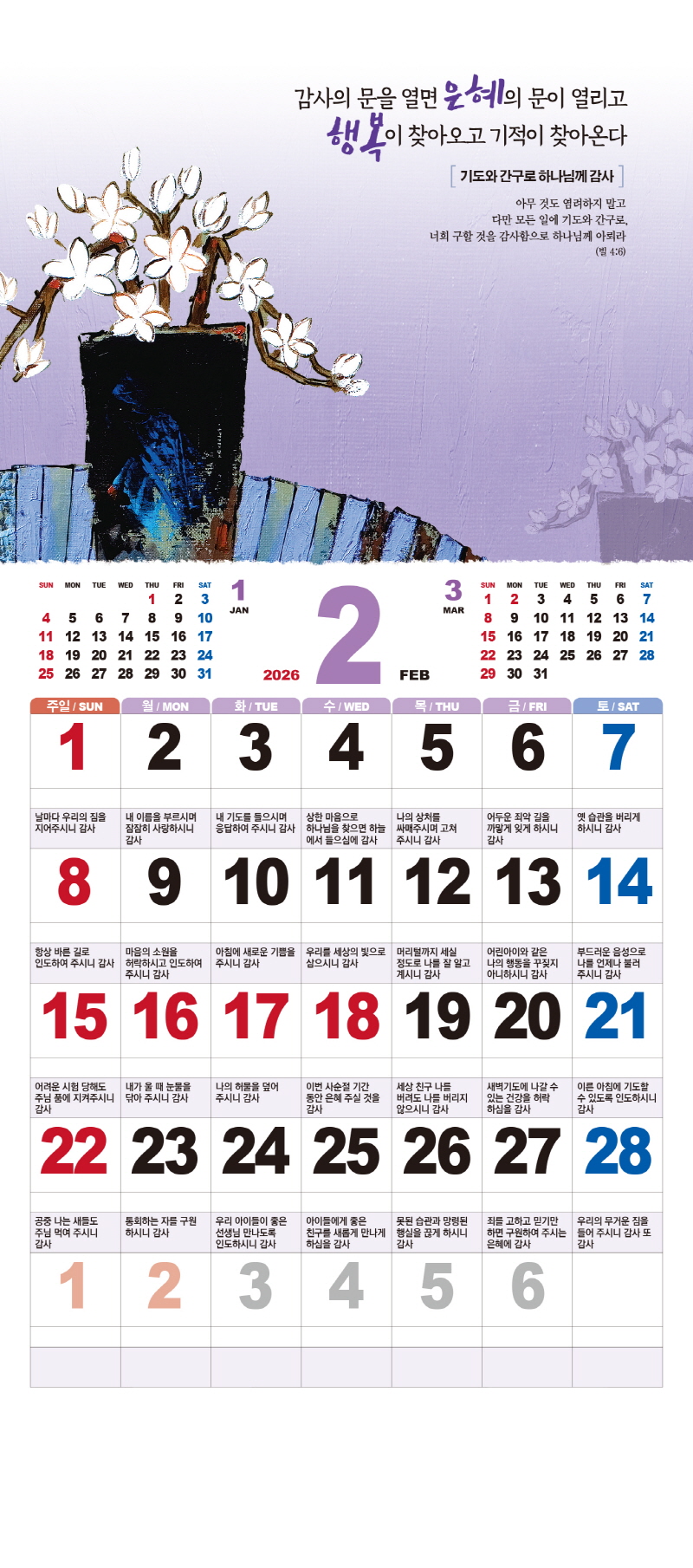◈본 캘린더에는 음력, 절후, 교회력이 표기되어 있습니다.
