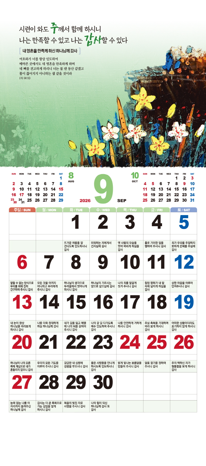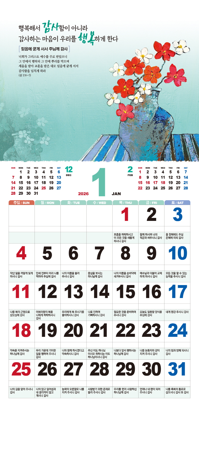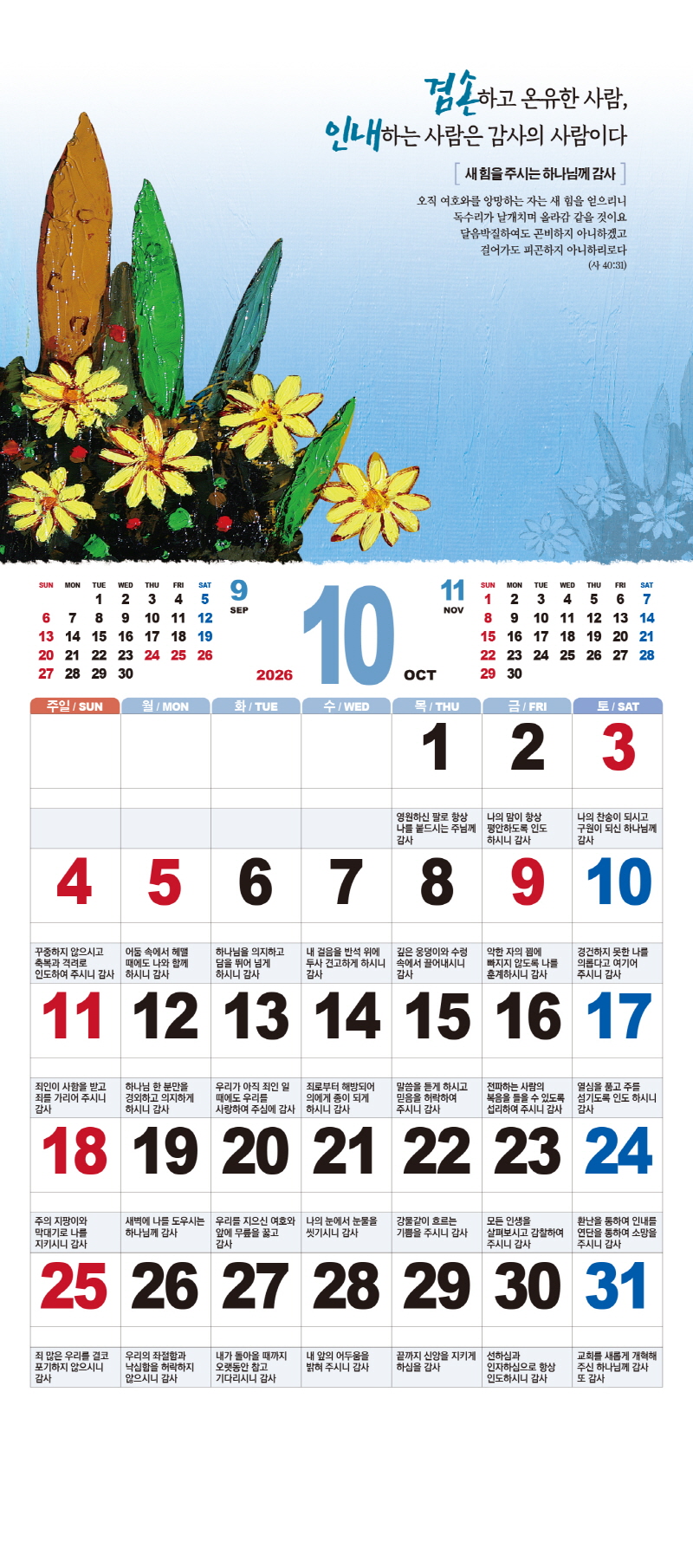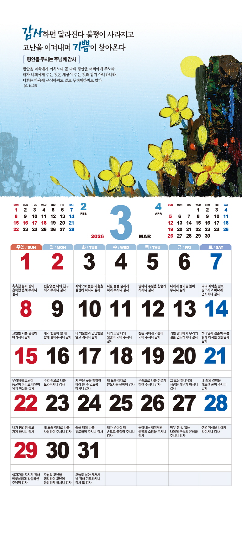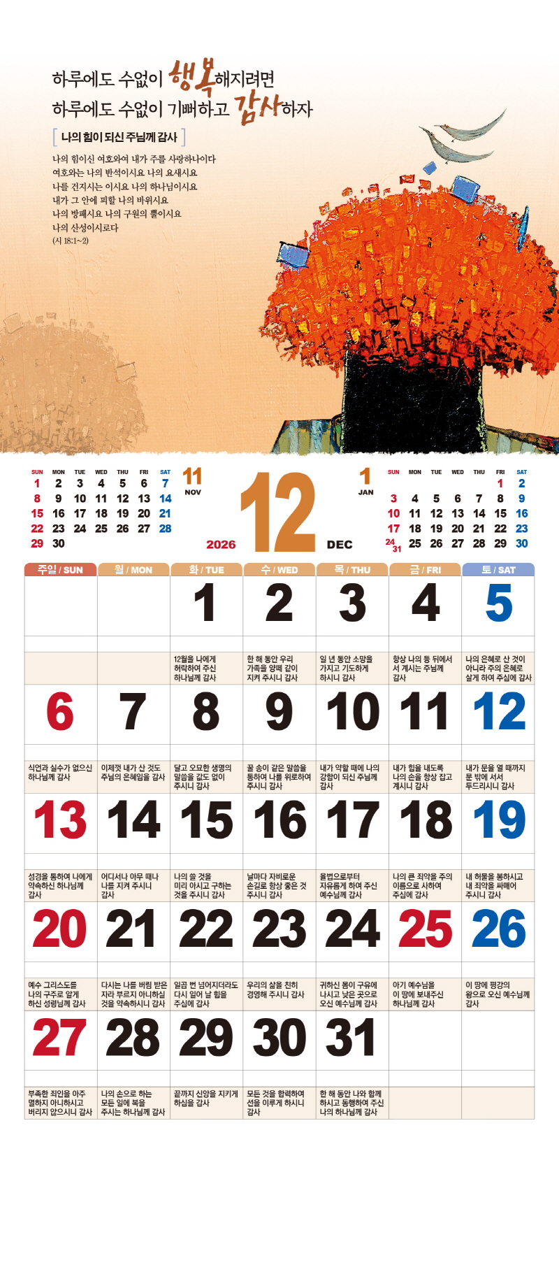 ◈본 캘린더에는 음력, 절후, 교회력이 표기되어 있습니다.