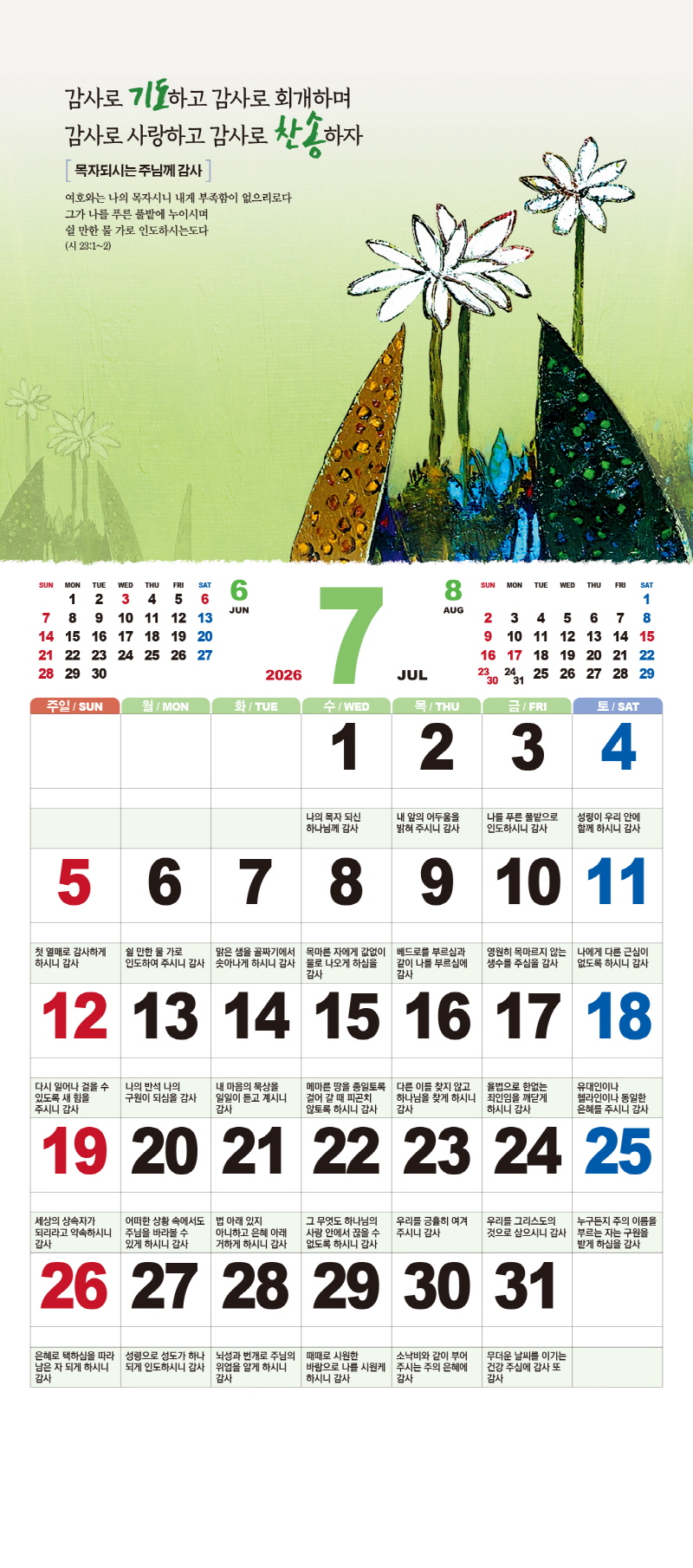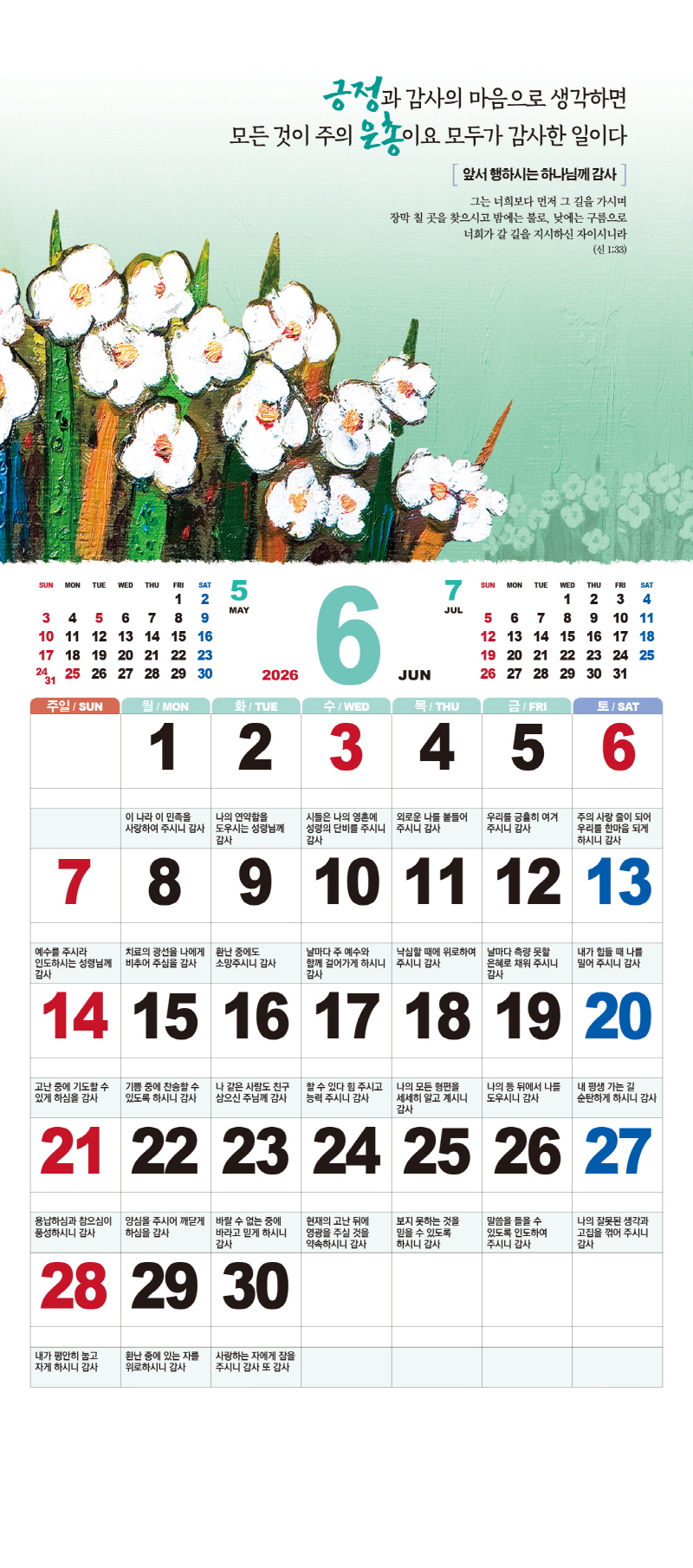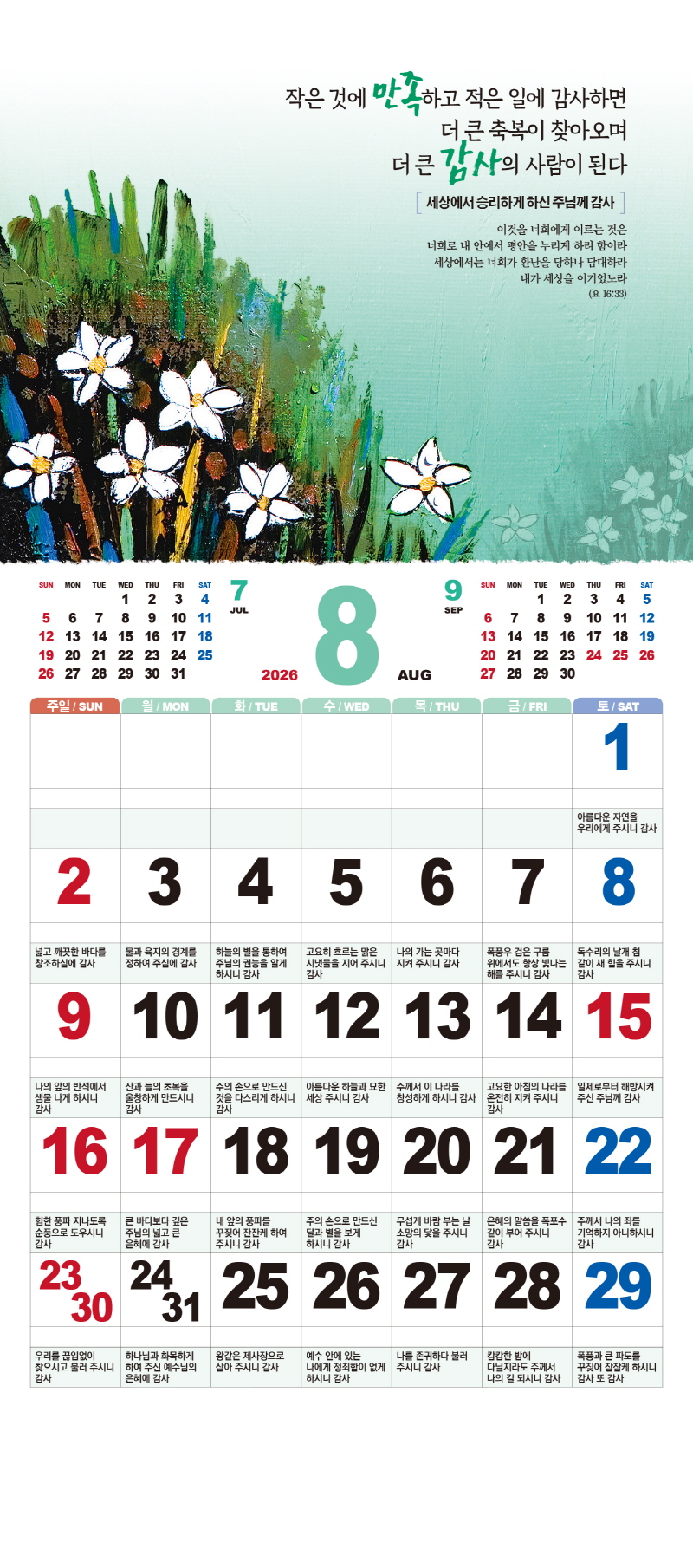 본 캘린더에는 음력, 절후, 교회력이 표기되어 있습니다.