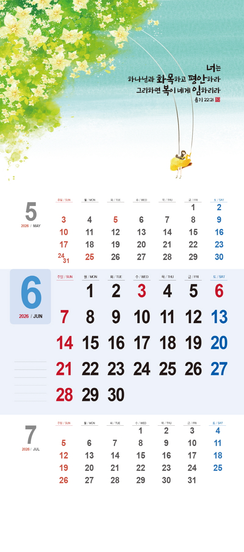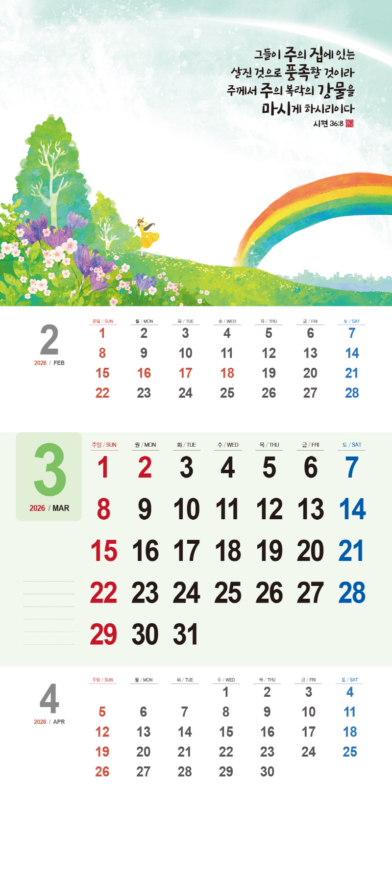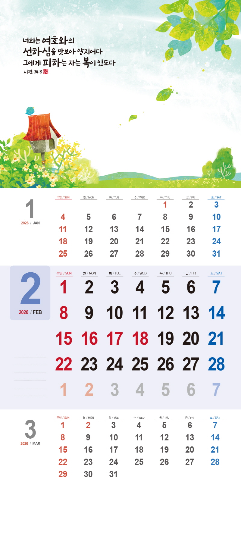 ◈본 캘린더에는 음력, 절후, 교회력이 표기되어 있습니다.