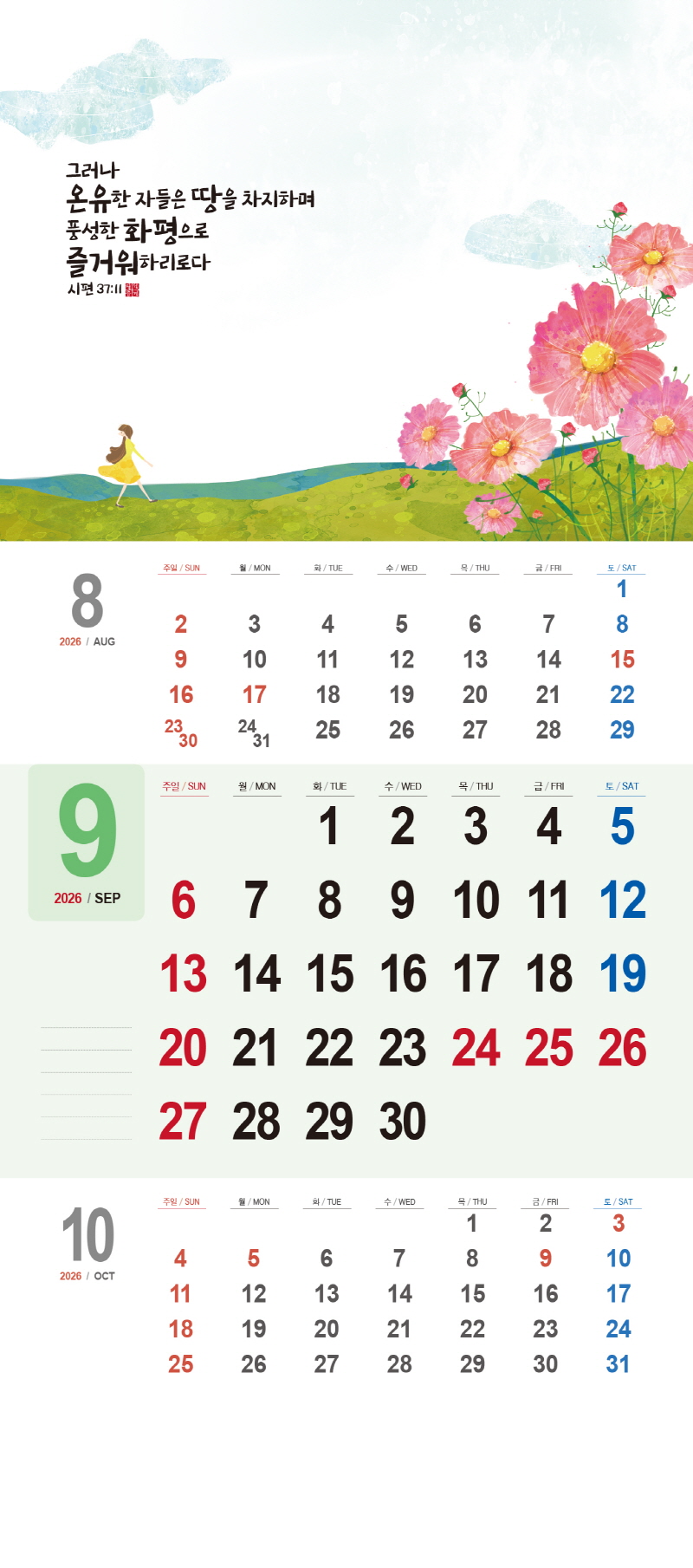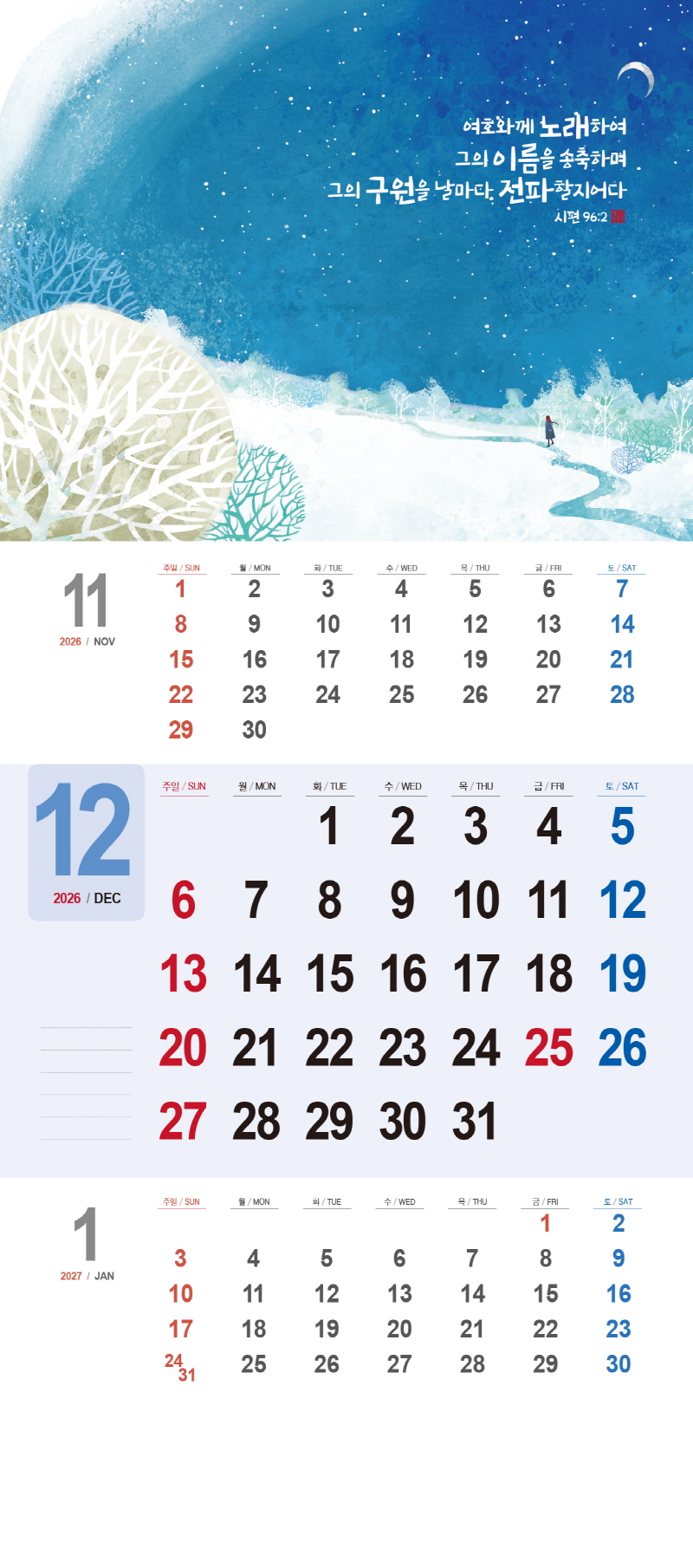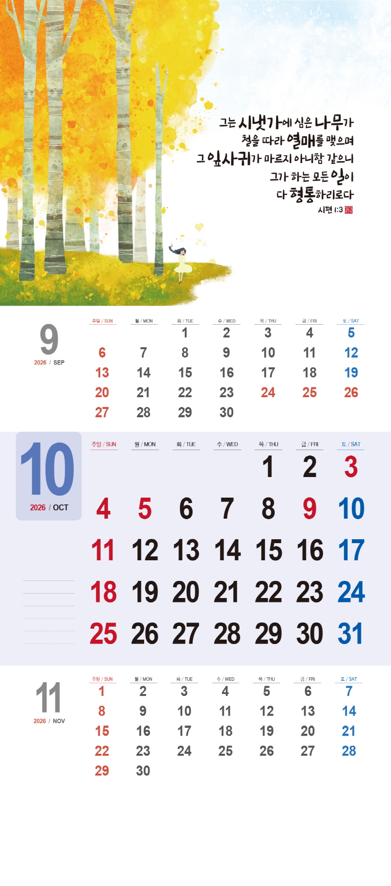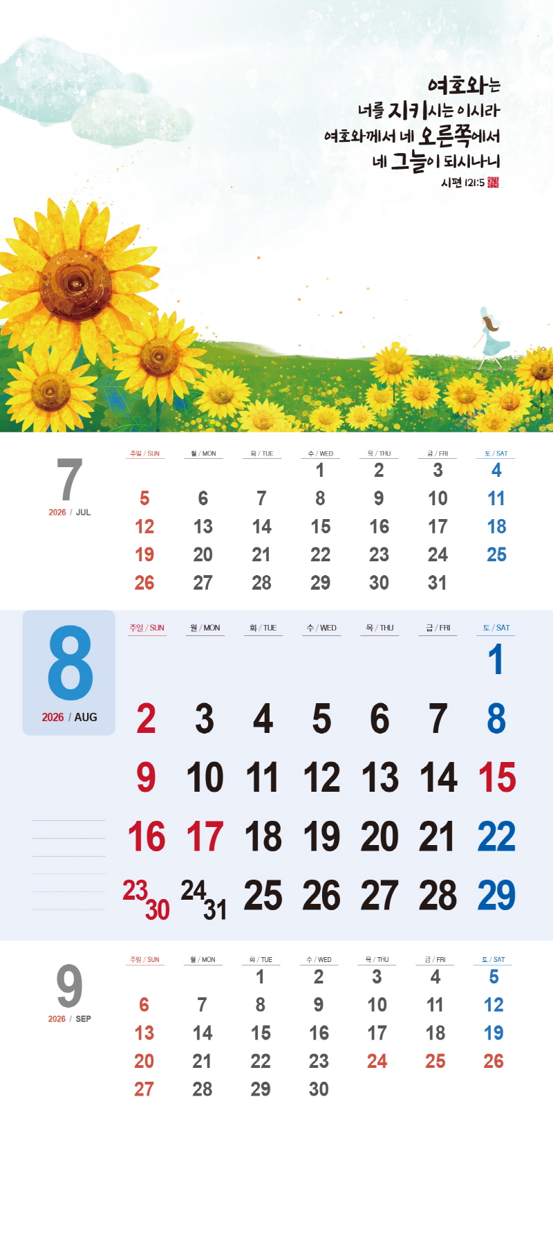 ◈본 캘린더에는 음력, 절후, 교회력이 표기되어 있습니다.