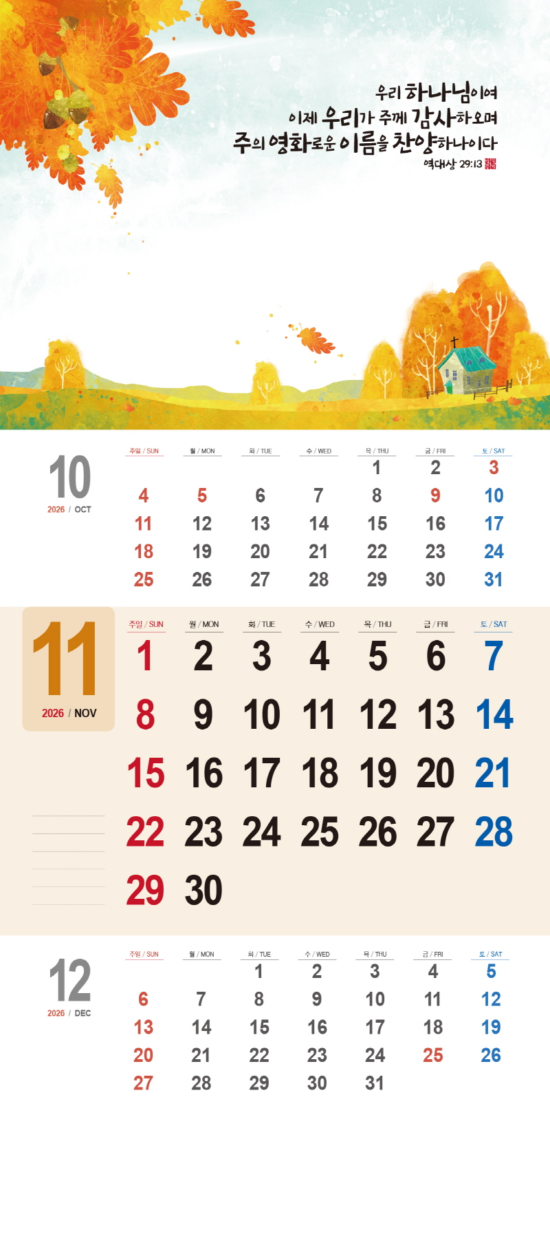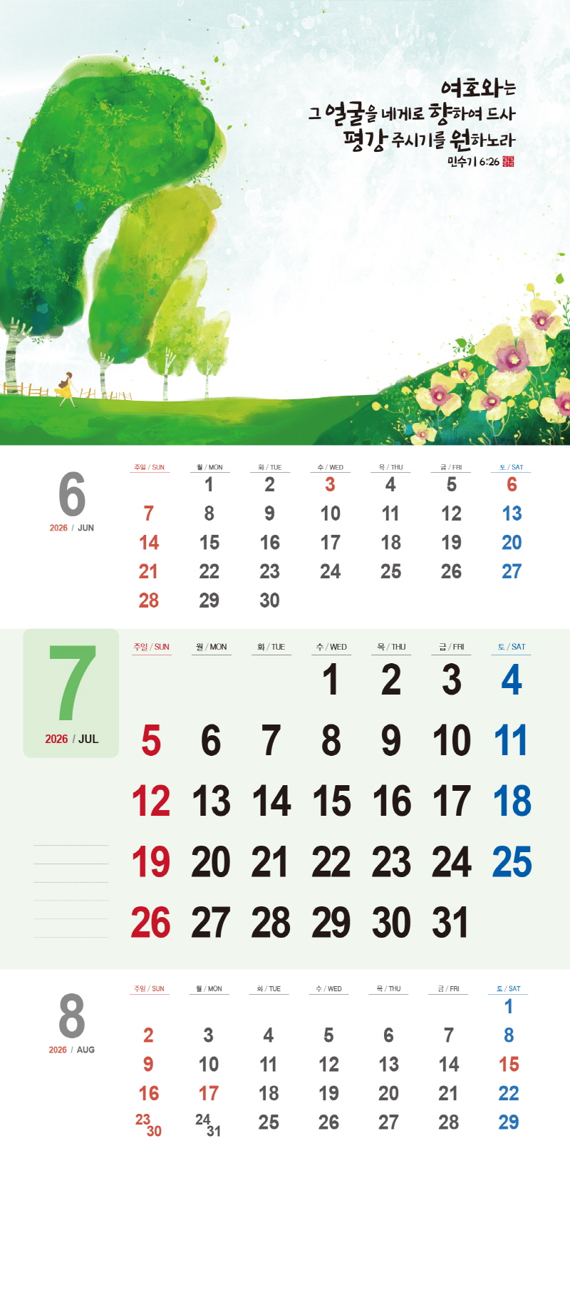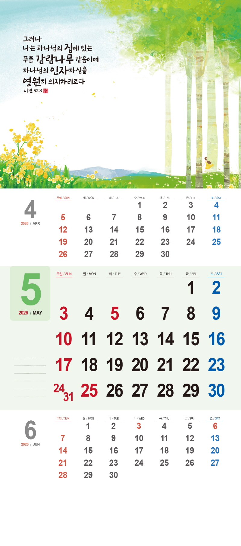 본 캘린더에는 음력, 절후, 교회력이 표기되어 있습니다.