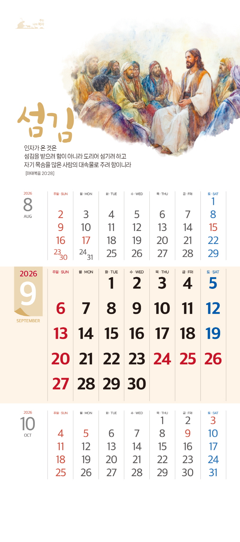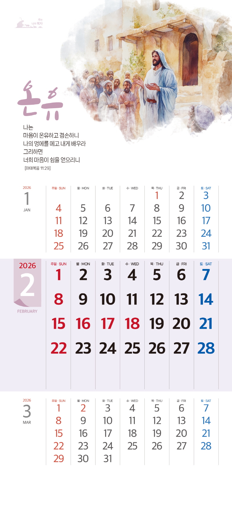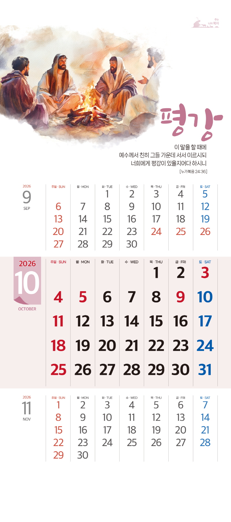 ◈본 캘린더에는 음력, 절후, 교회력이 표기되어 있습니다.