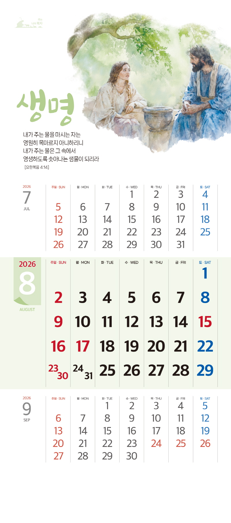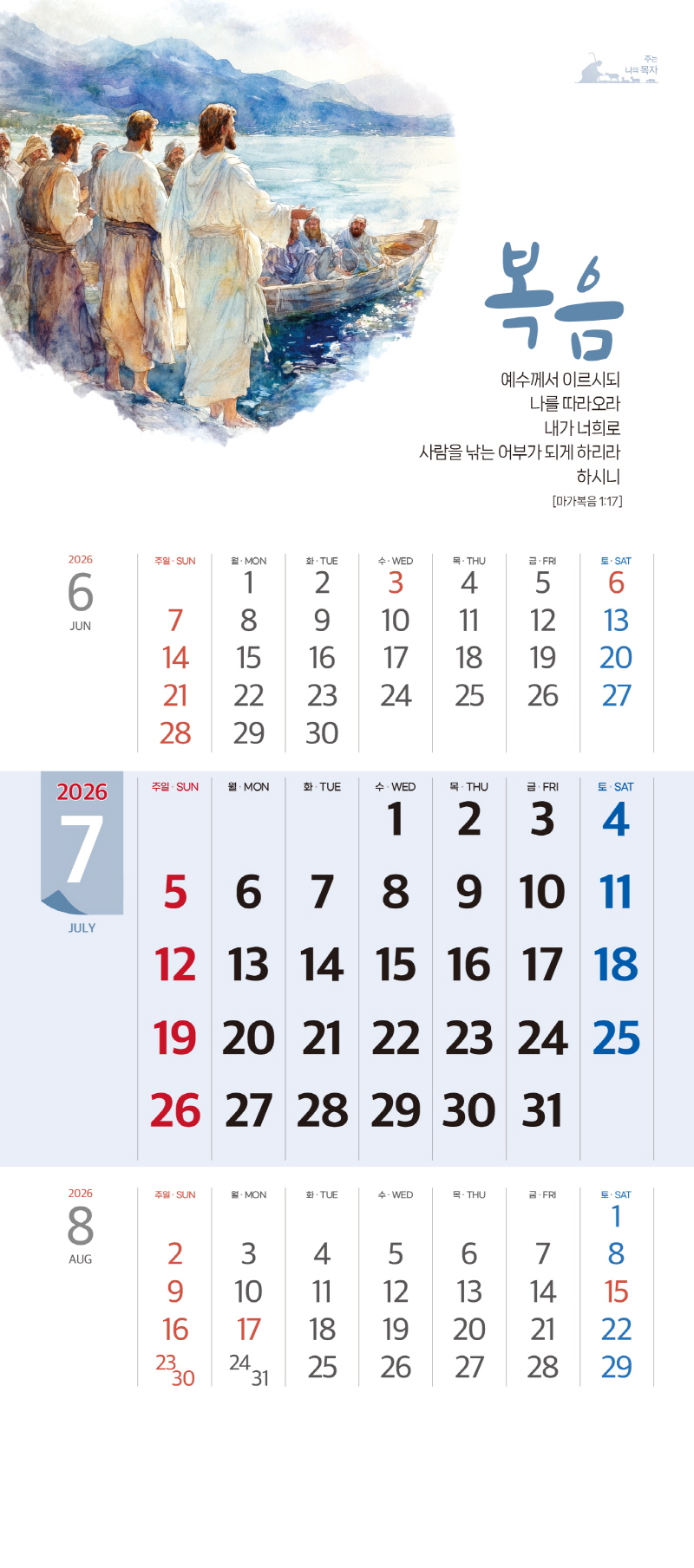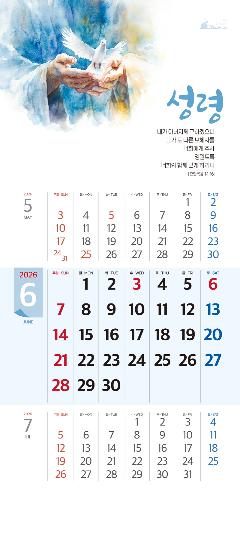 본 캘린더에는 음력, 절후, 교회력이 표기되어 있습니다.