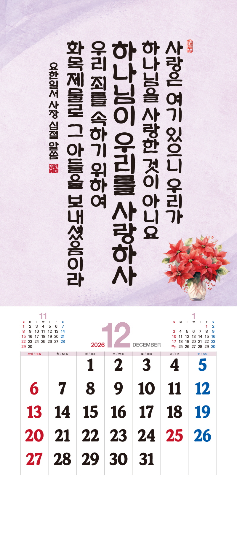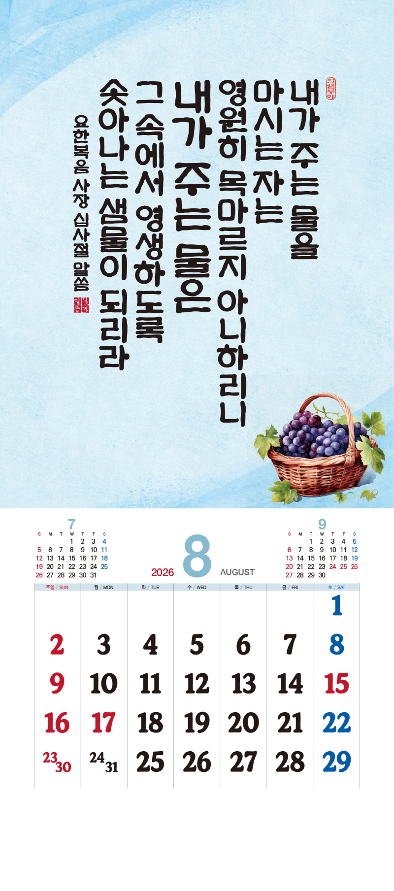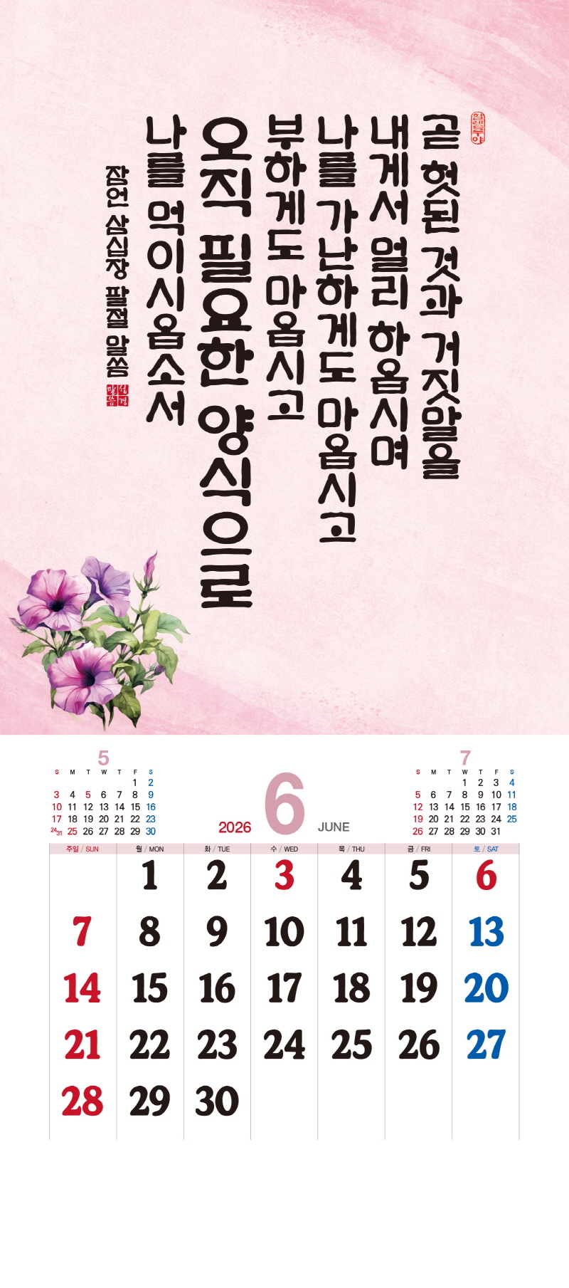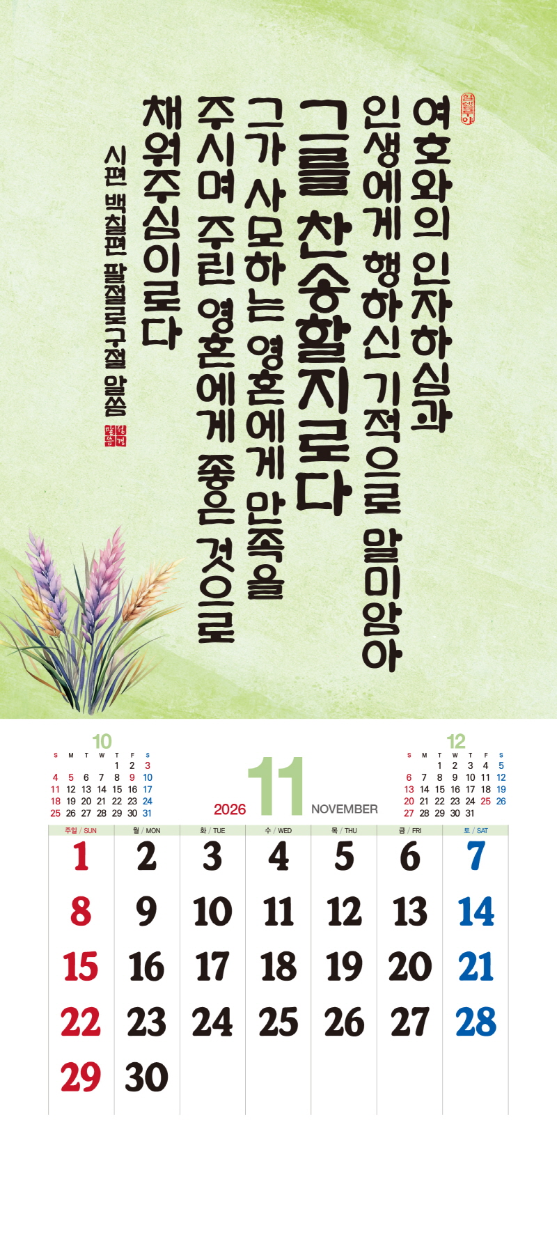 본 캘린더에는 음력, 절후, 교회력이 표기되어 있습니다.