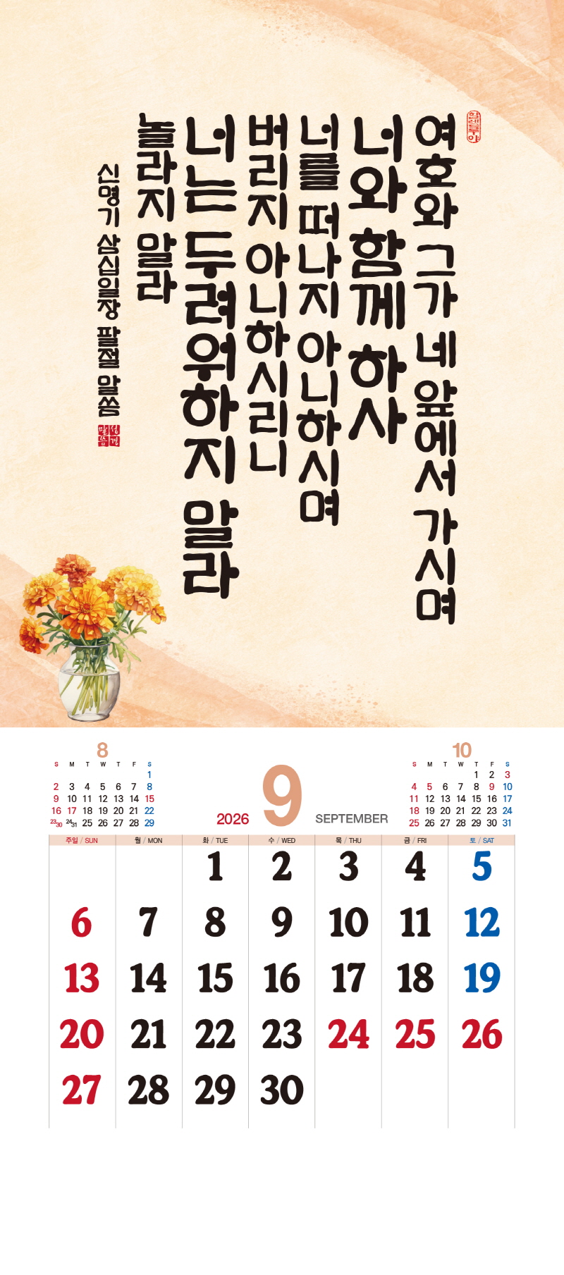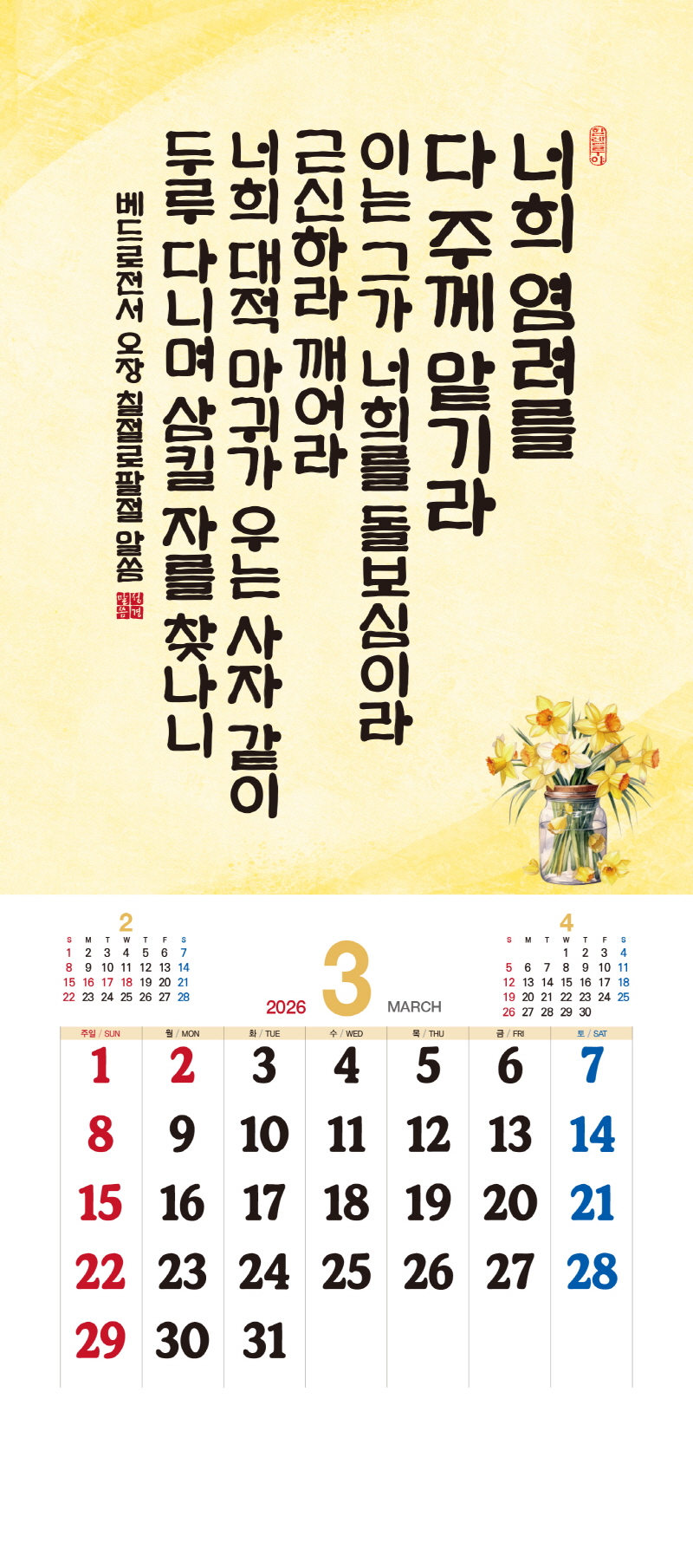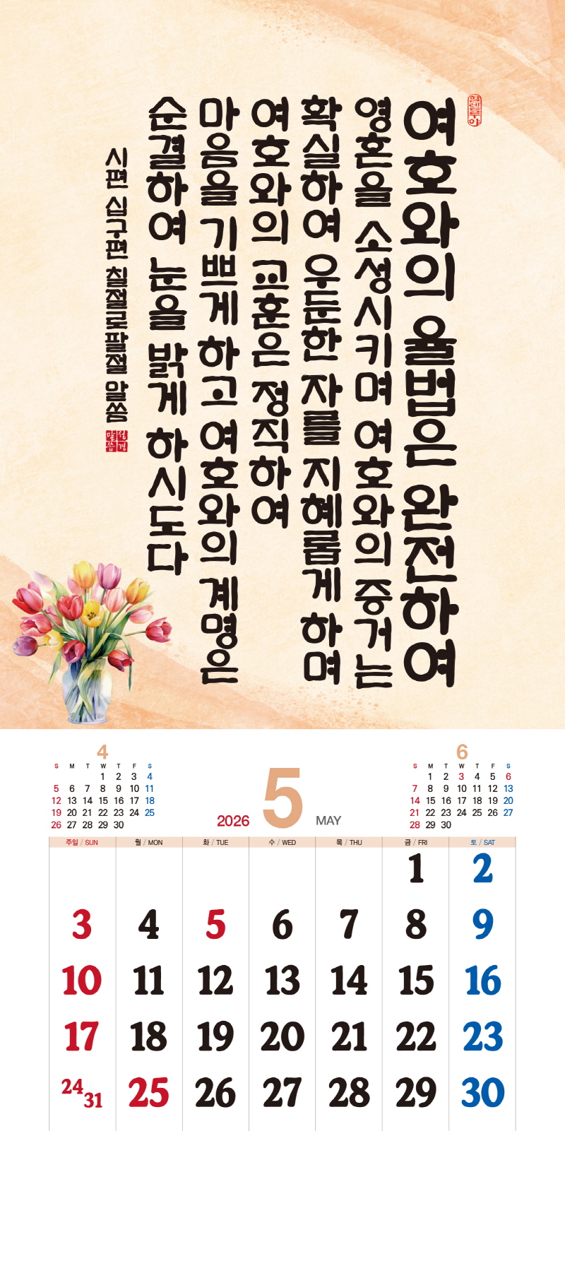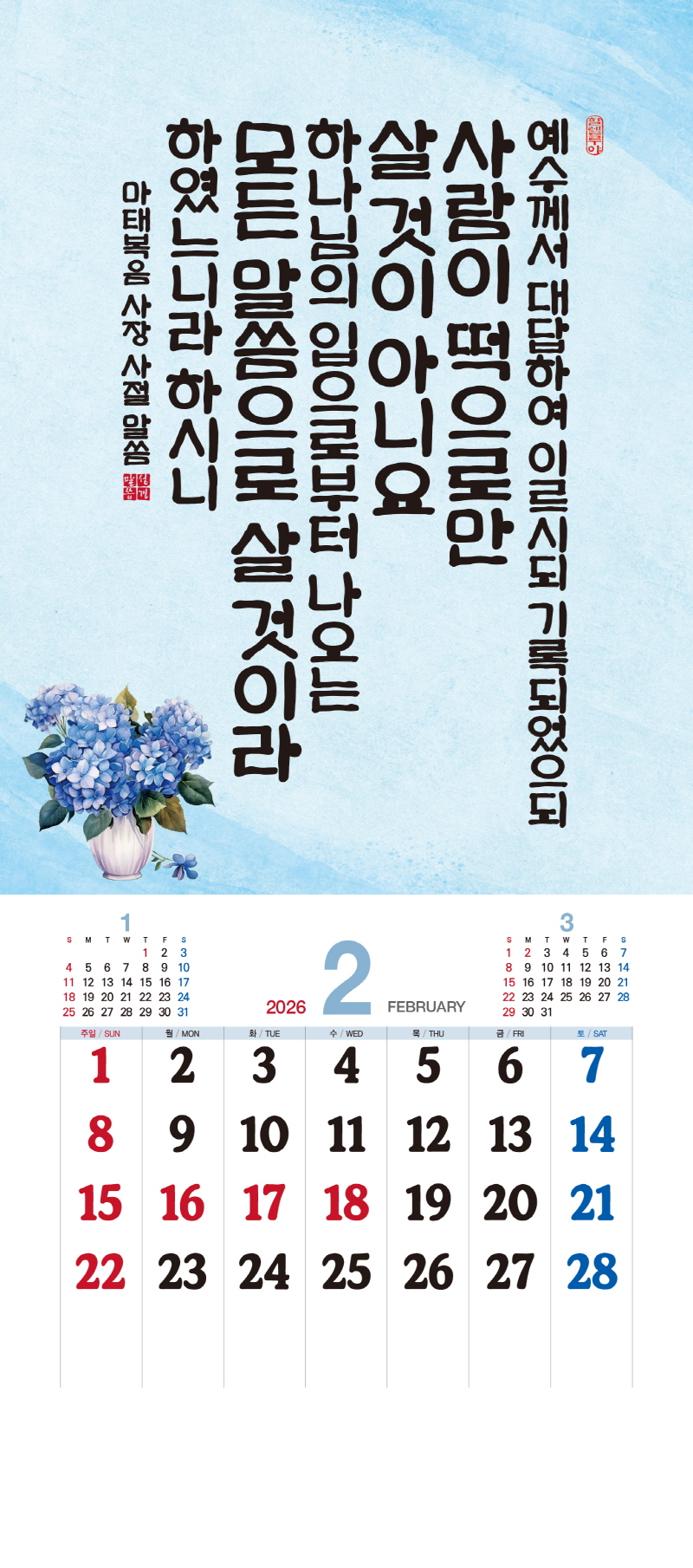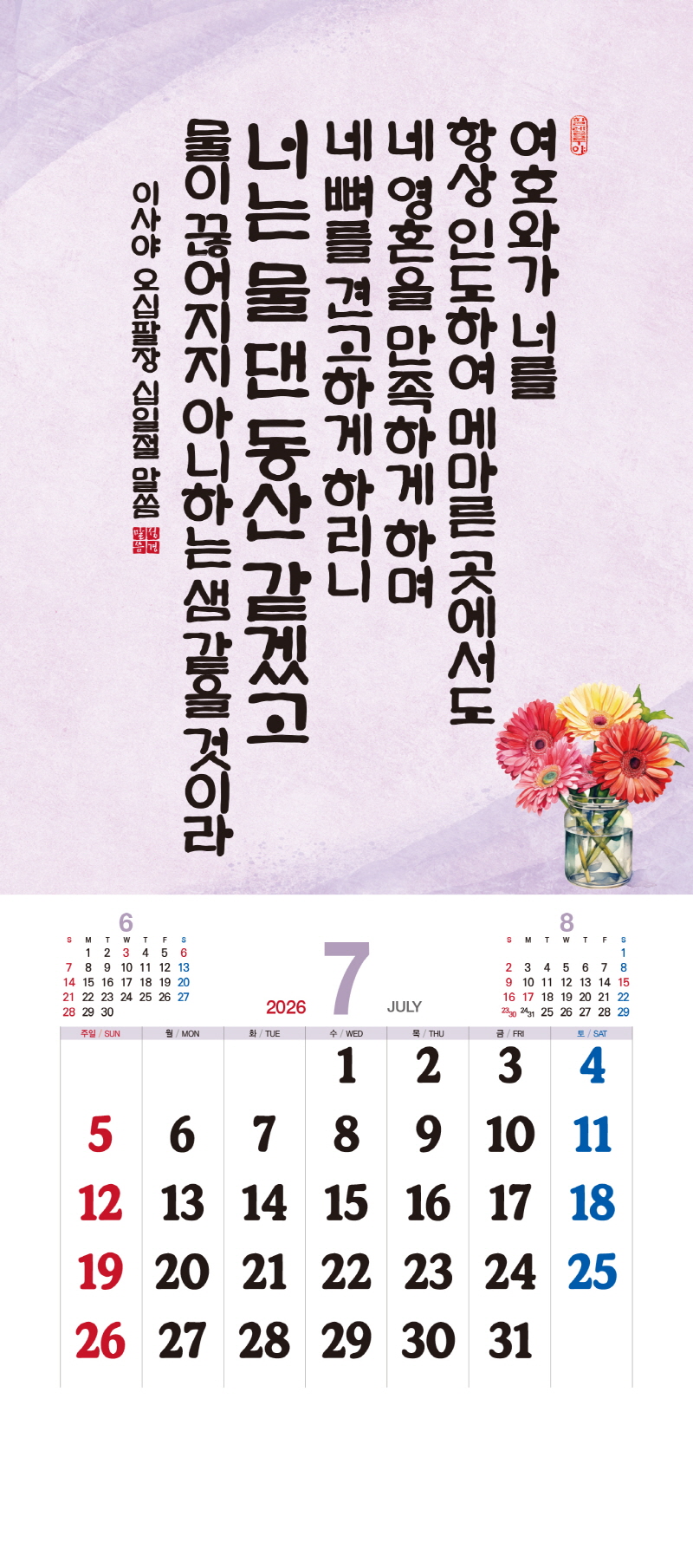 본 캘린더에는 음력, 절후, 교회력이 표기되어 있습니다.