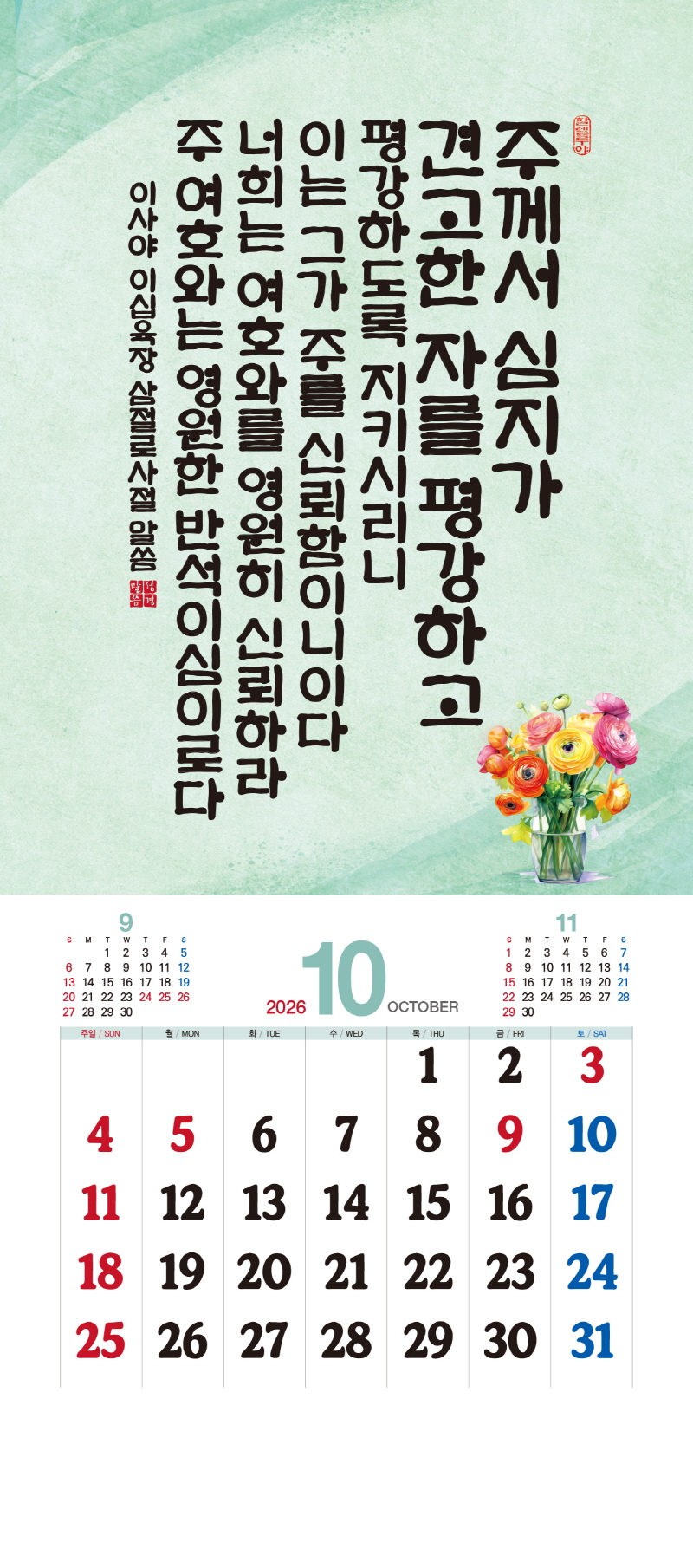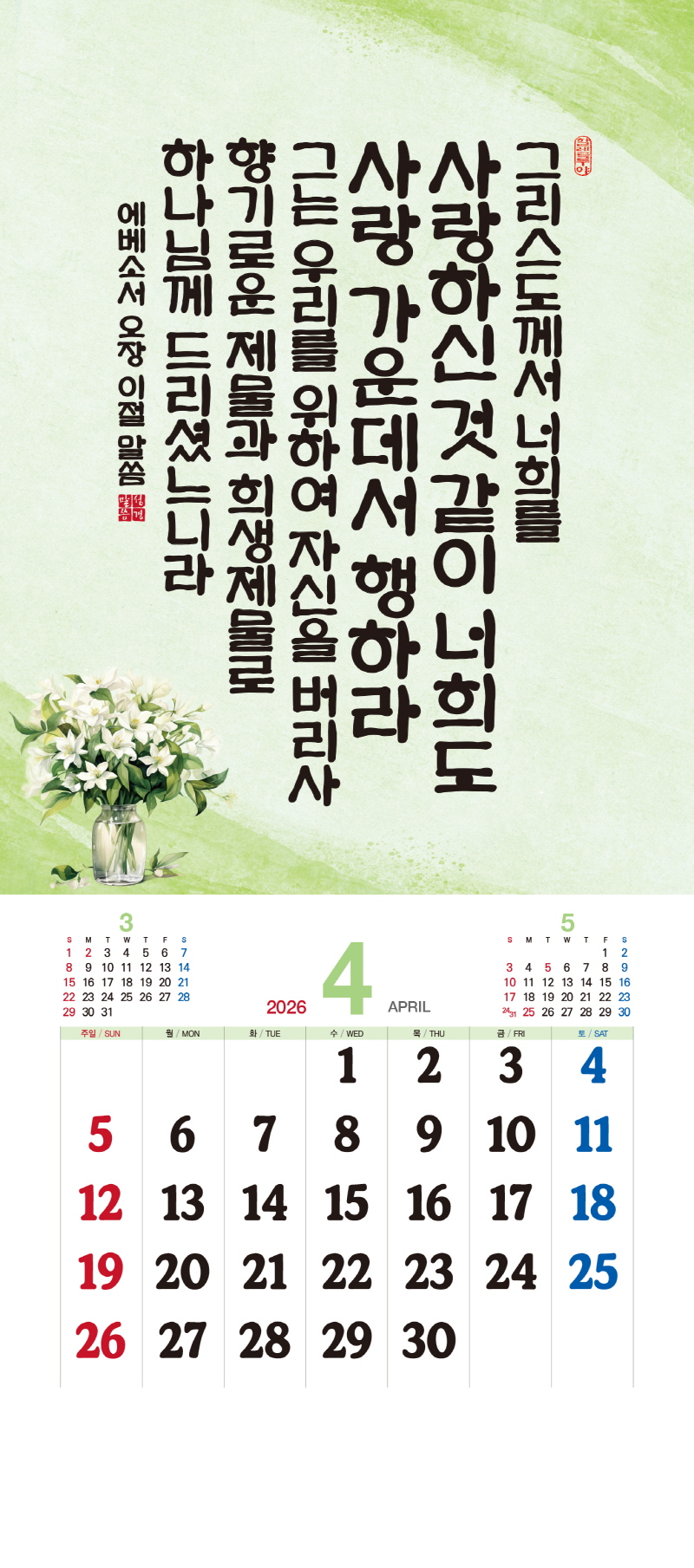 ◈본 캘린더에는 음력, 절후, 교회력이 표기되어 있습니다.