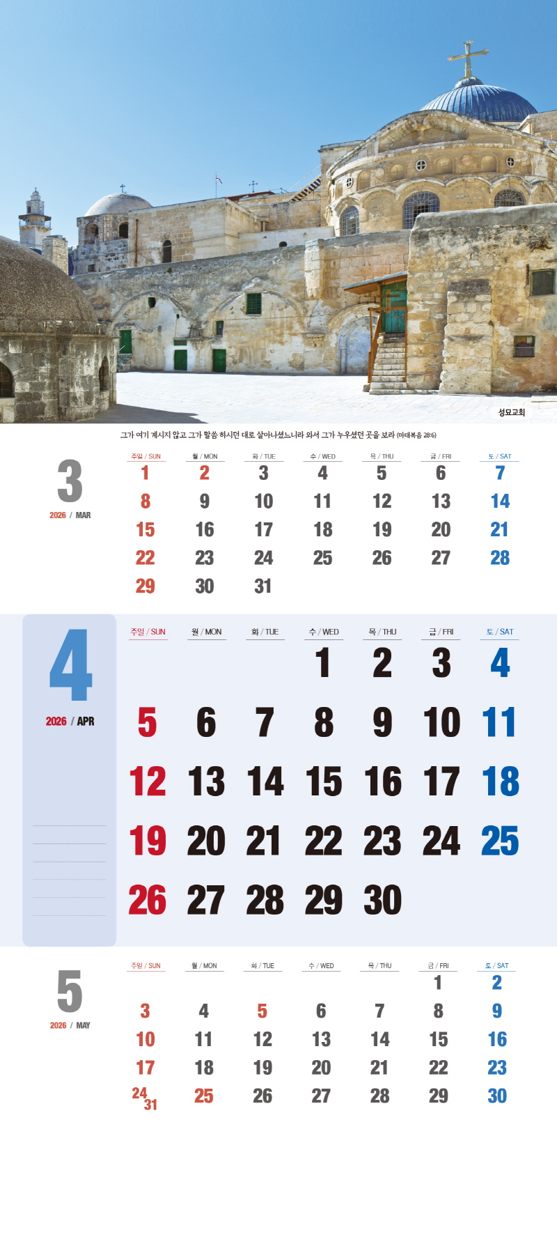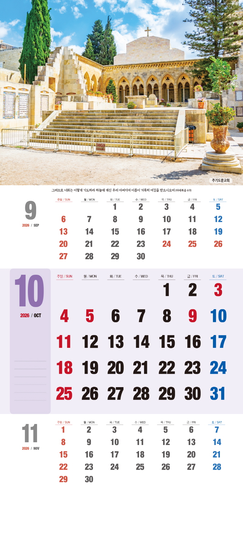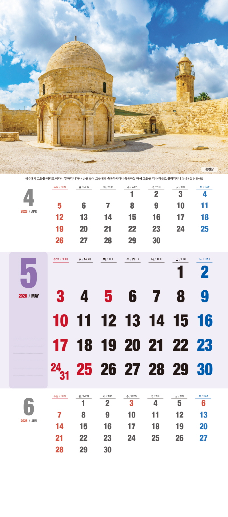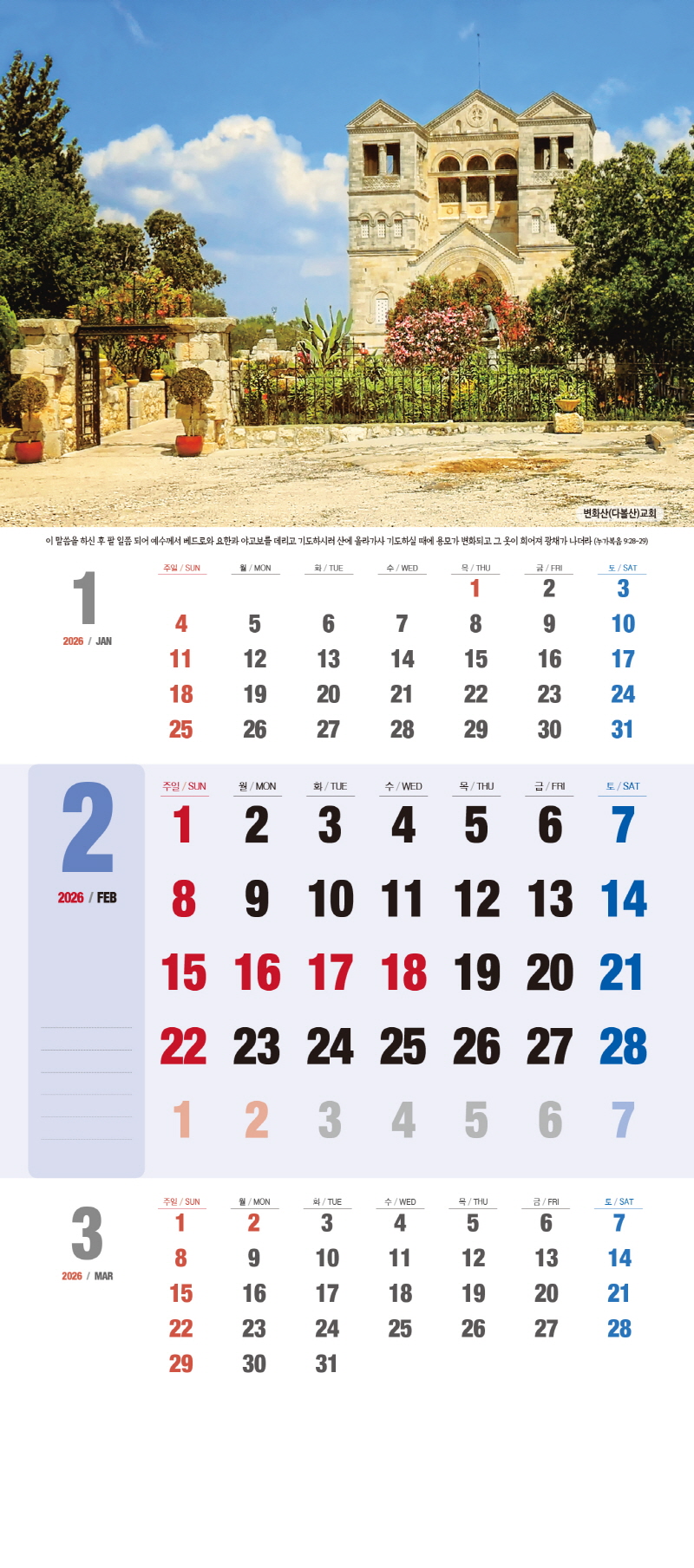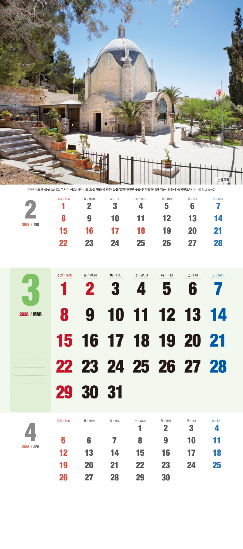 ◈본 캘린더에는 음력, 절후, 교회력이 표기되어 있습니다.