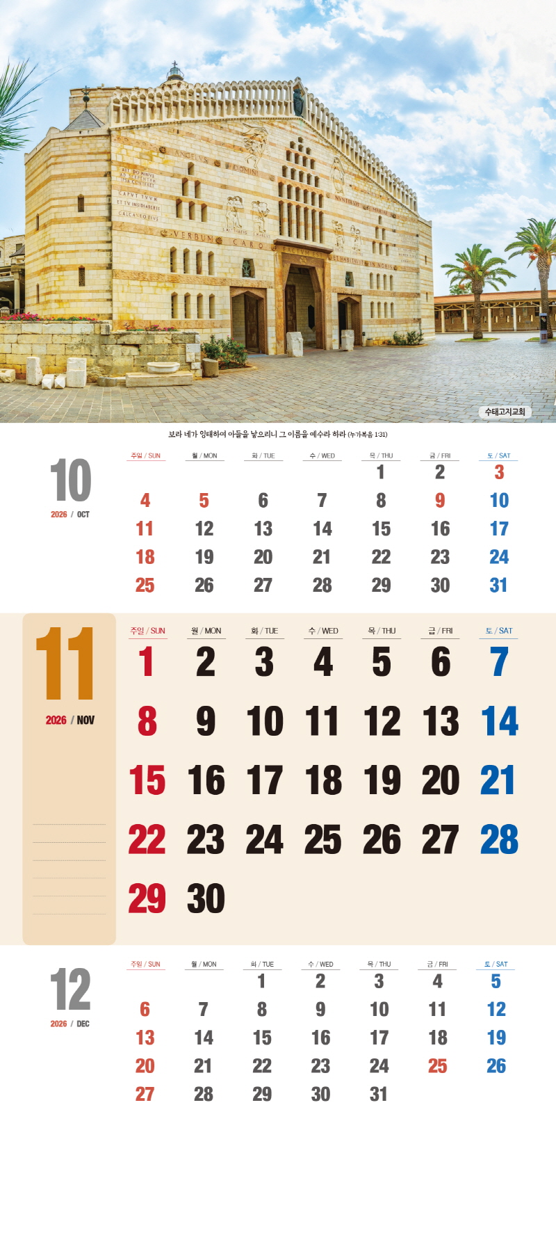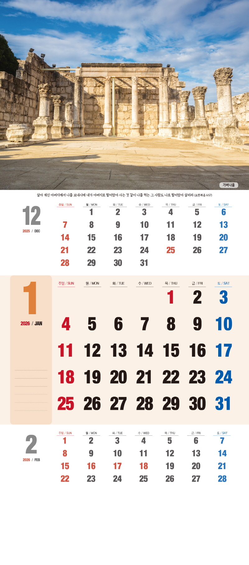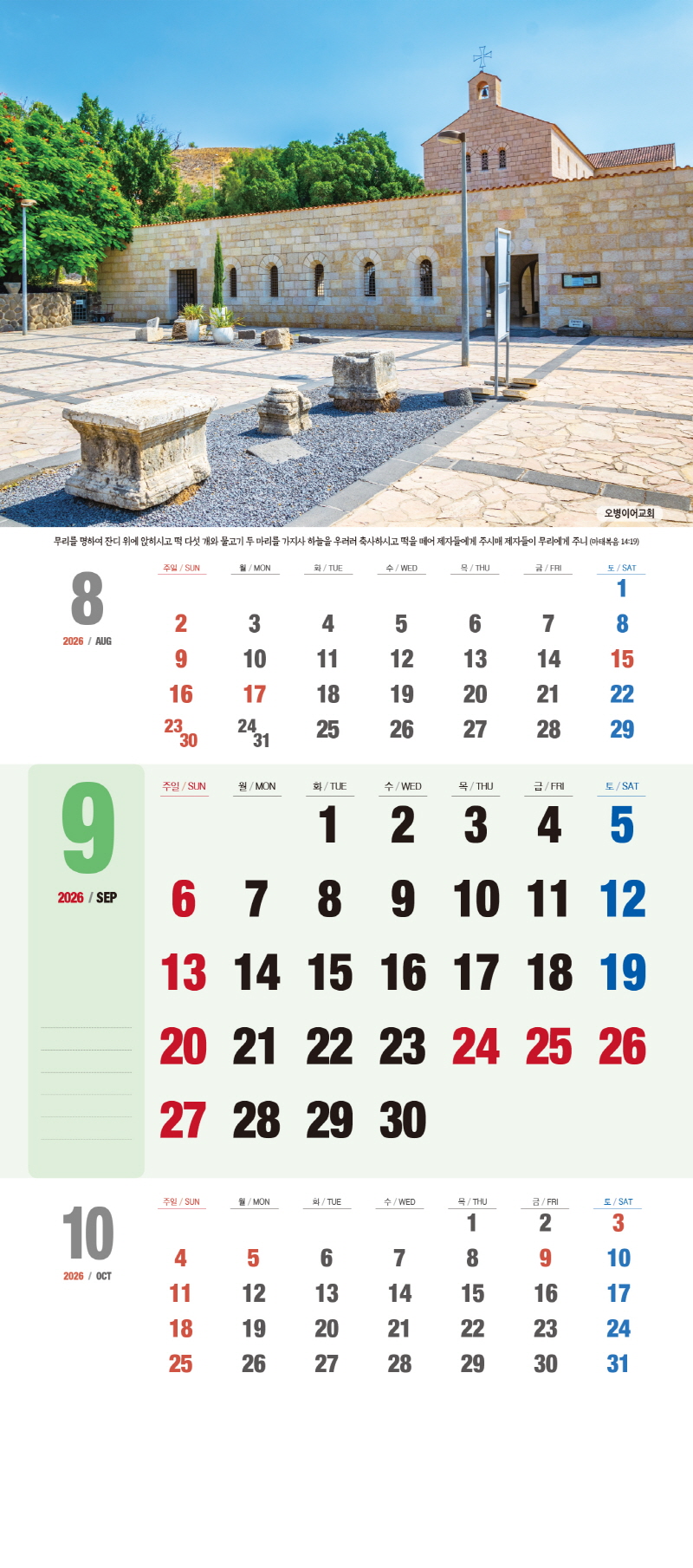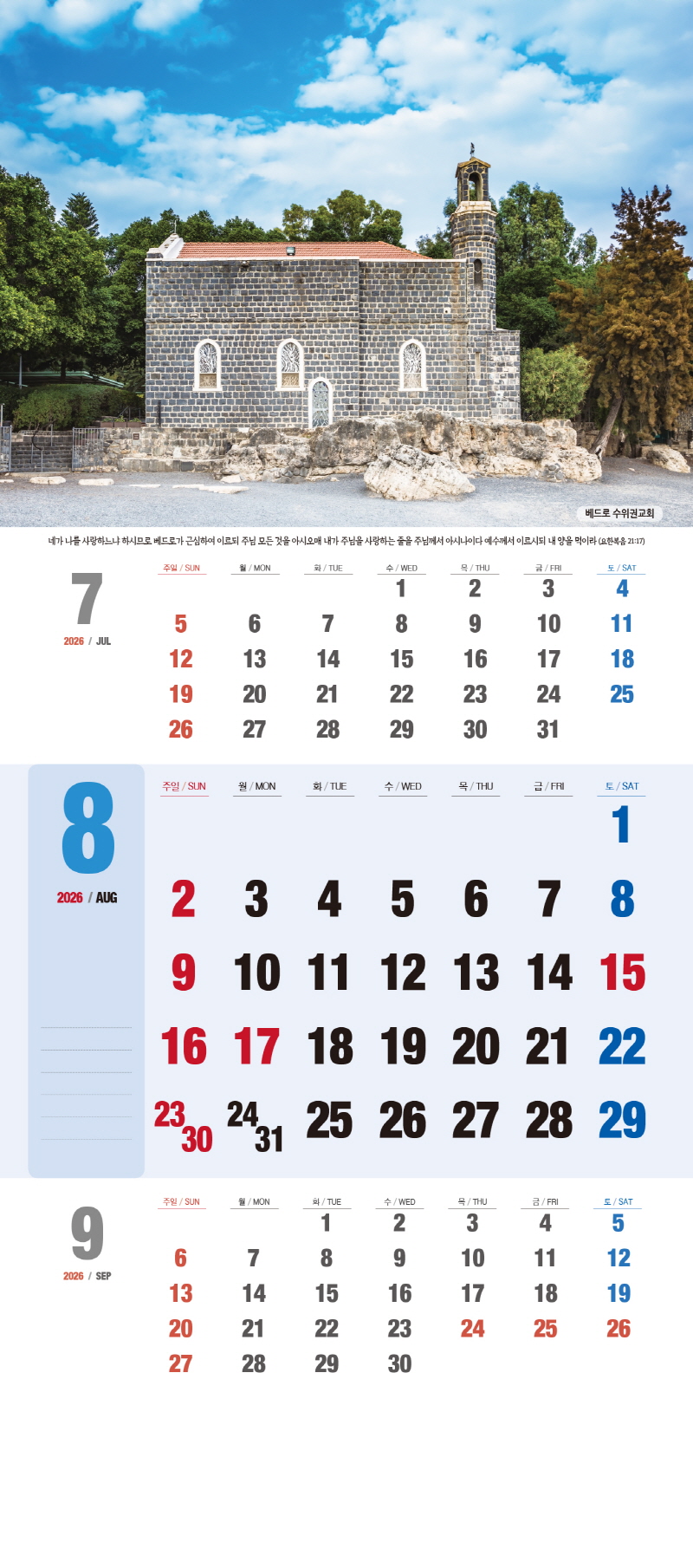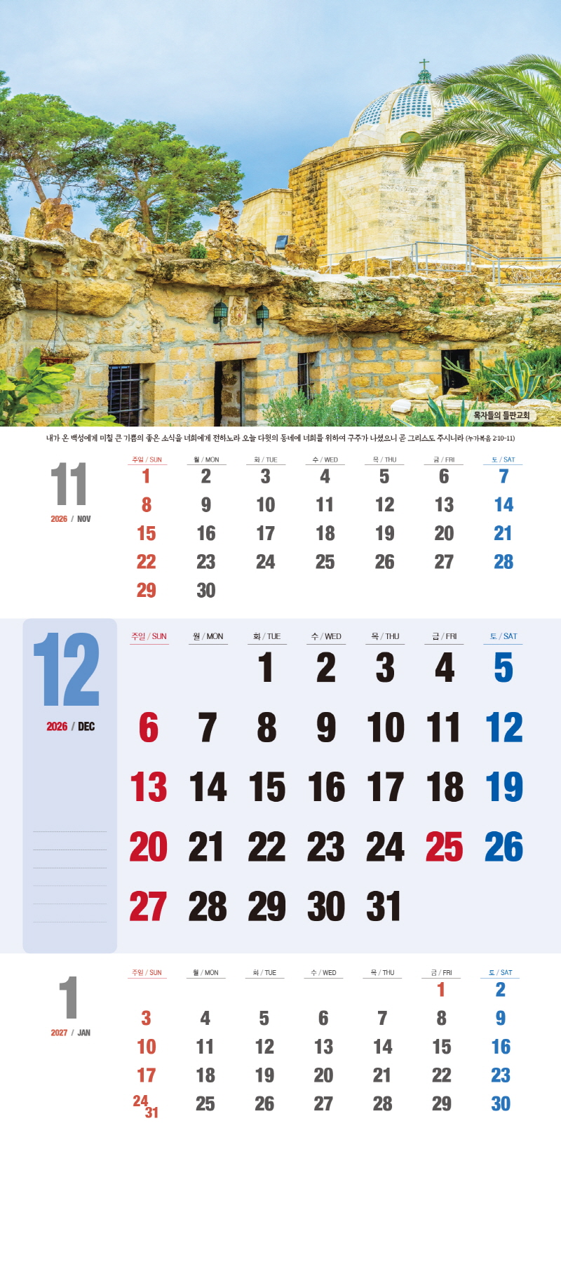 ◈본 캘린더에는 음력, 절후, 교회력이 표기되어 있습니다.