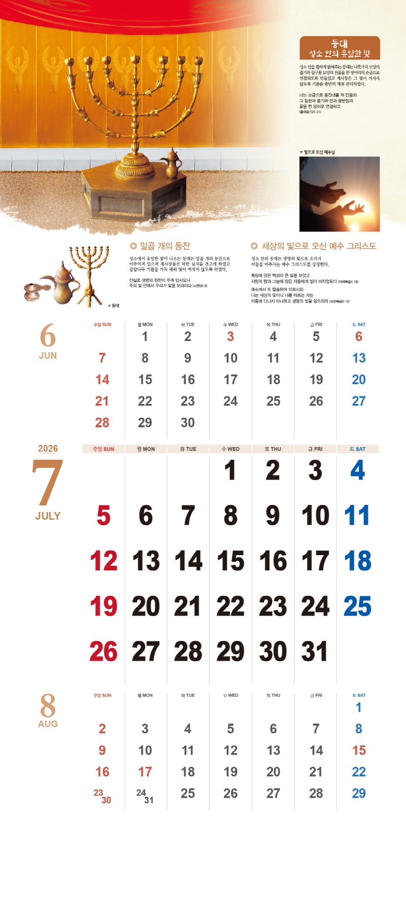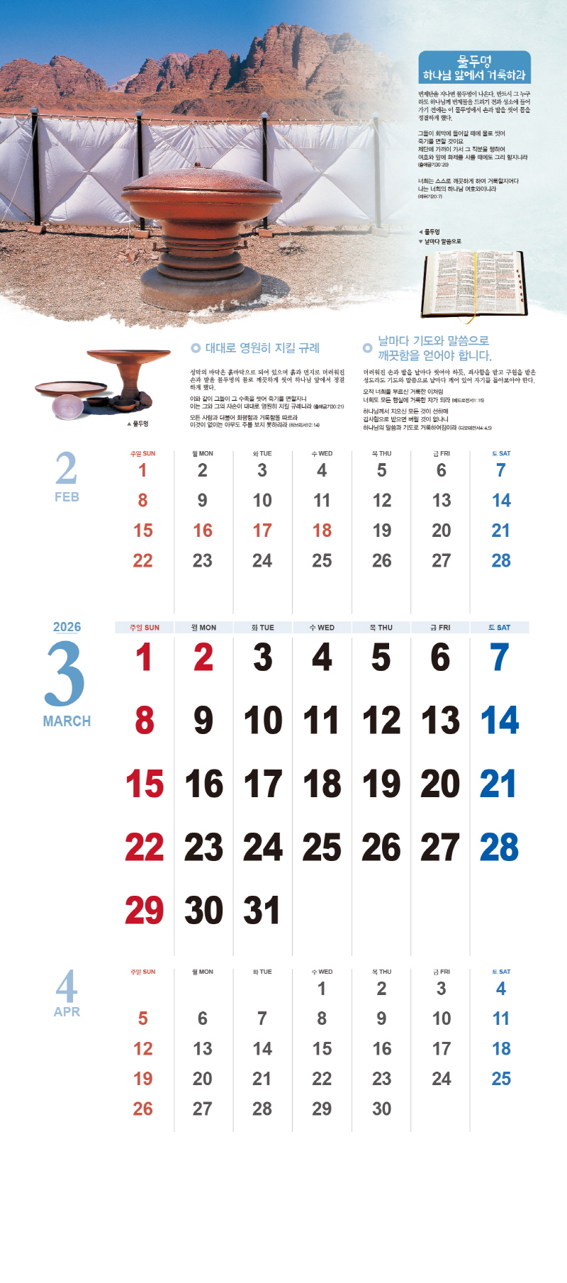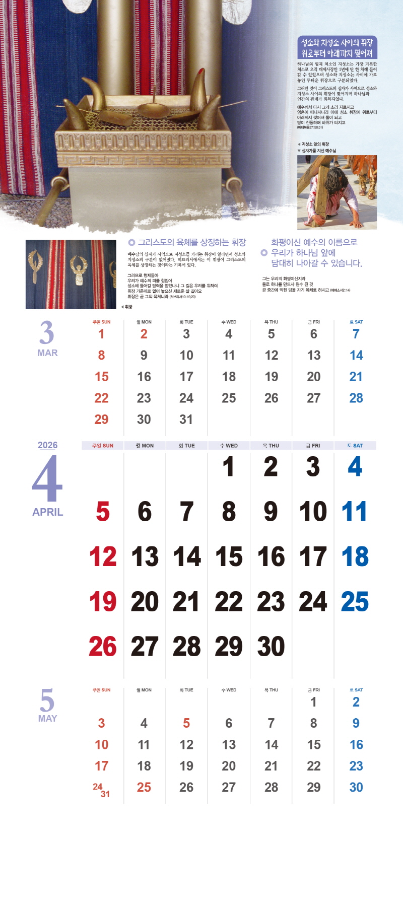 ◈본 캘린더에는 음력, 절후, 교회력이 표기되어 있습니다.
