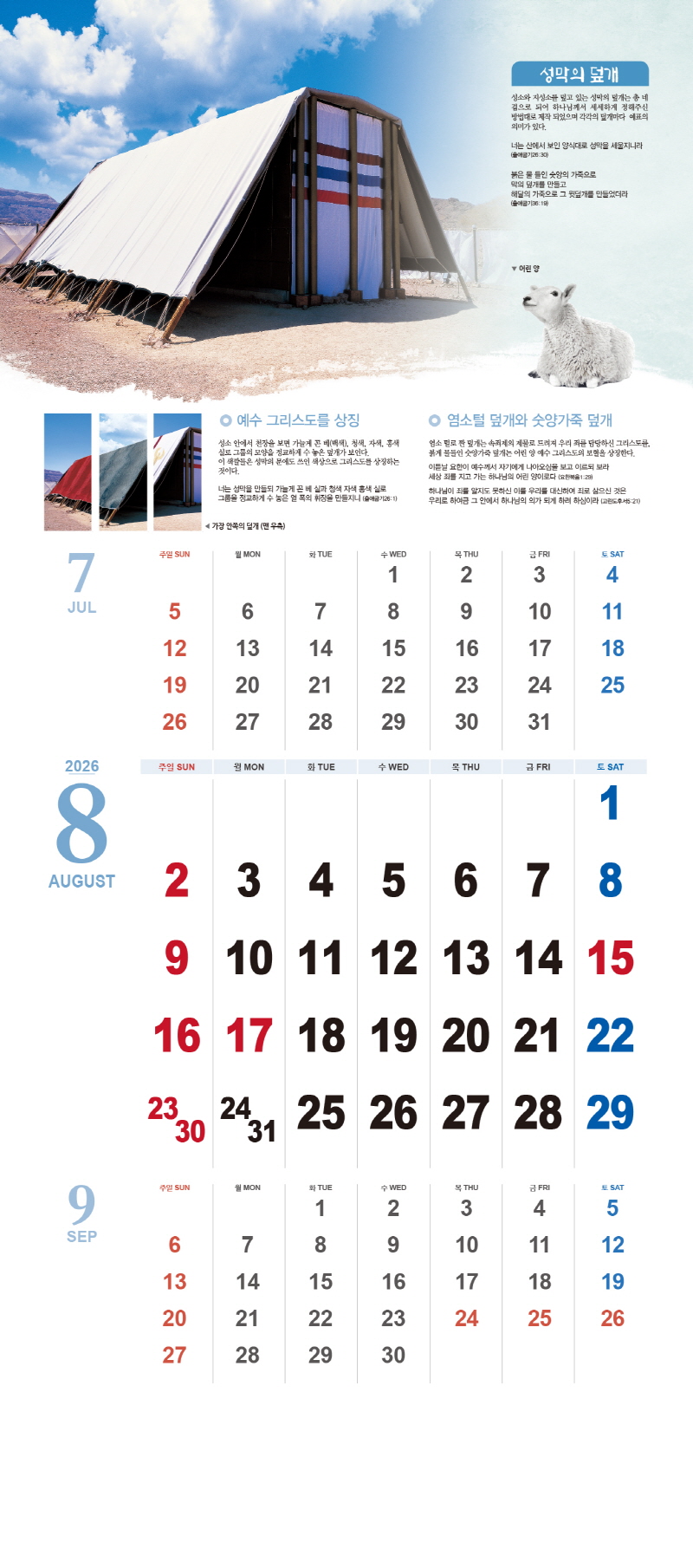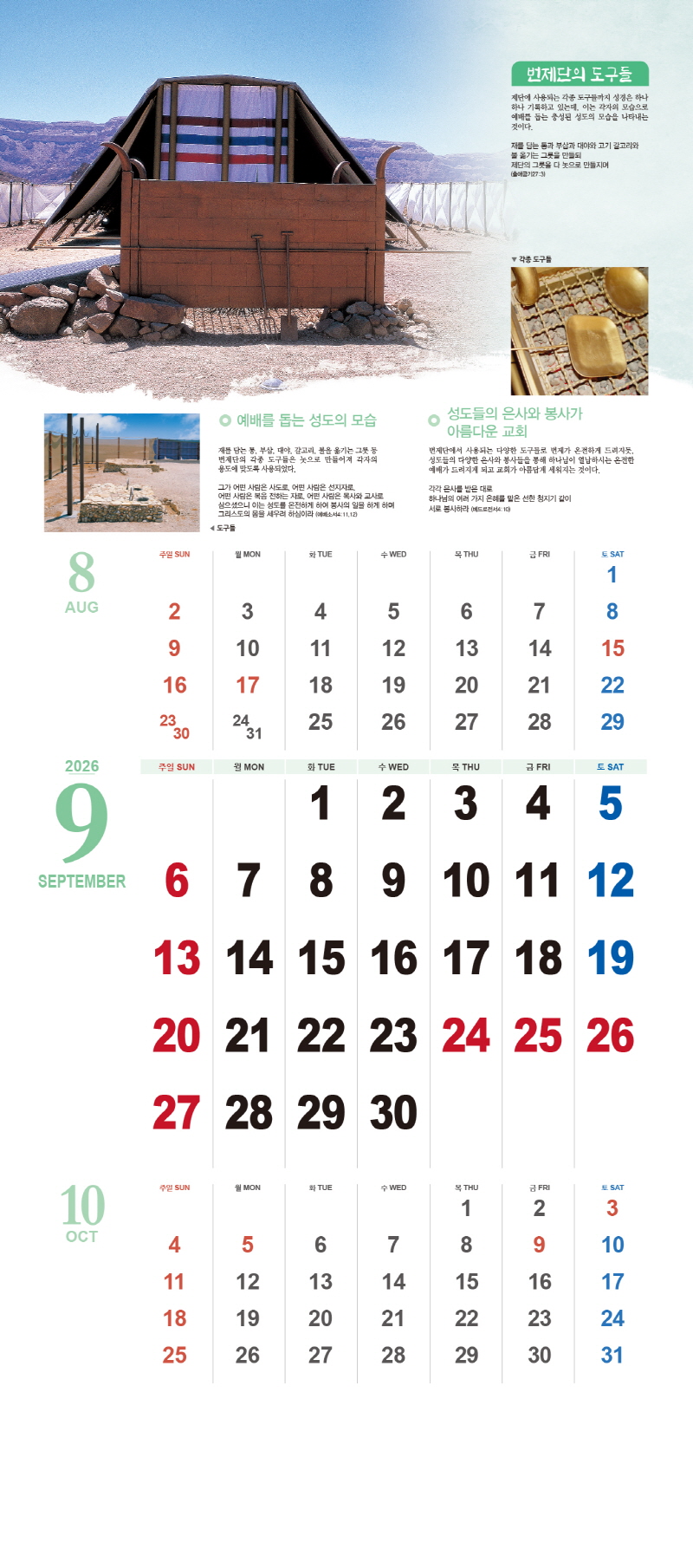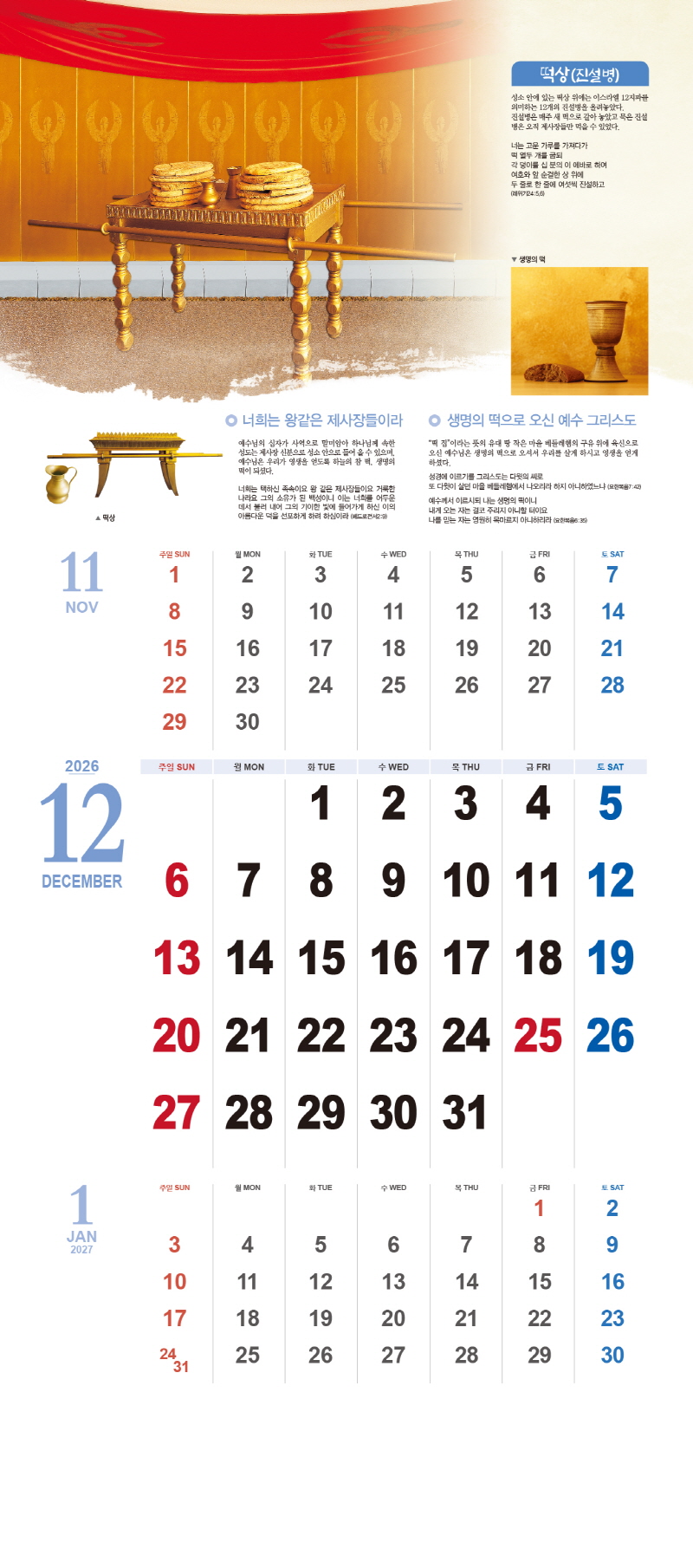 ◈본 캘린더에는 음력, 절후, 교회력이 표기되어 있습니다.