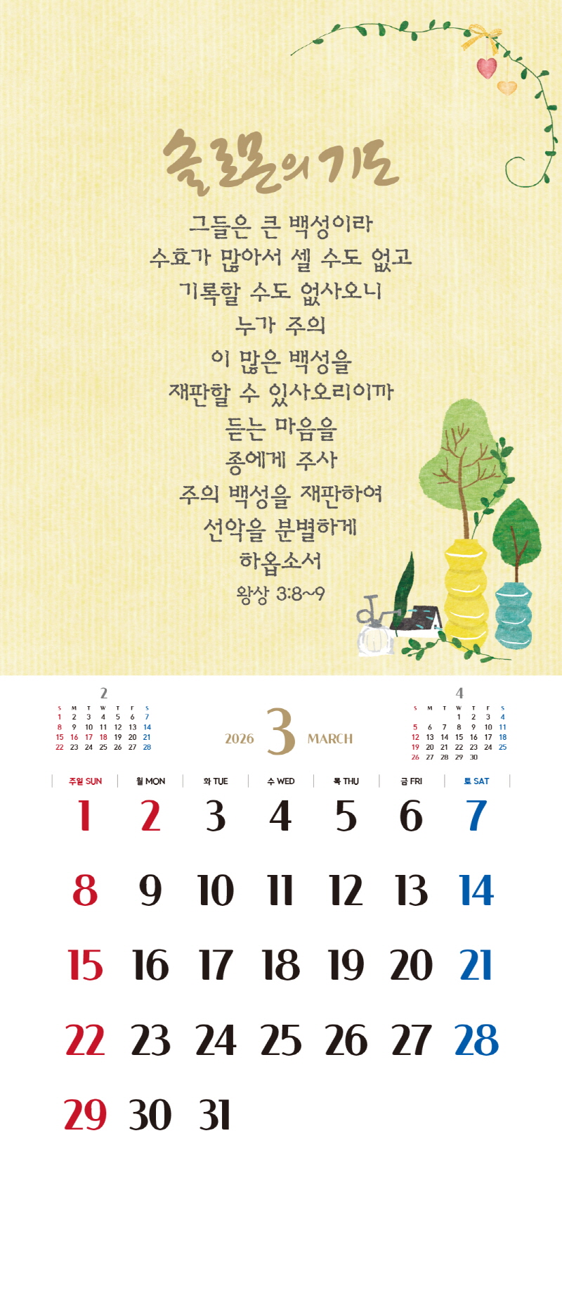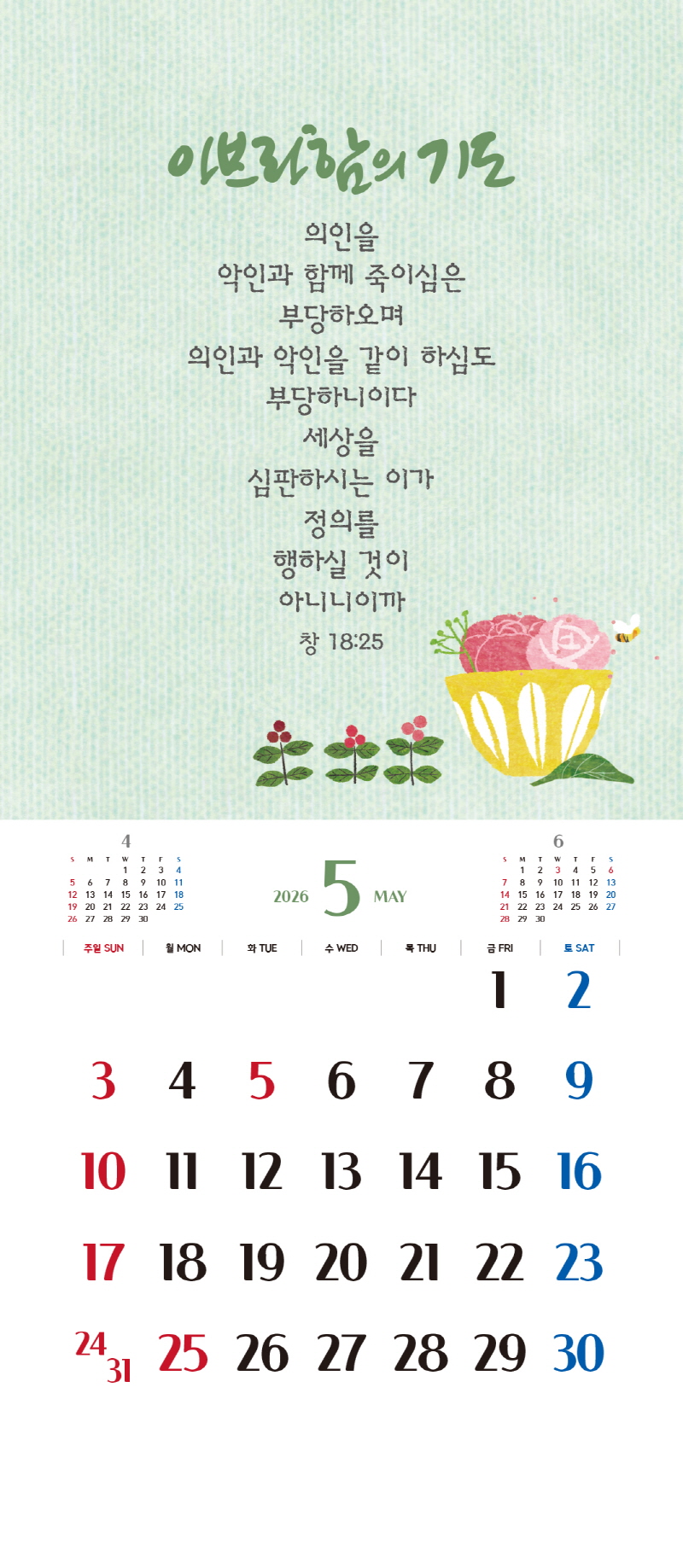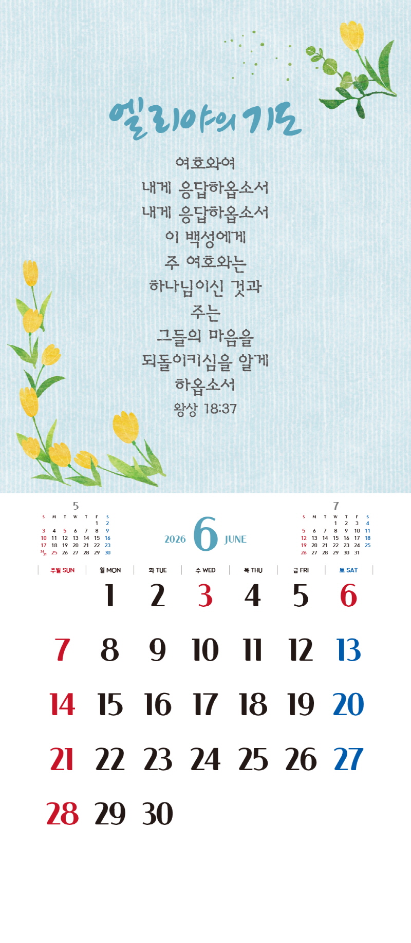 본 캘린더에는 음력, 절후, 교회력이 표기되어 있습니다.