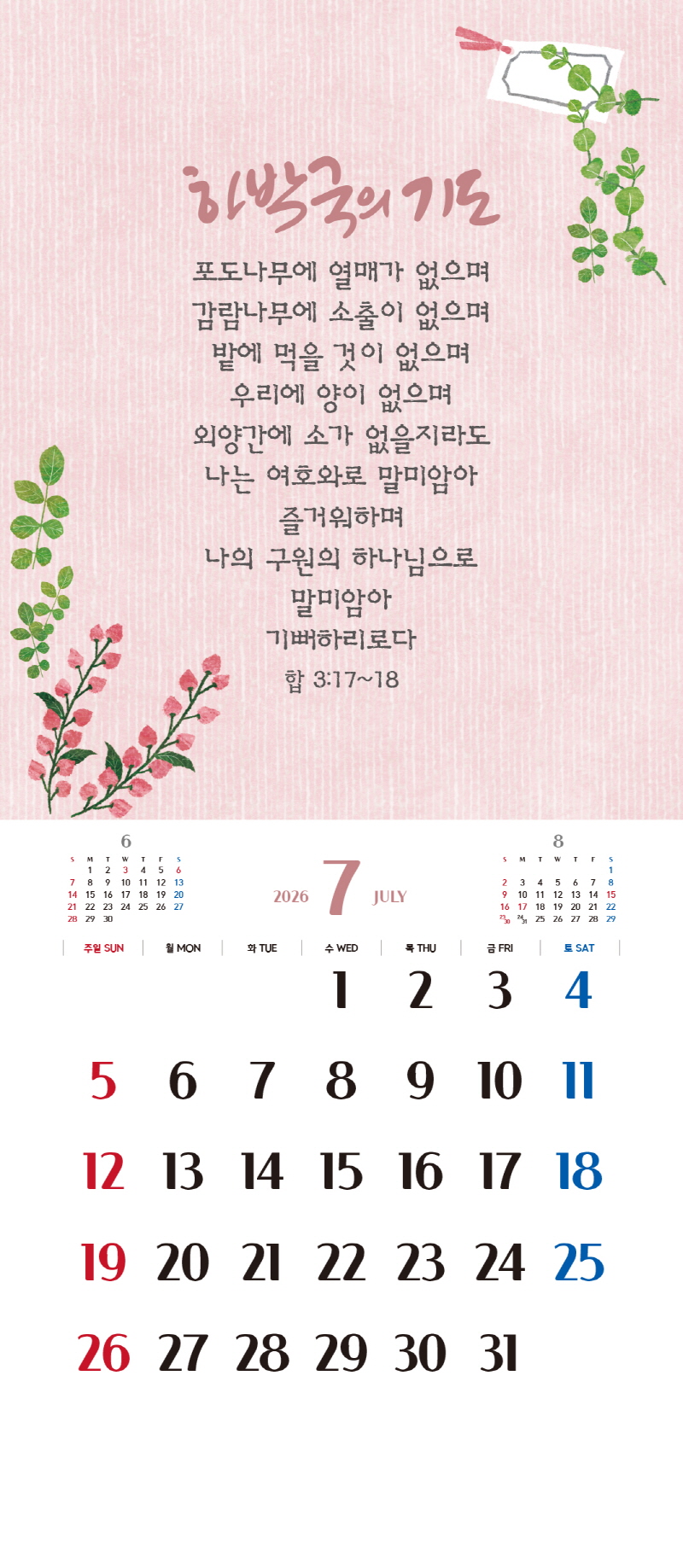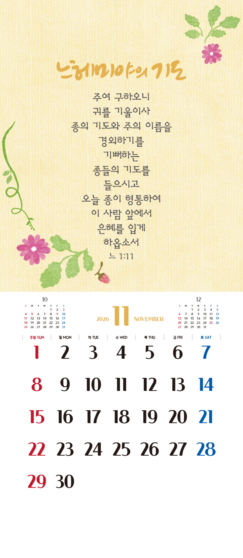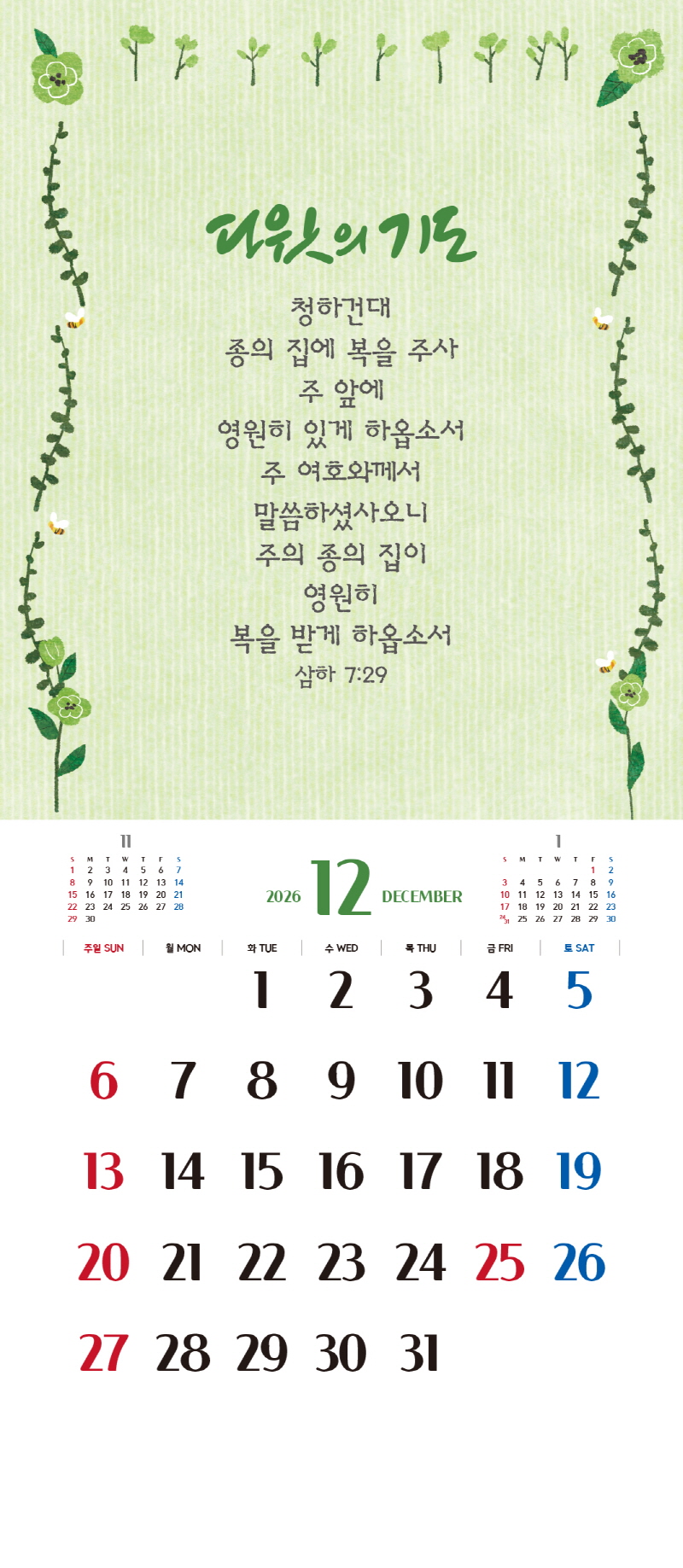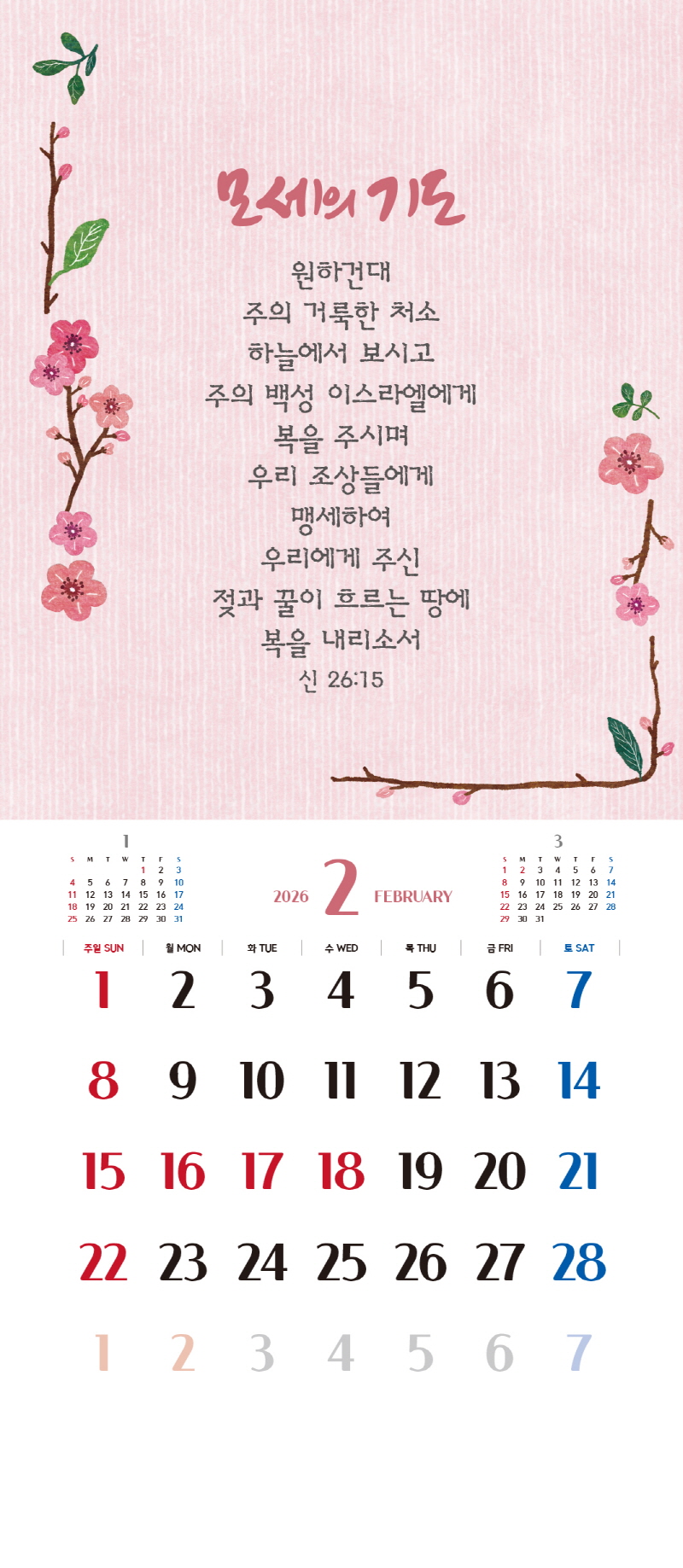 본 캘린더에는 음력, 절후, 교회력이 표기되어 있습니다.