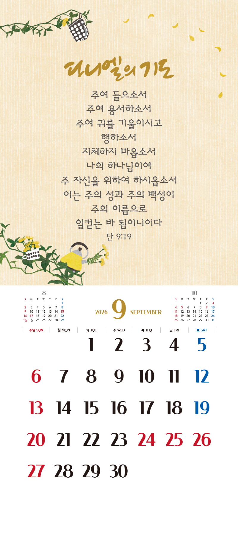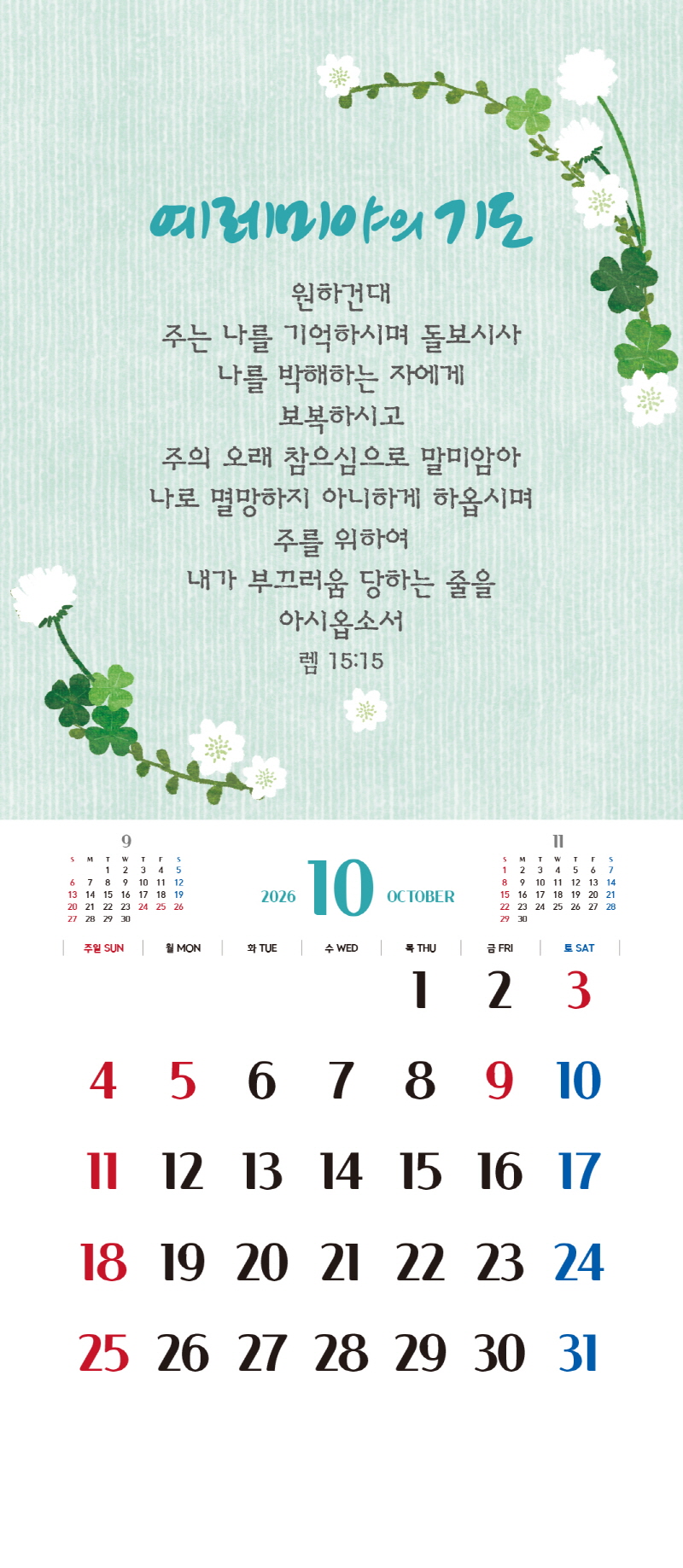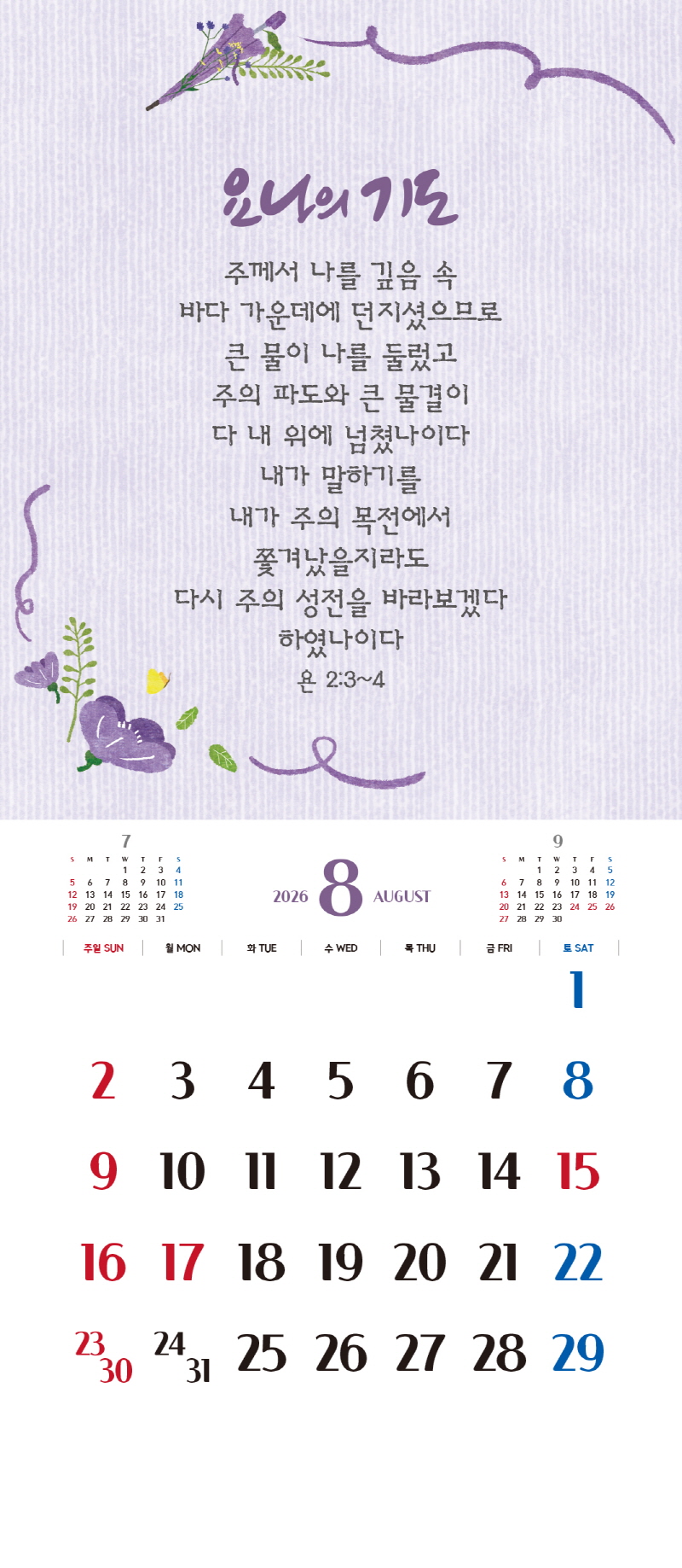 ◈본 캘린더에는 음력, 절후, 교회력이 표기되어 있습니다.