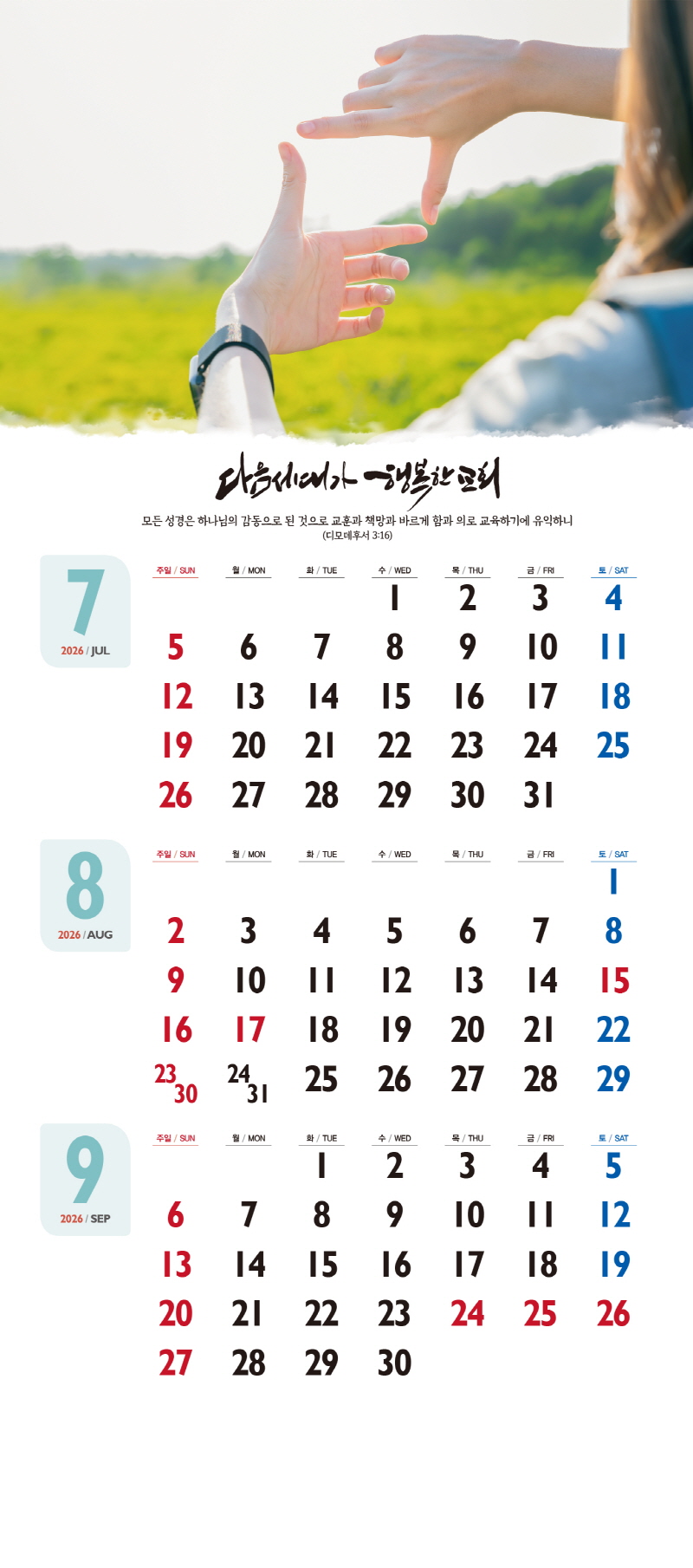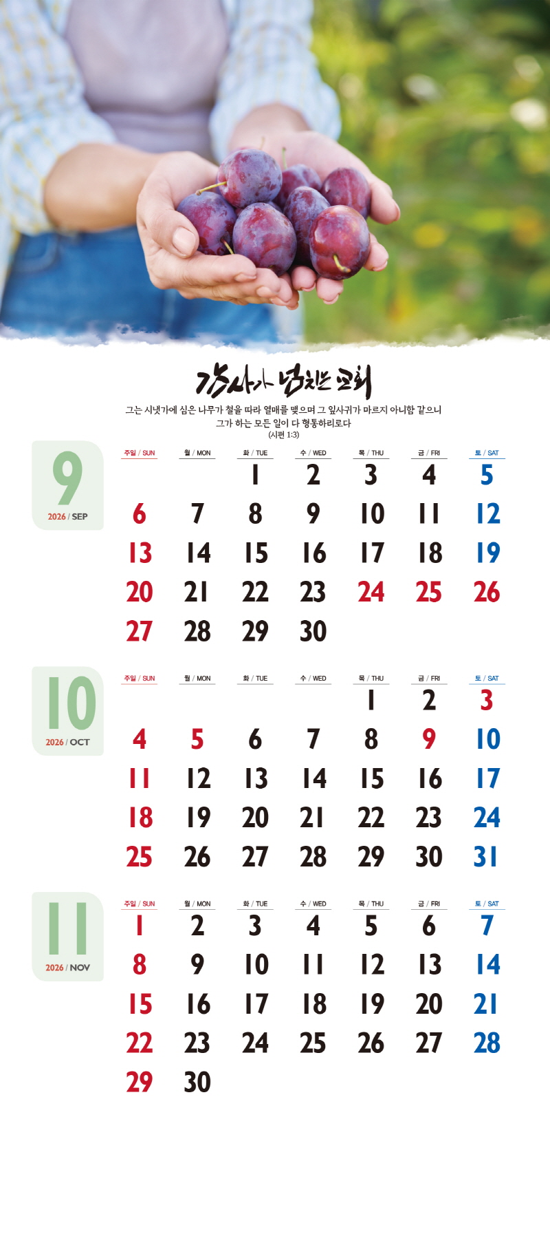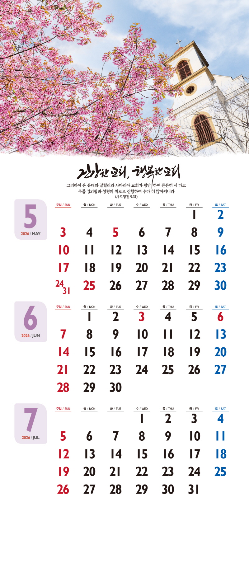 ◈본 캘린더에는 음력, 절후, 교회력이 표기되어 있습니다.