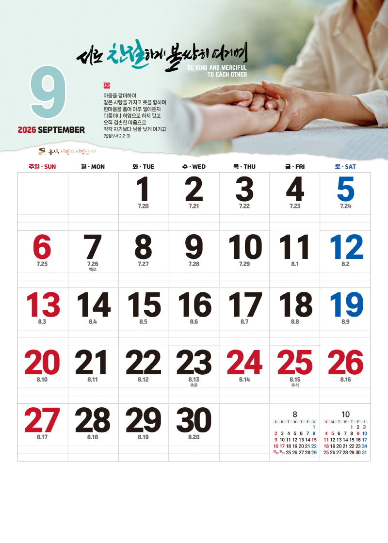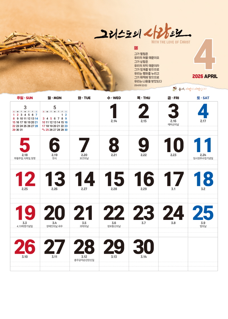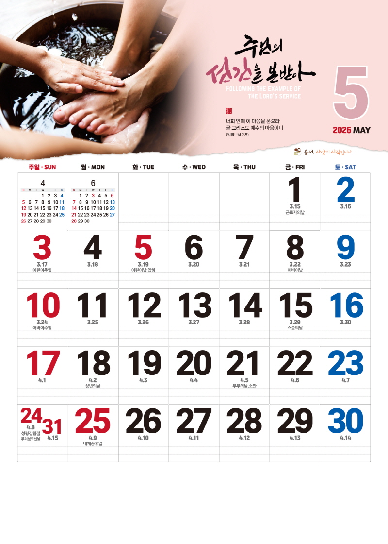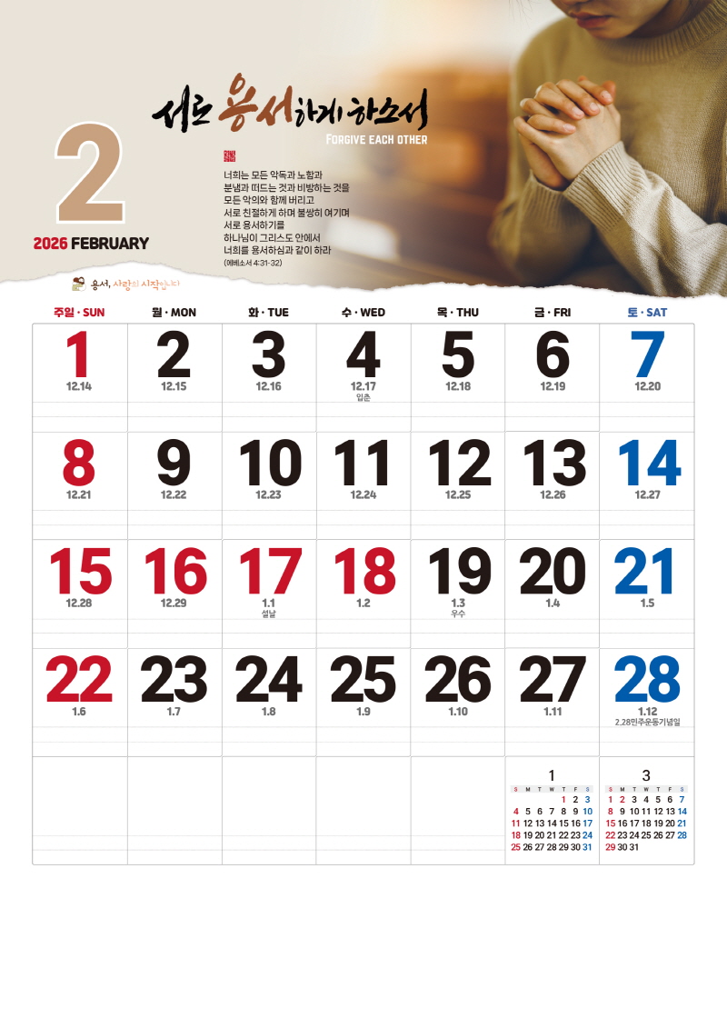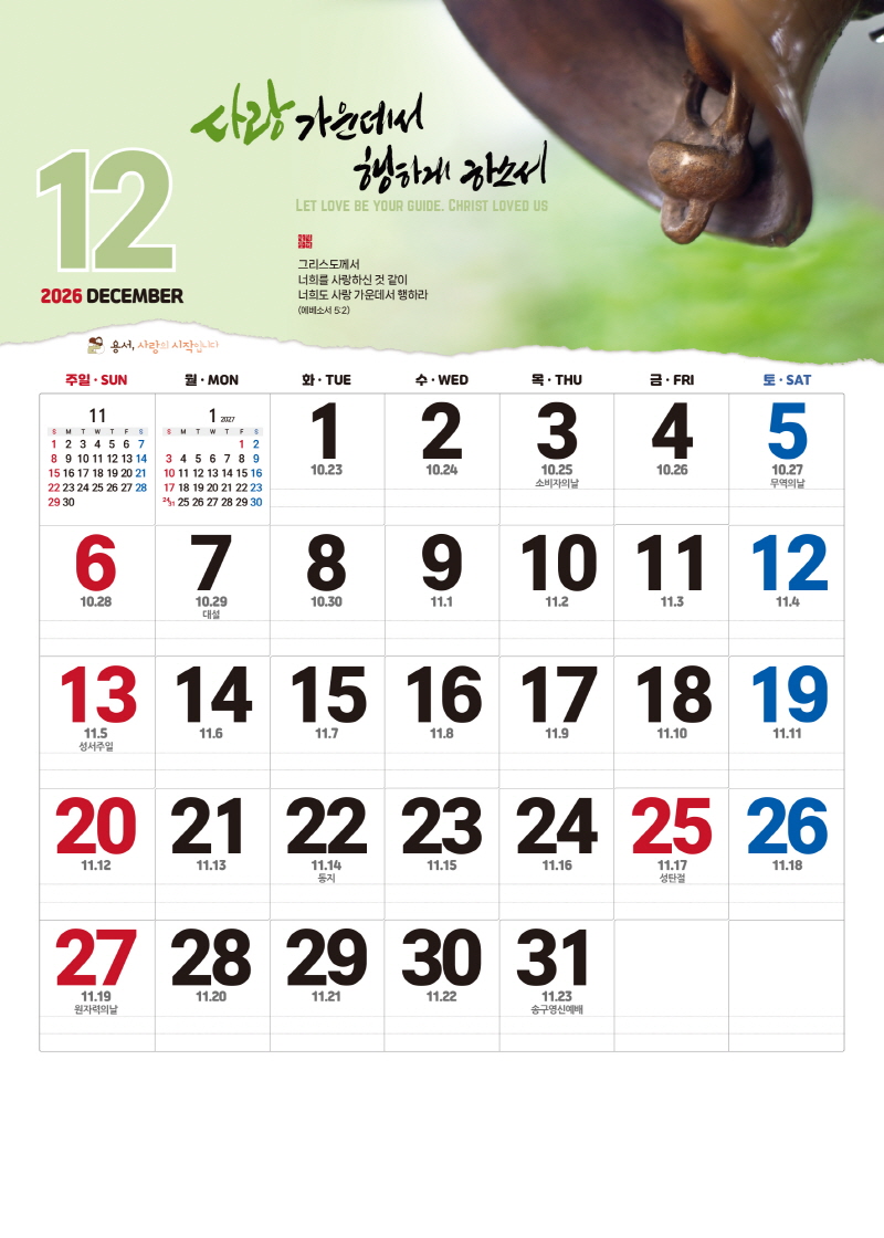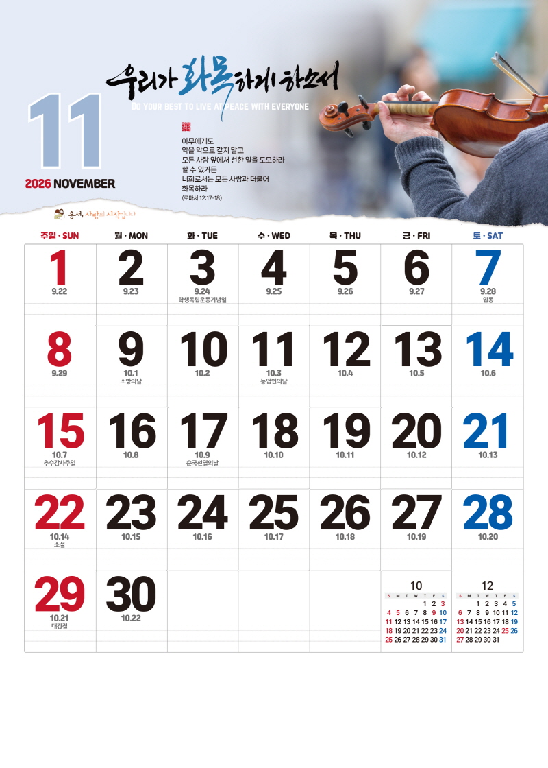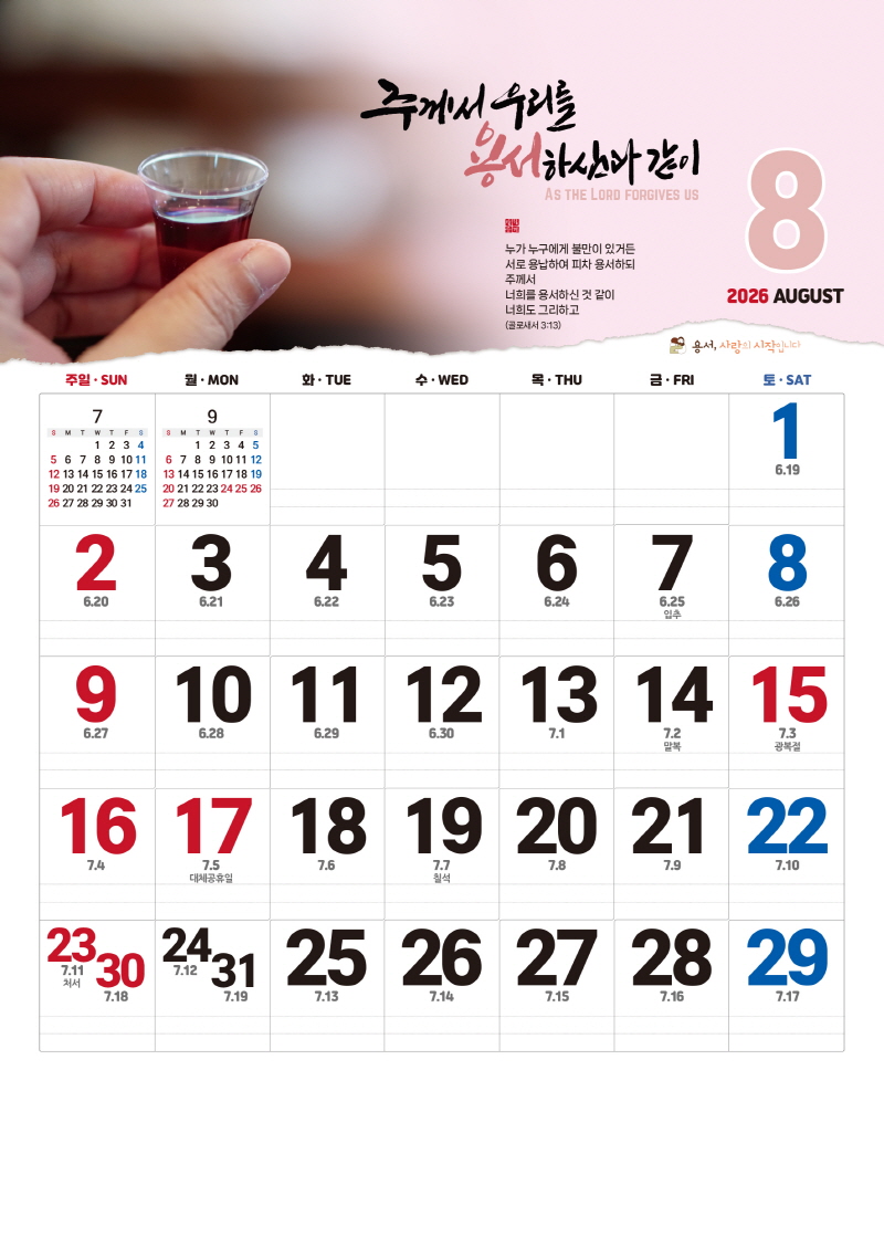◈본 캘린더에는 음력, 절후, 교회력이 표기되어 있습니다.