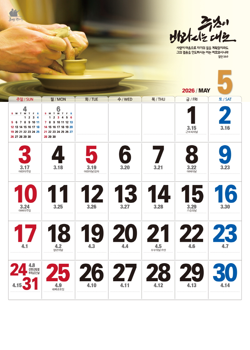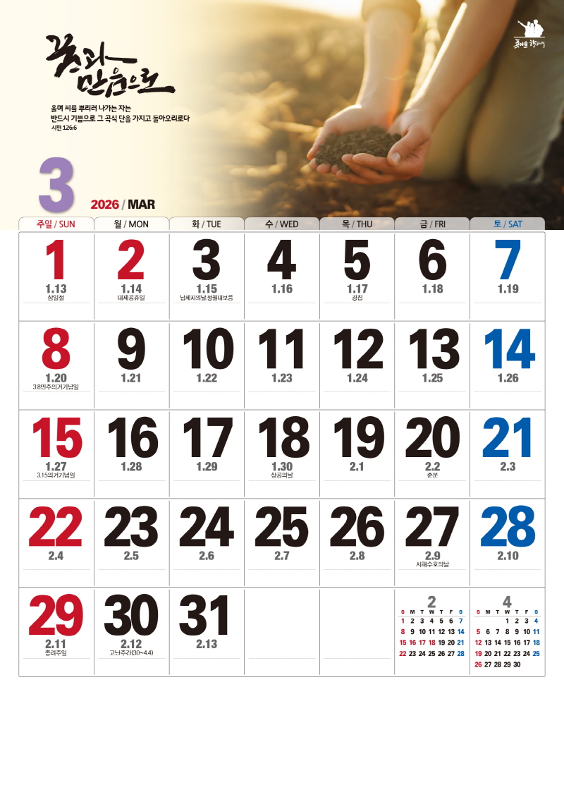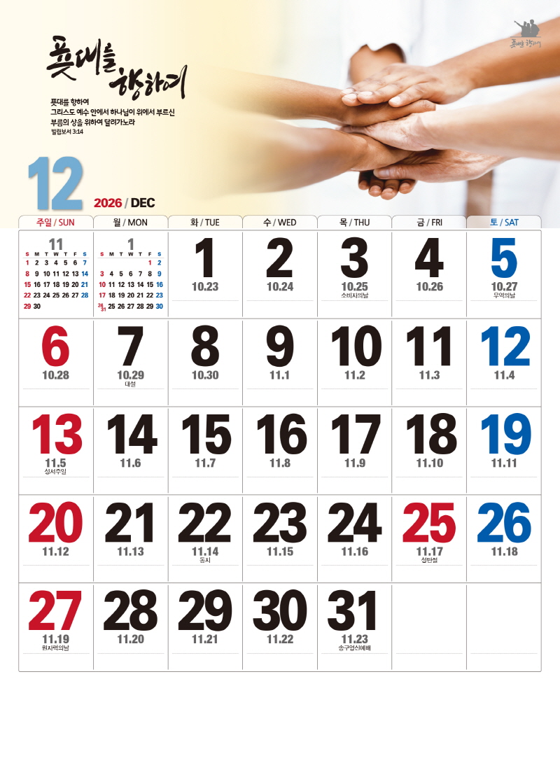 ◈본 캘린더에는 음력, 절후, 교회력이 표기되어 있습니다.