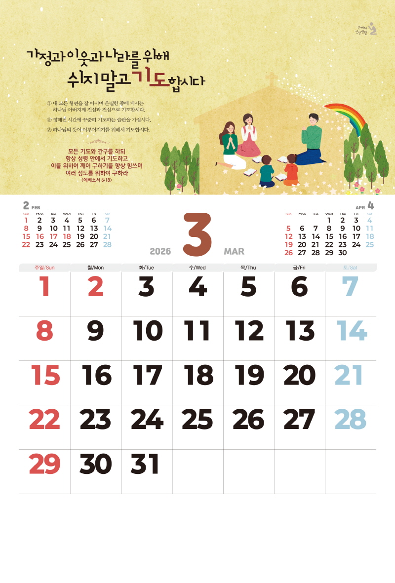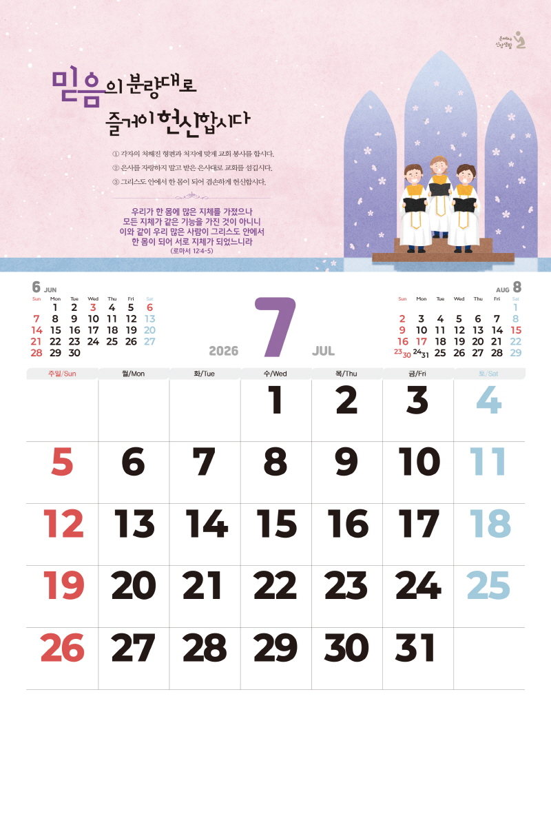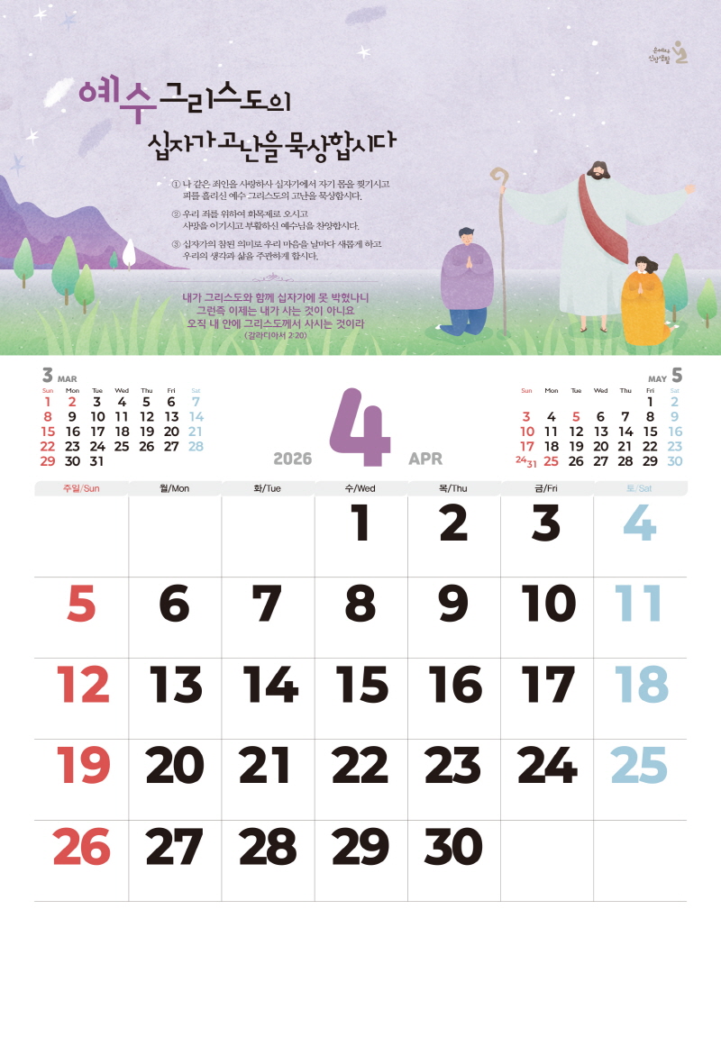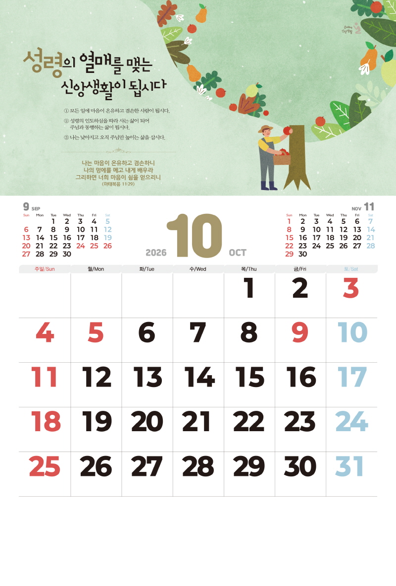 ◈본 캘린더에는 음력, 절후, 교회력이 표기되어 있습니다.