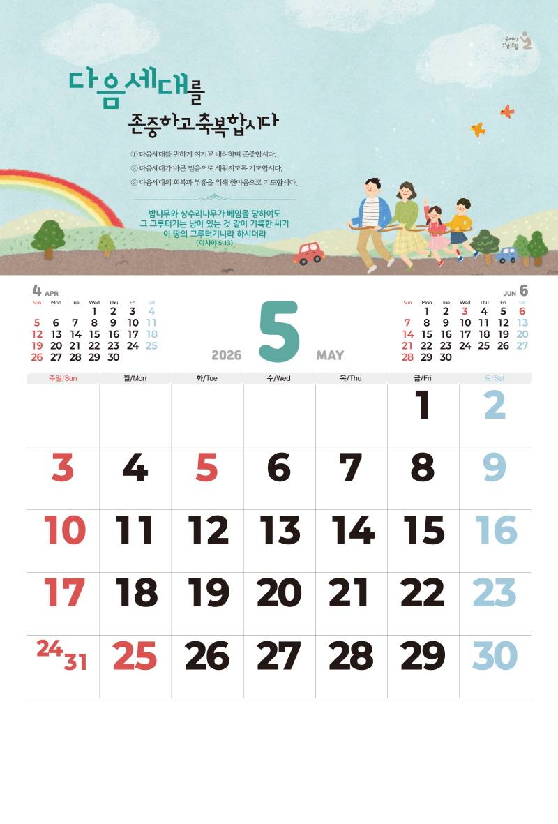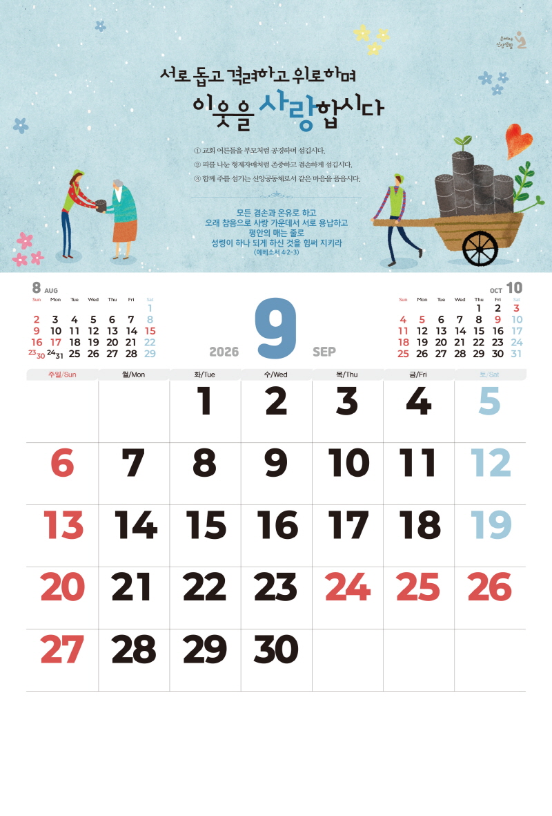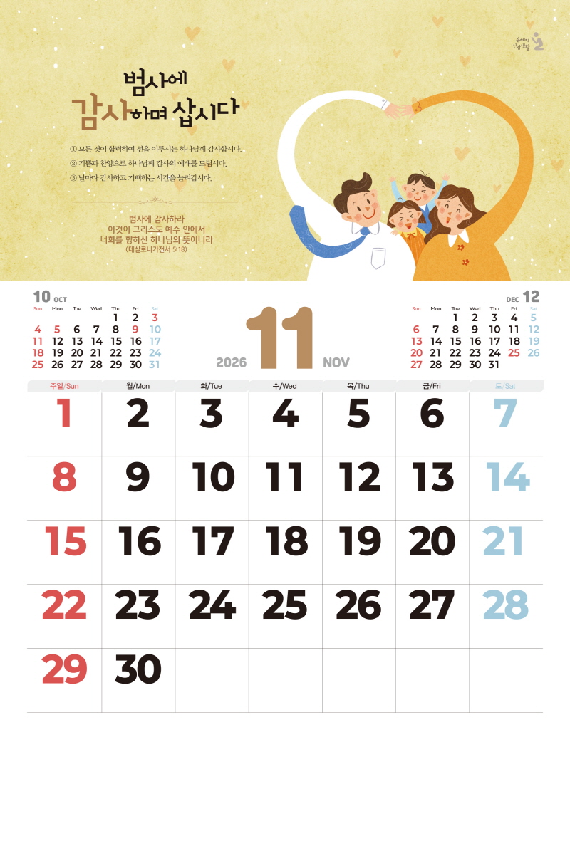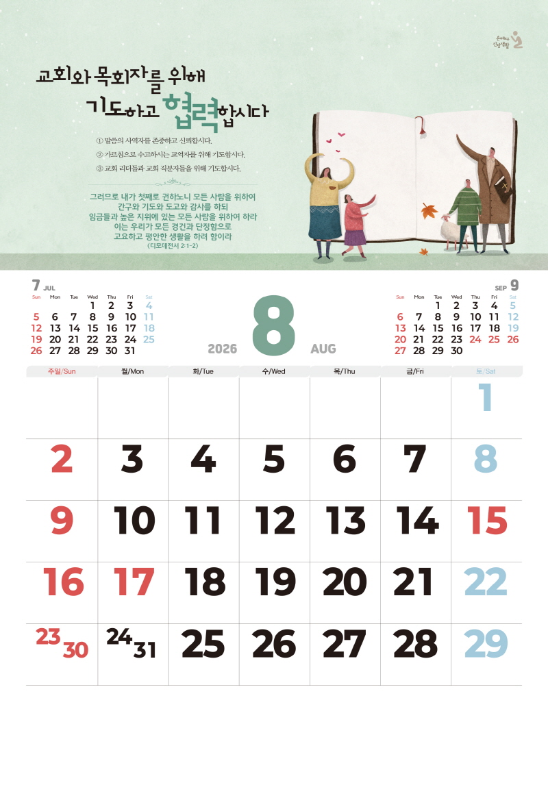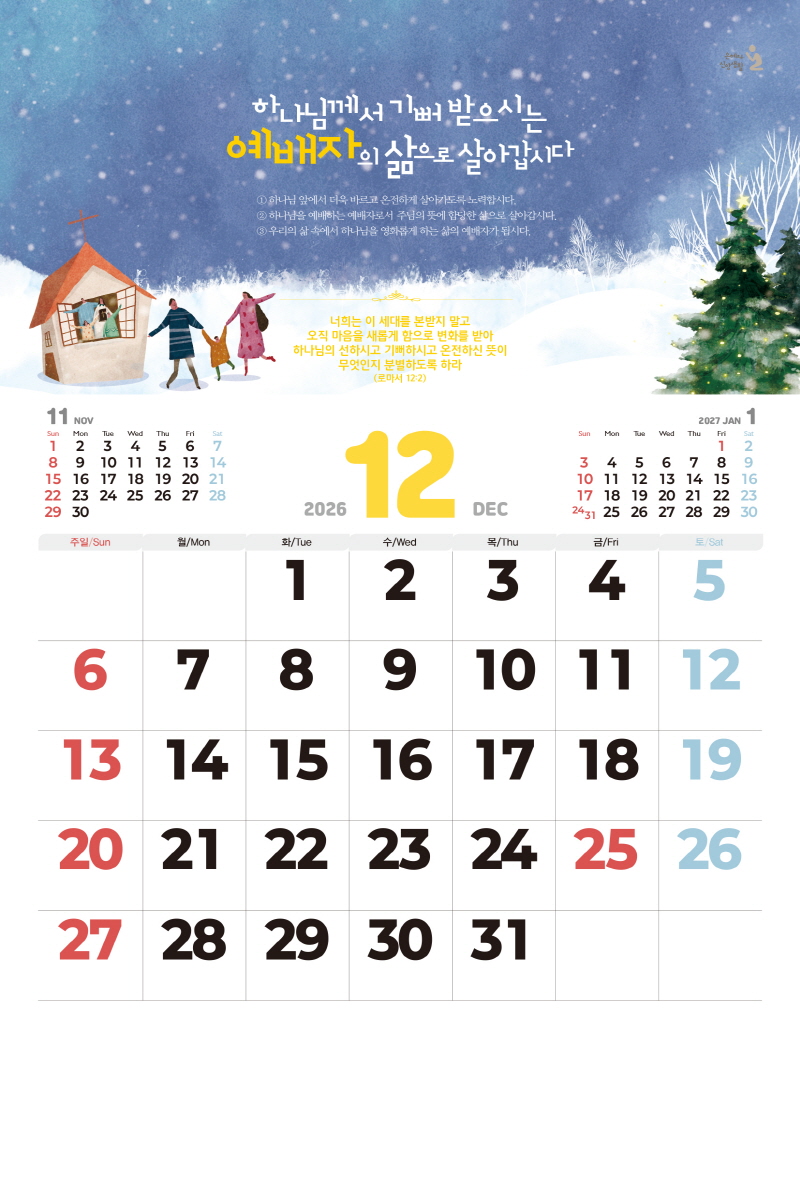 ◈본 캘린더에는 음력, 절후, 교회력이 표기되어 있습니다.