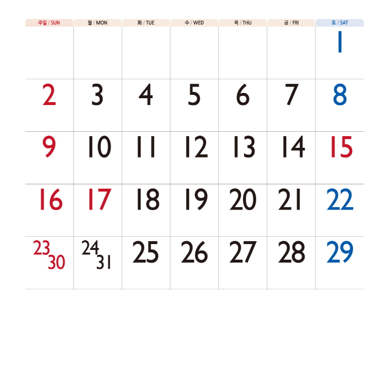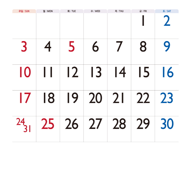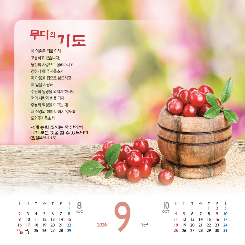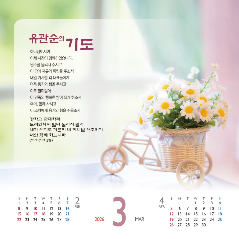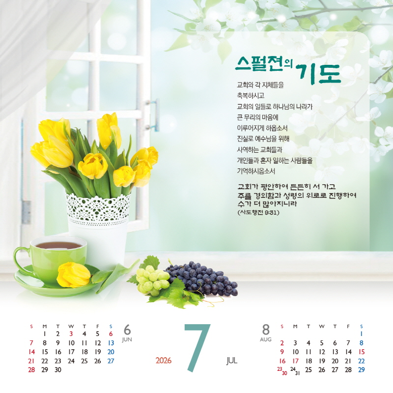 본 캘린더에는 음력, 절후, 교회력이 표기되어 있습니다.