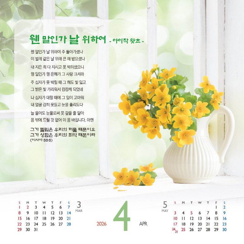 카렌다를 받으신 후 청구서에 기록된 계좌로 교회명이나 목사님 성함을 꼭 기재하시어 송금을 해주십시오.